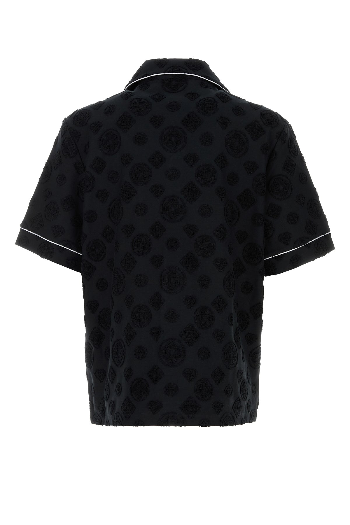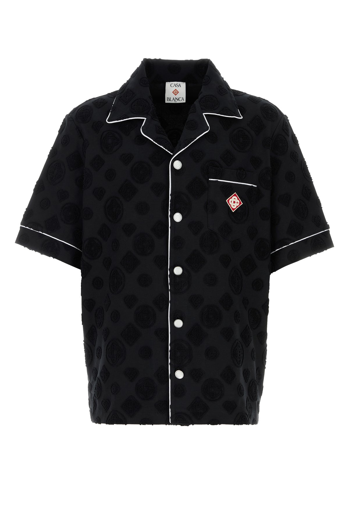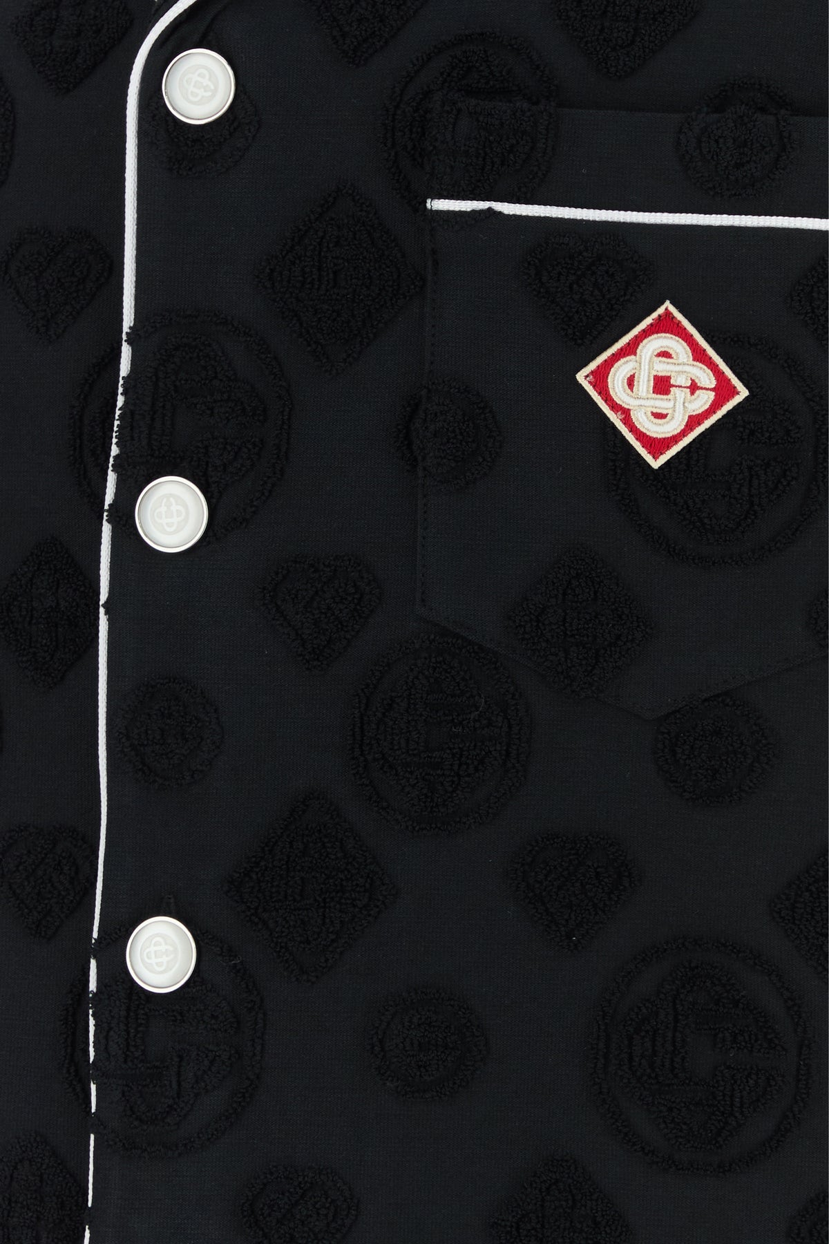 Short-sleeve shirt realized in cotton blend characterized by tonal Towelling motif on the entire surface enriched by logoe label on the chest.