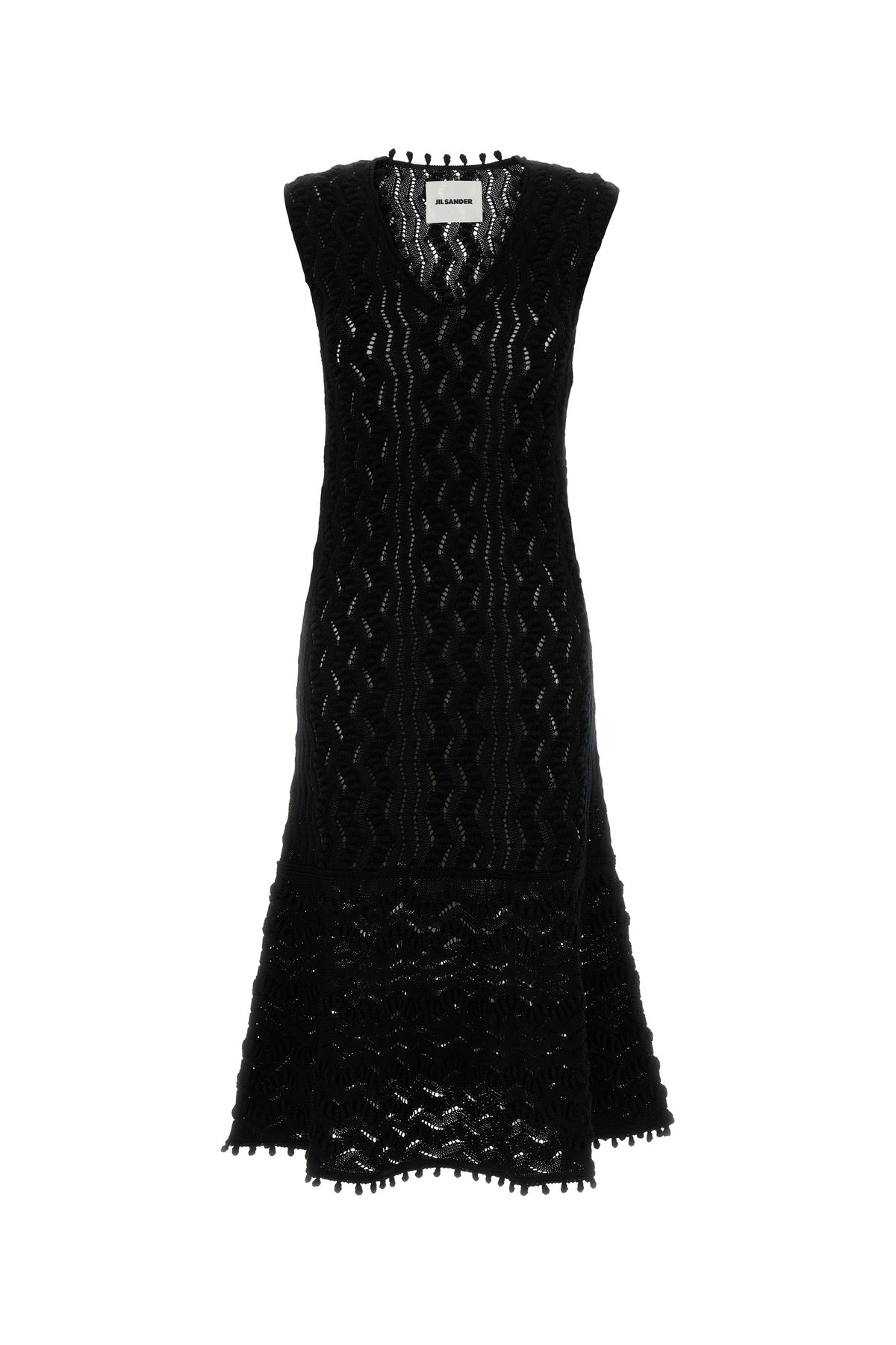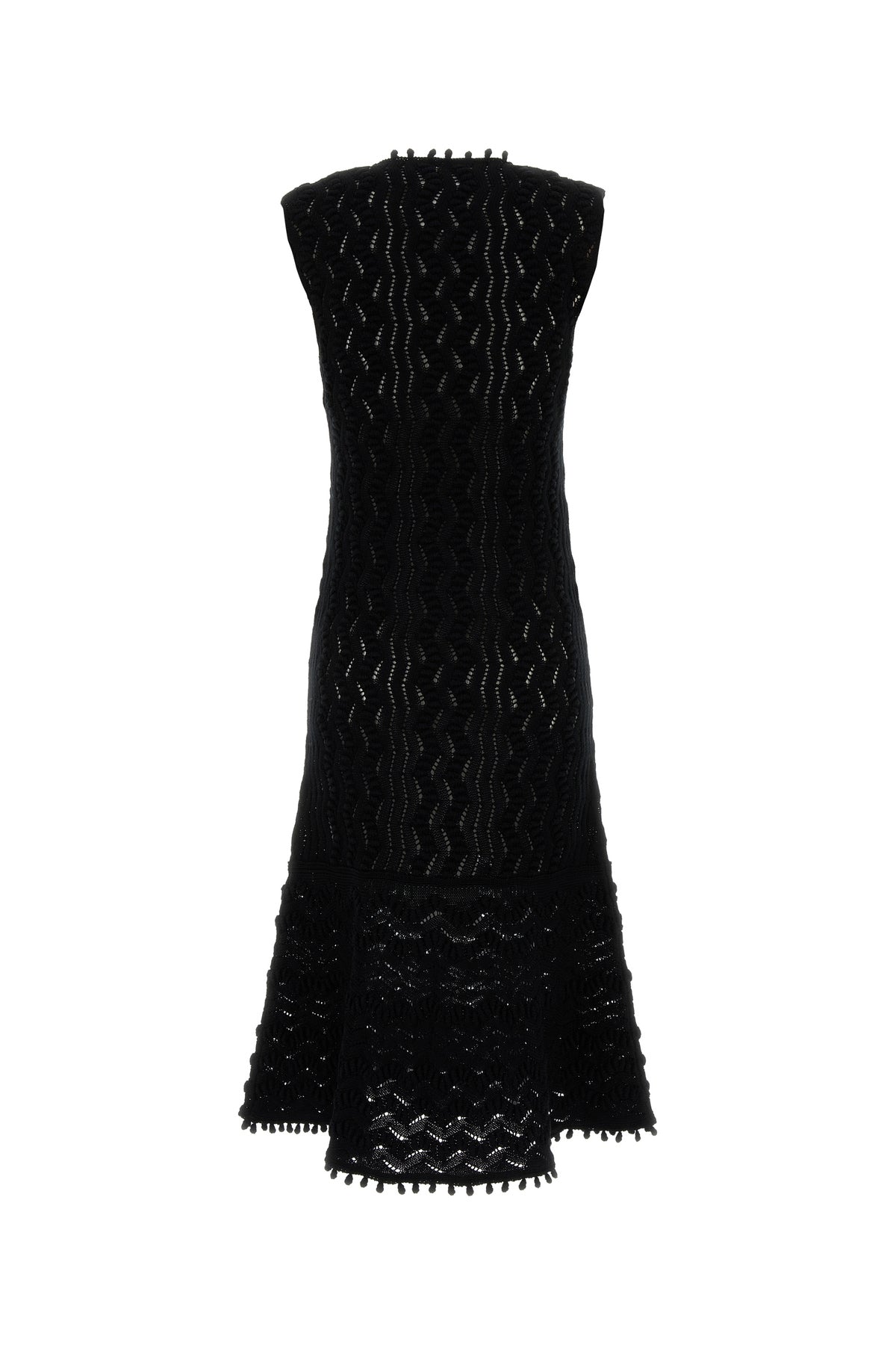 Midi-length dress realized in perforated pure cotton.