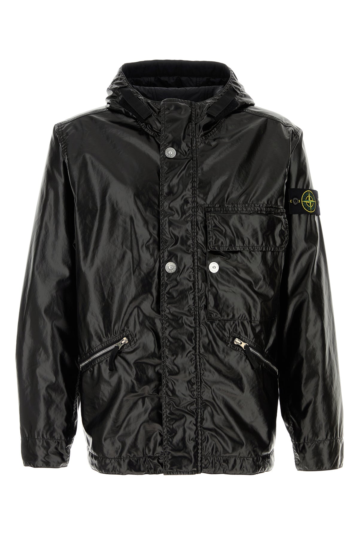Jacket realized in pure cotton enriched by detachable logoed label on the sleeve.