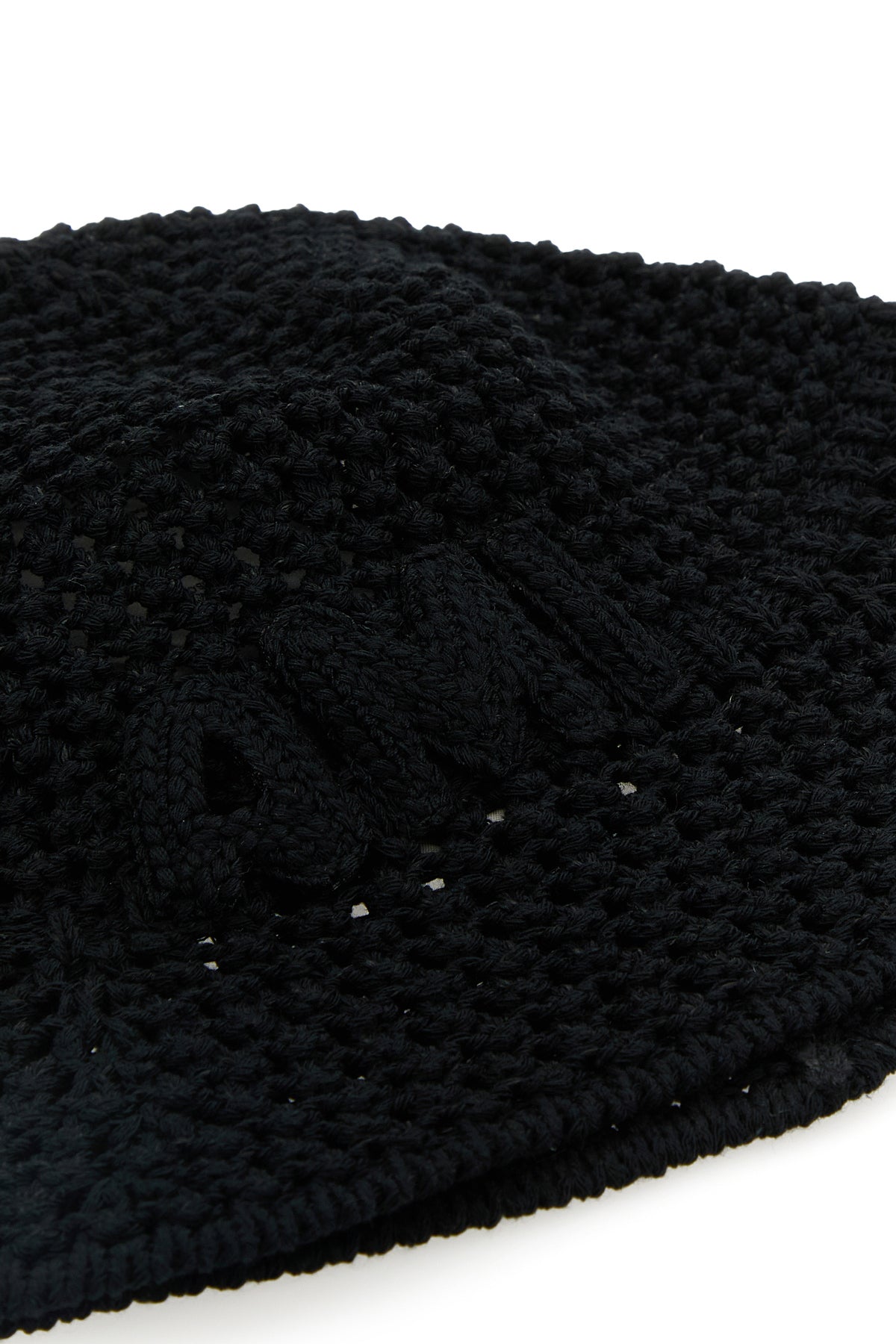 Bucket hat realized in crochet characterized by tonal embroidered logo at the front.