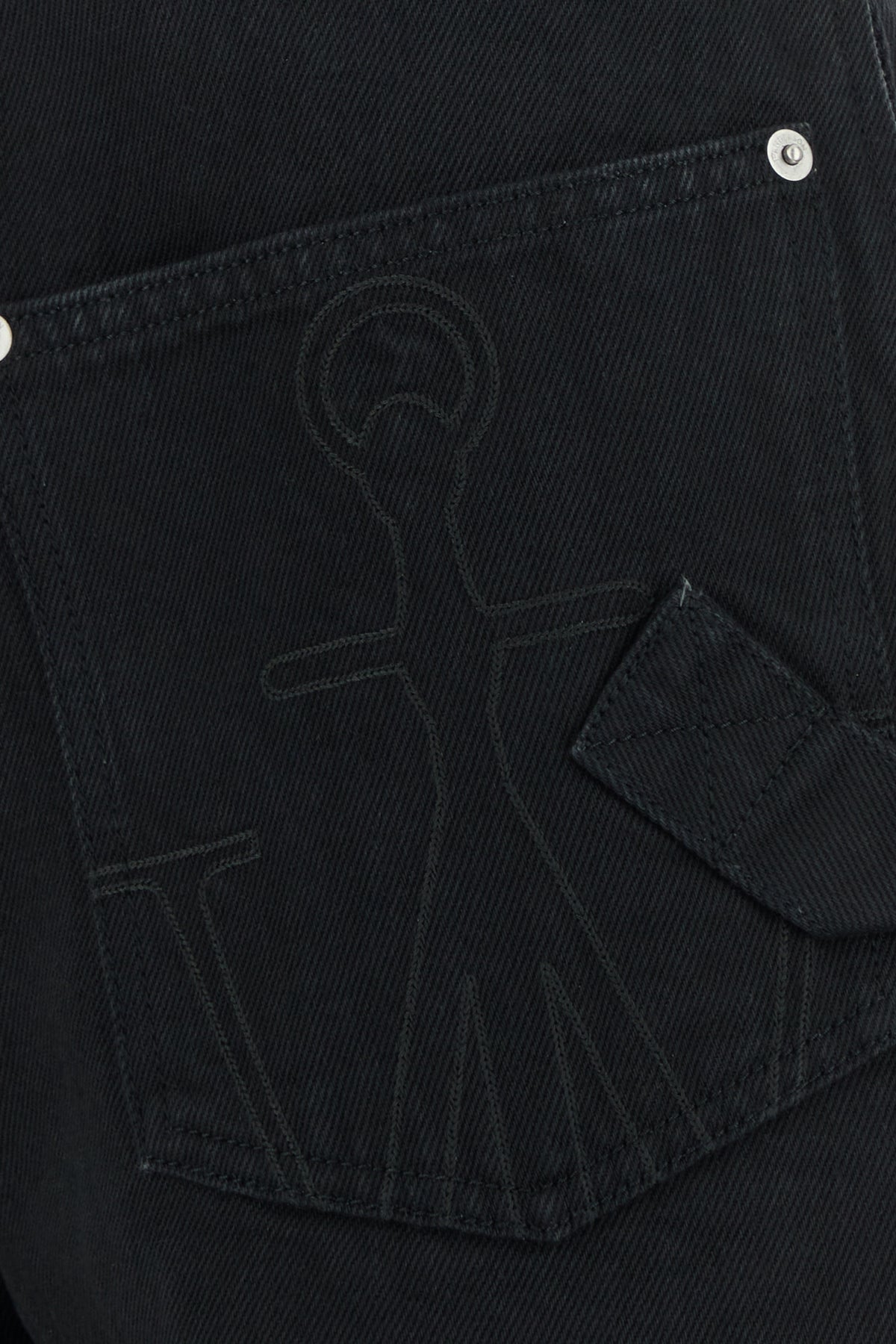 Wide-leg jeans realized in pure cotton denim characterized by tonal Anchor embroidery at the front.