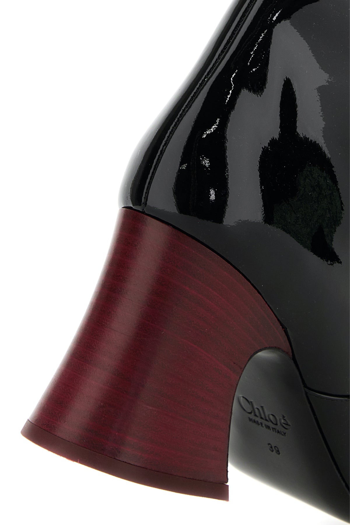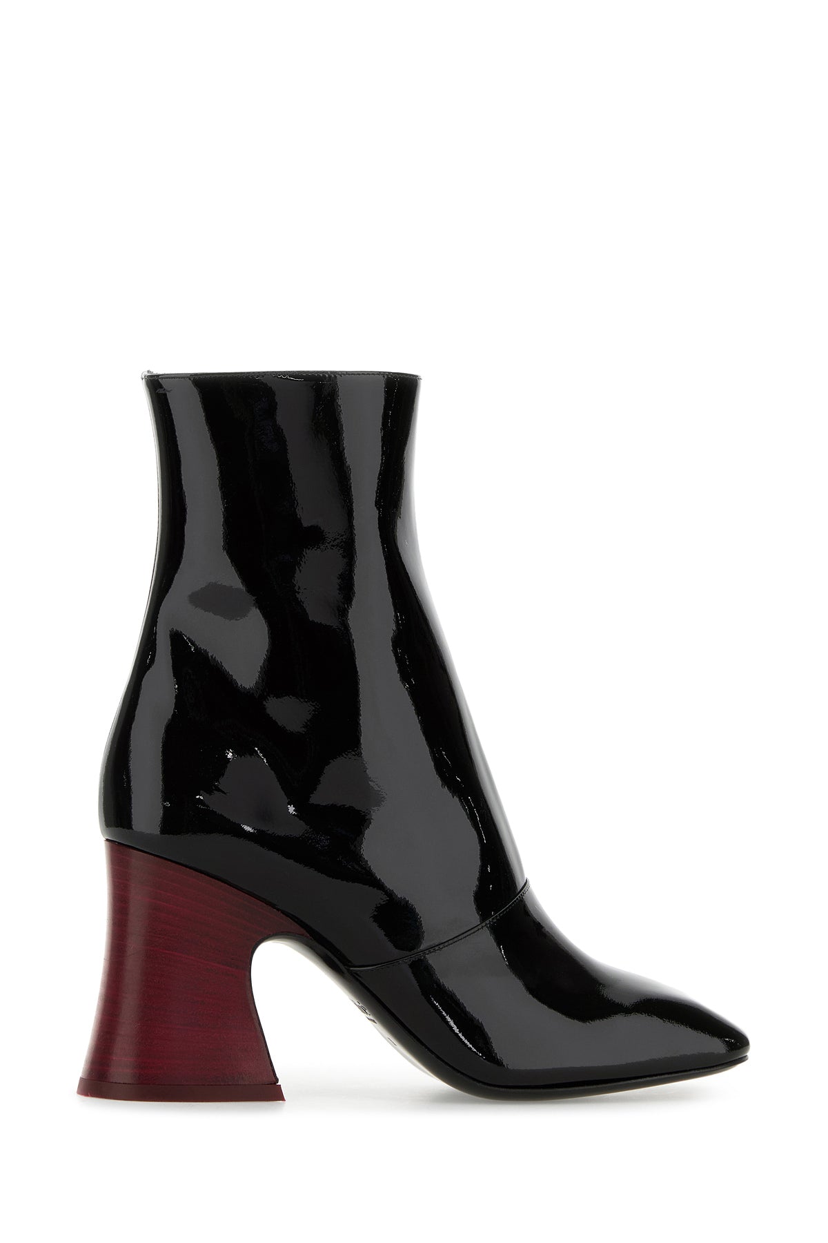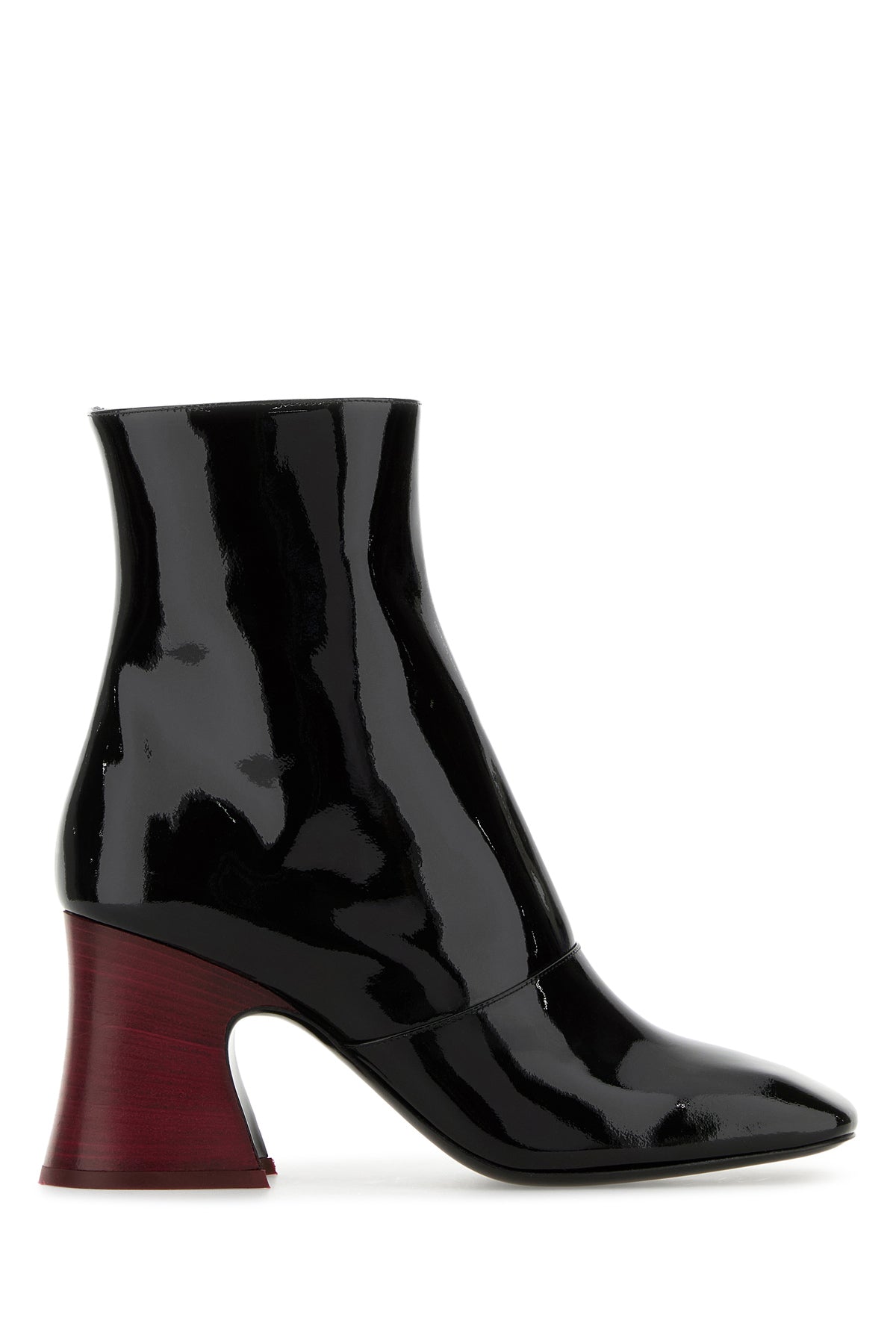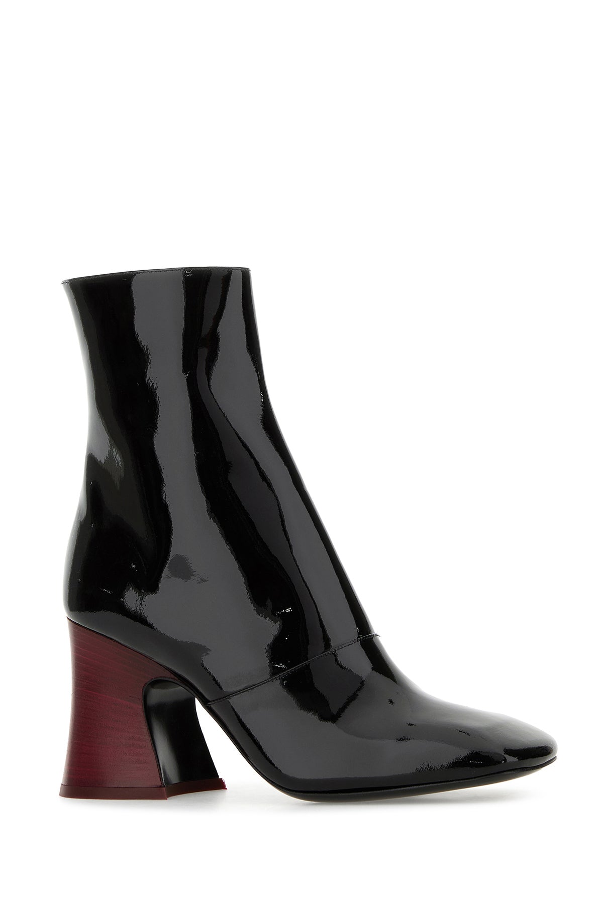 Ankle boots realized in patent leather characterized by peculiar heel.