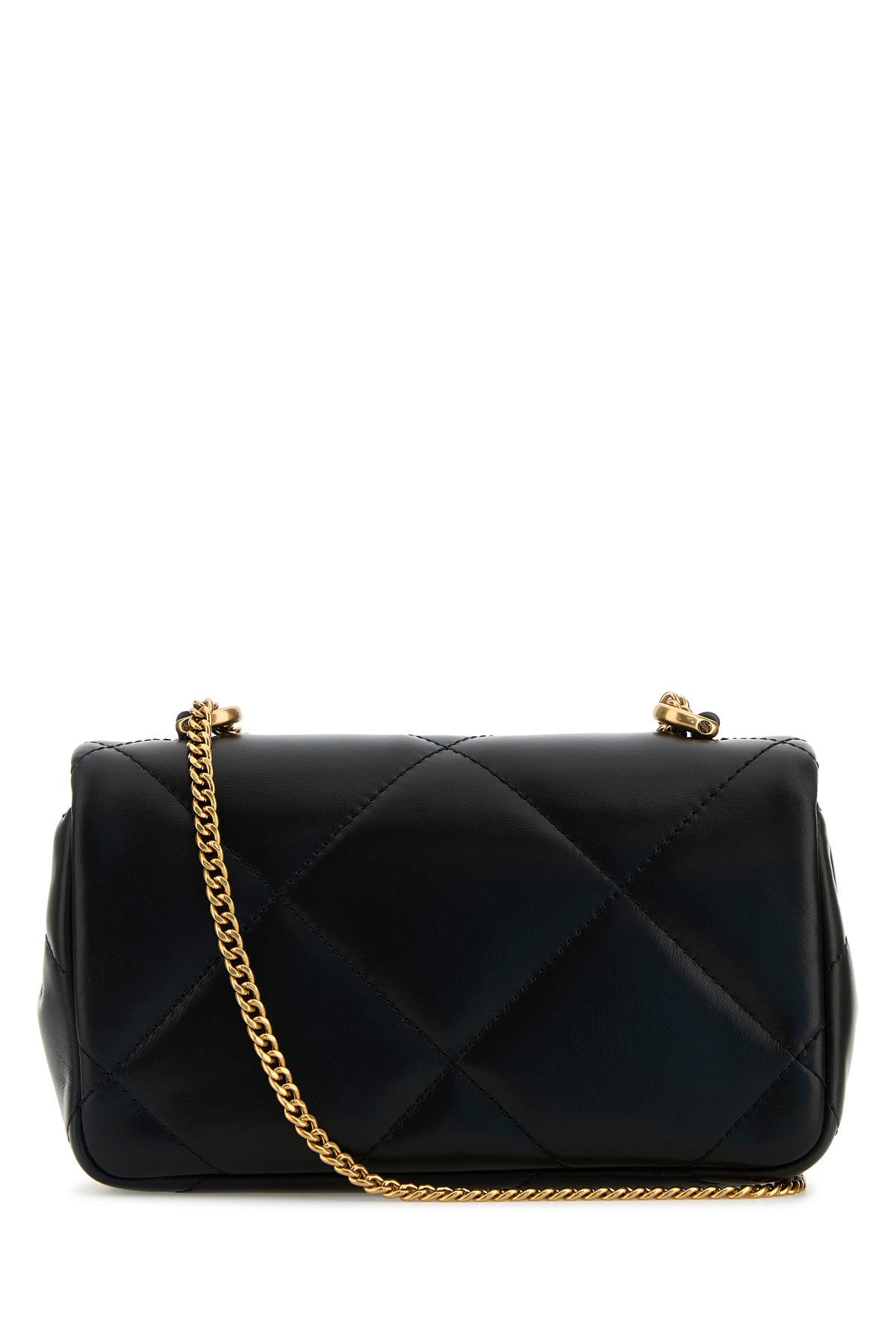Crossbody bag realized in quilted leather enriched by logoed metal detail at the front.