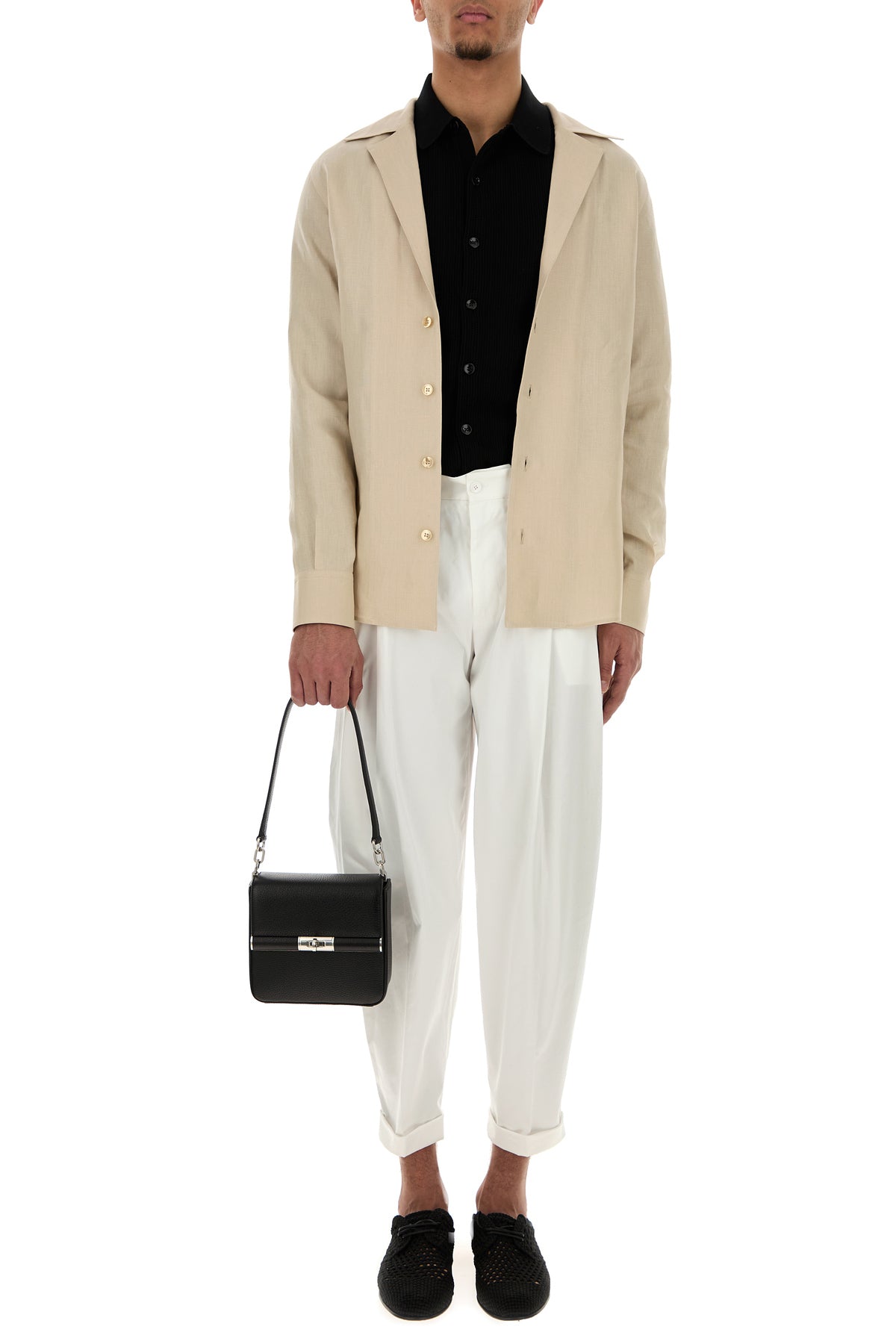 Shoulder bag realized in pebble deer leather characterized by laminated printed logo at the back.
