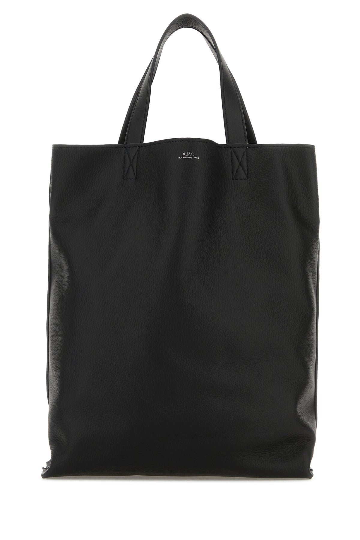 Shopping bag realized in pebble leather characterized by laminated printed logo at the front.
