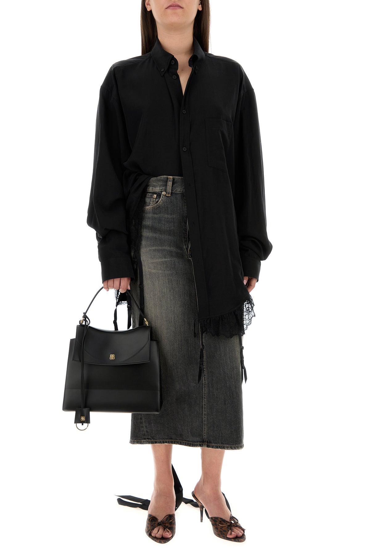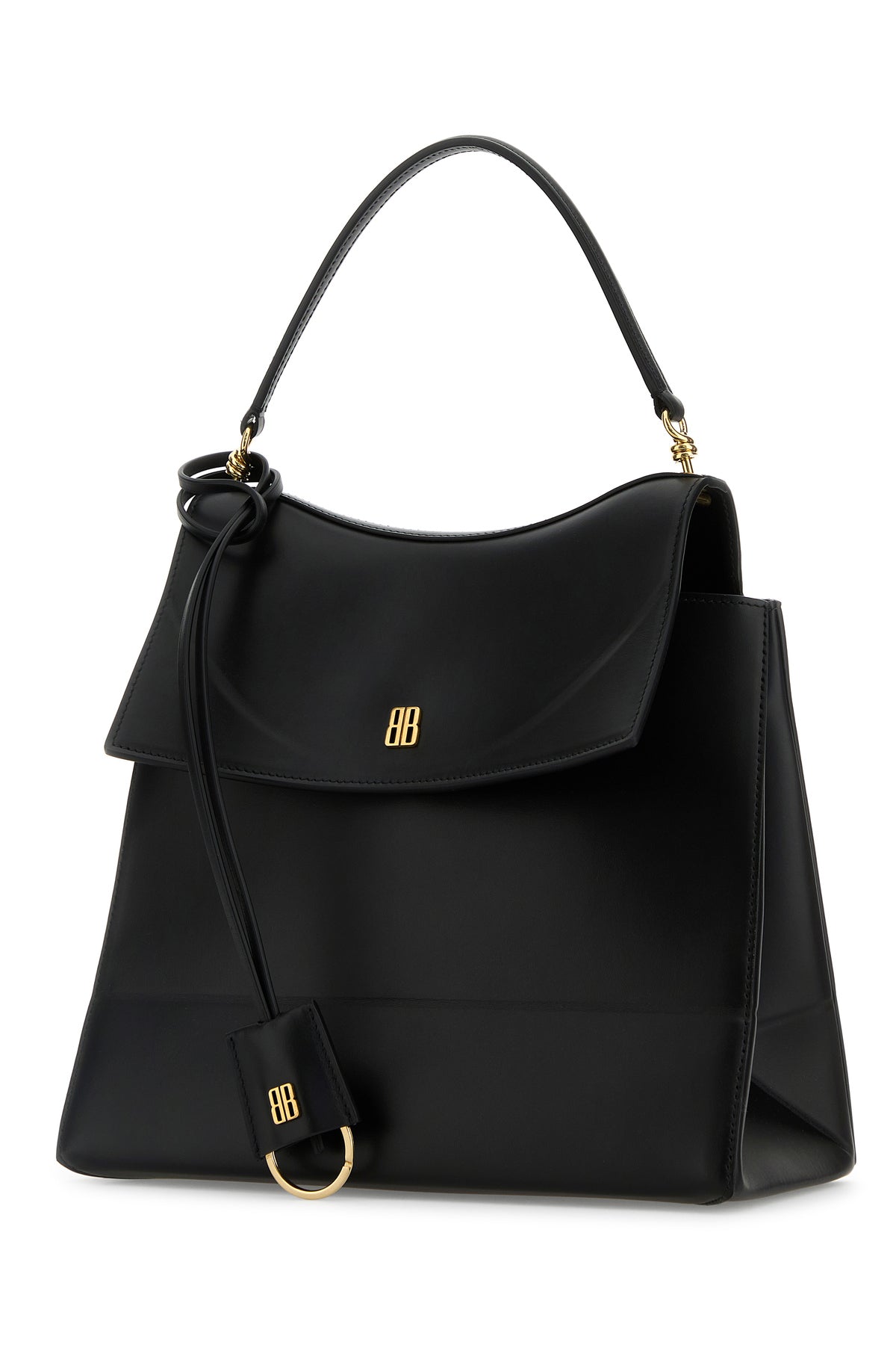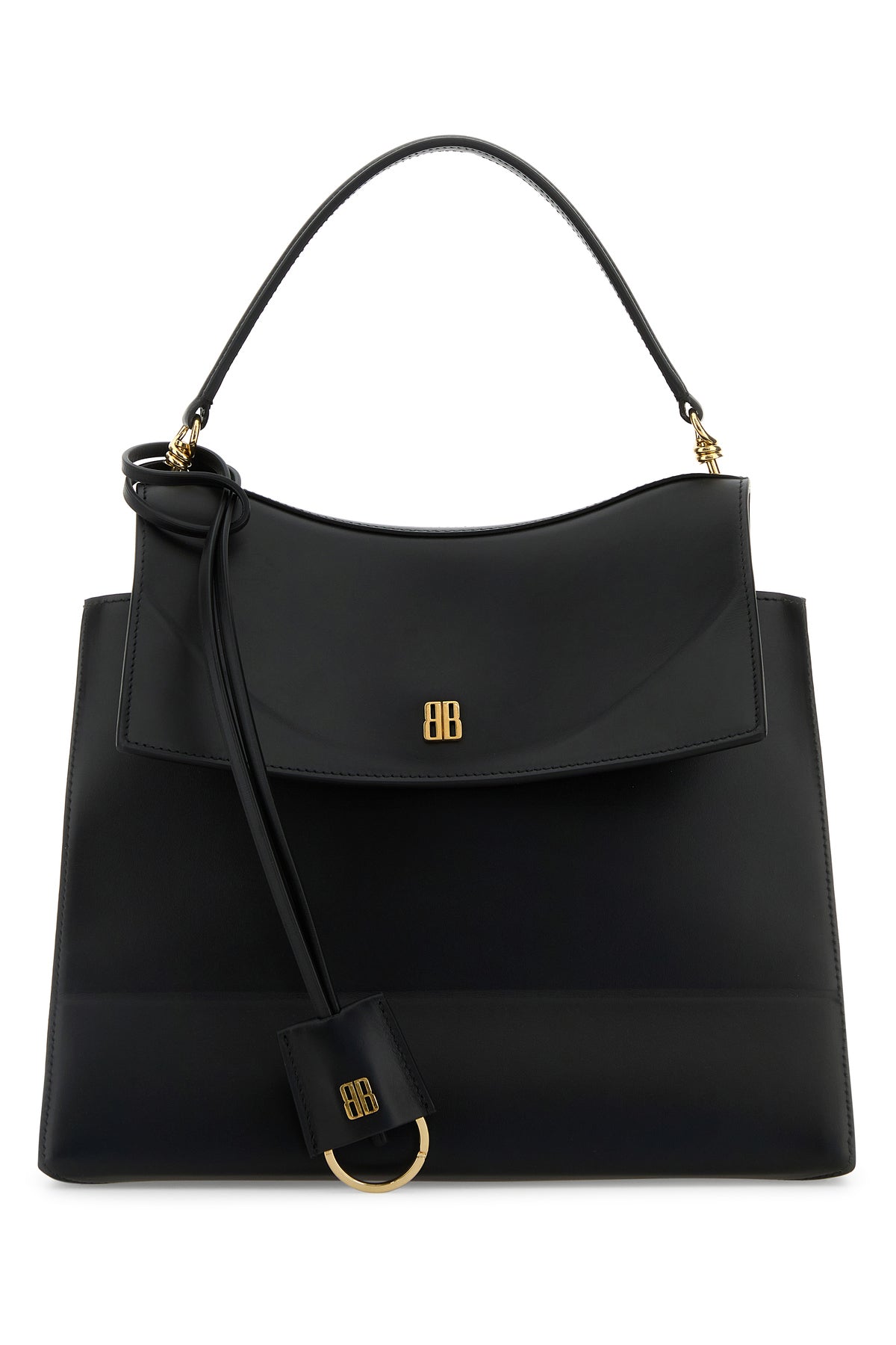 Handbag realized in smooth leather enriched by BB Nano metal detail at the front.