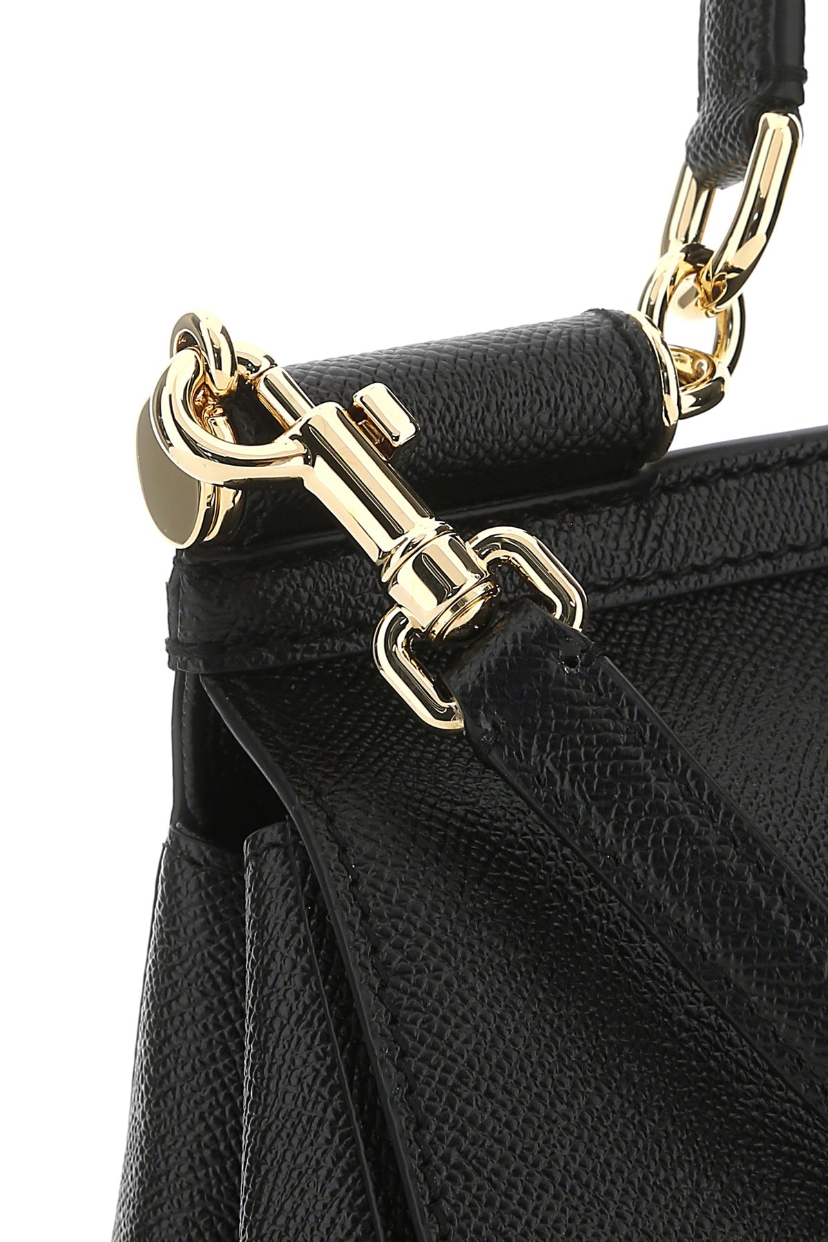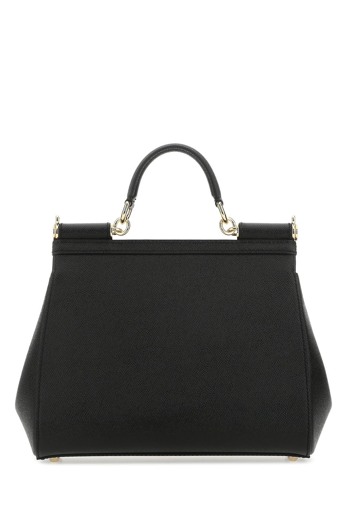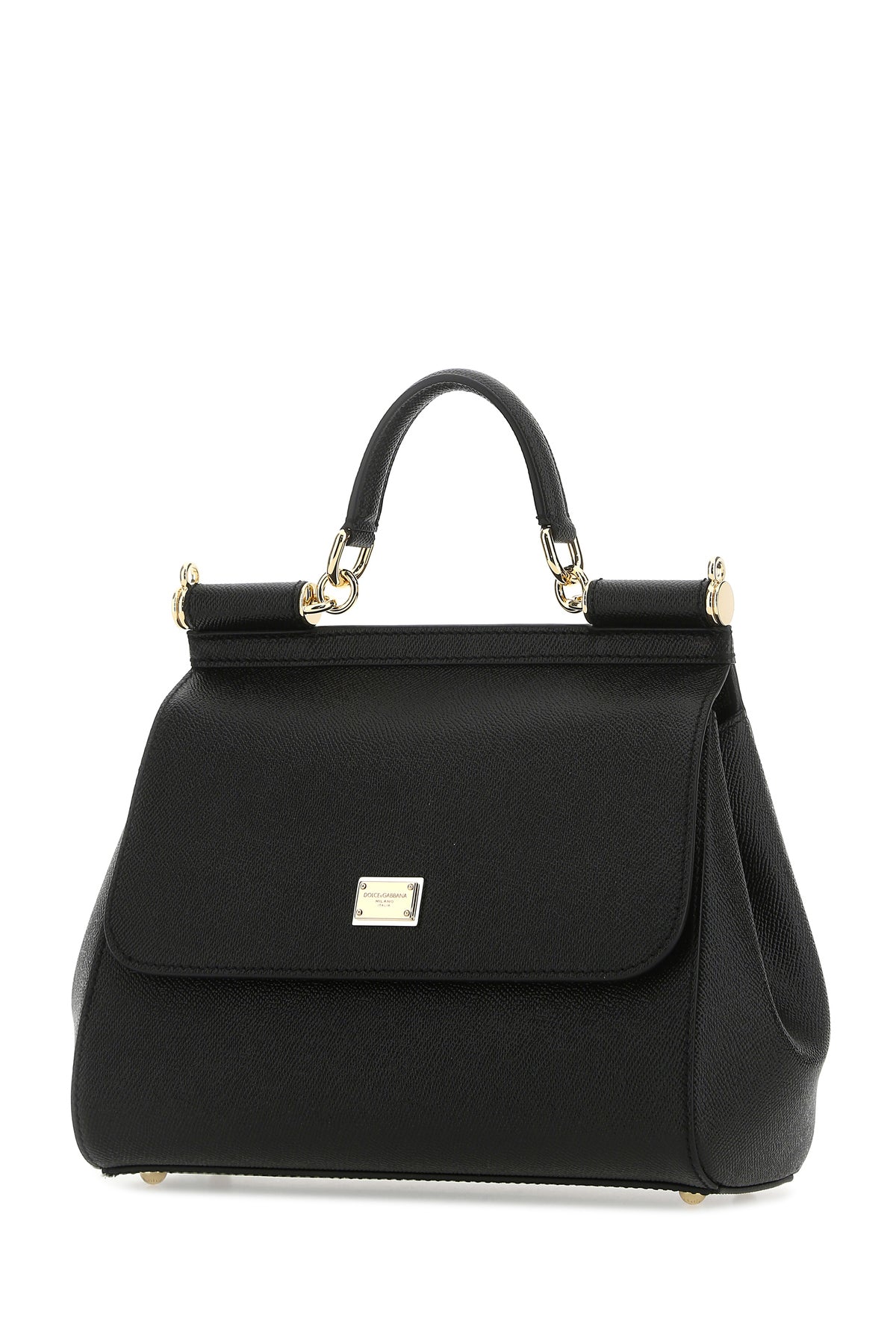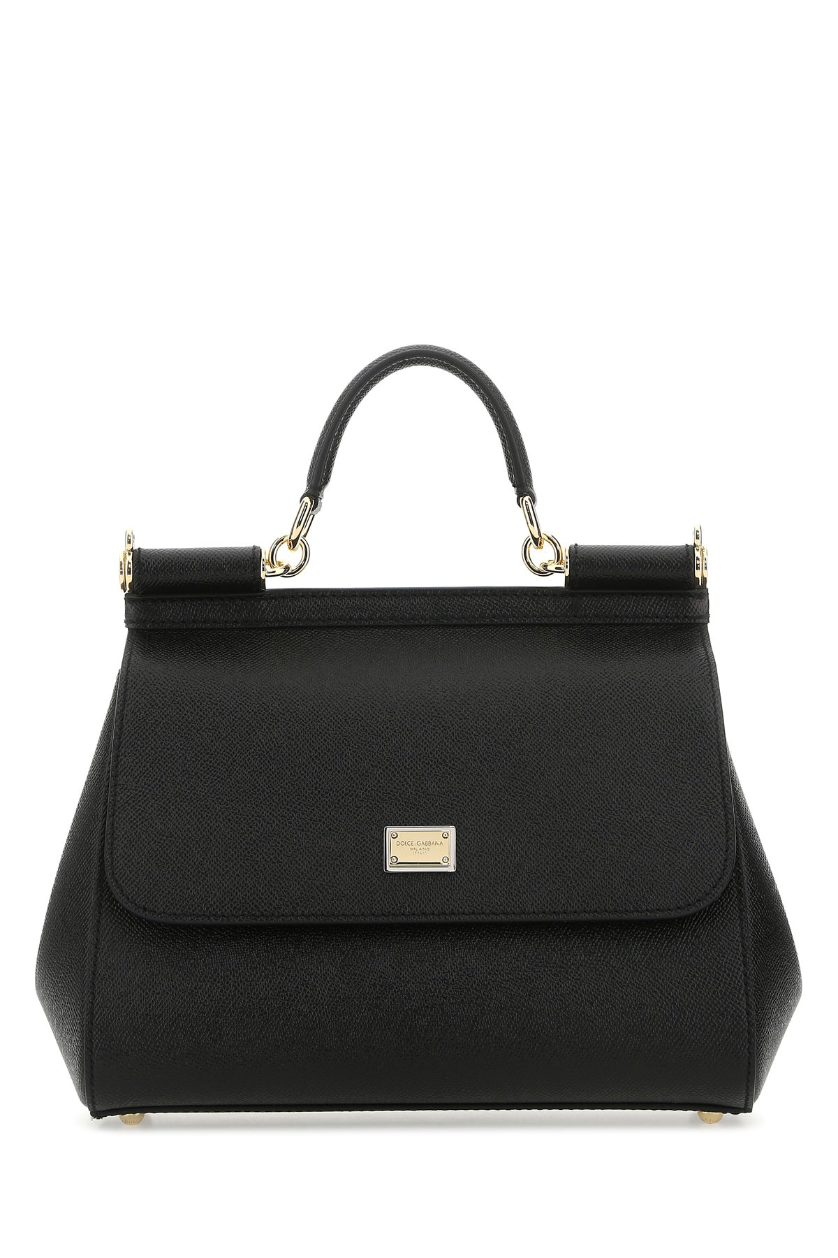 Handbag realized in Dauphine calf leather enriched by metal logoed plate at the front.