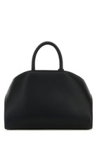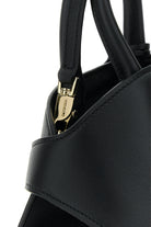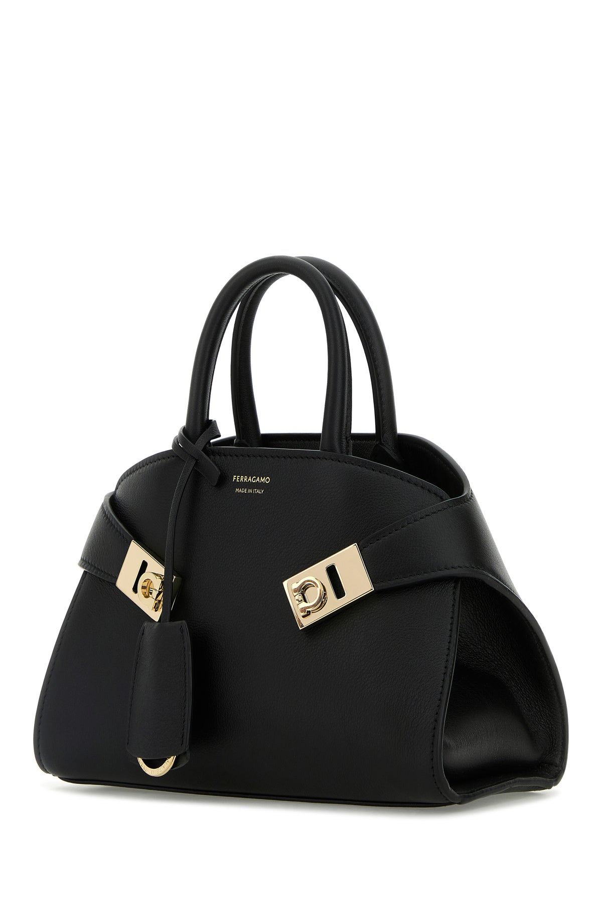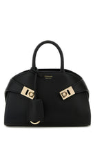 Handbag realized in slightly pebble calf leather characterized by laminated printed logo at the front enriched by leather straps with metal Gancini details at the front and detachable keyring accessory.