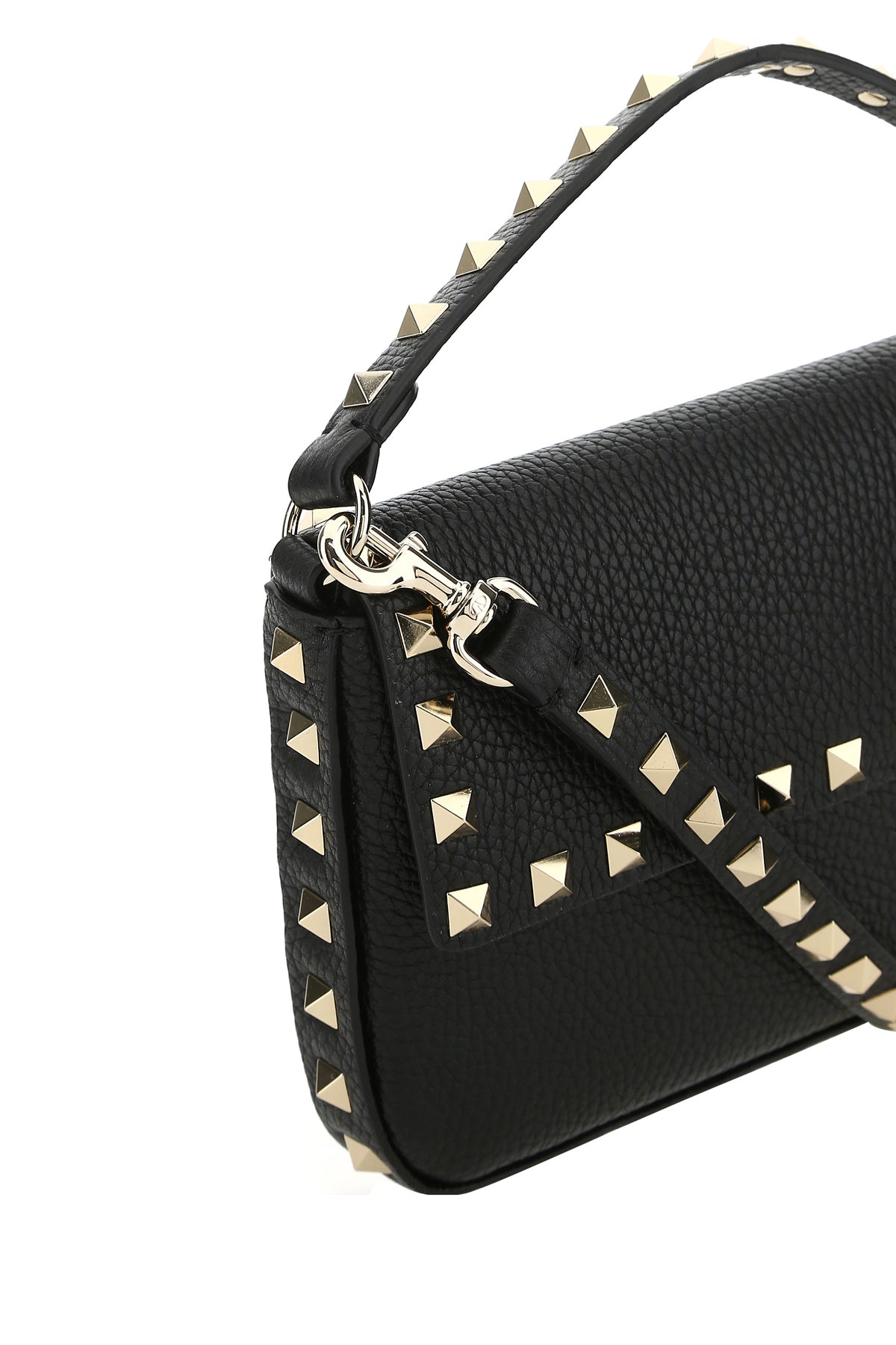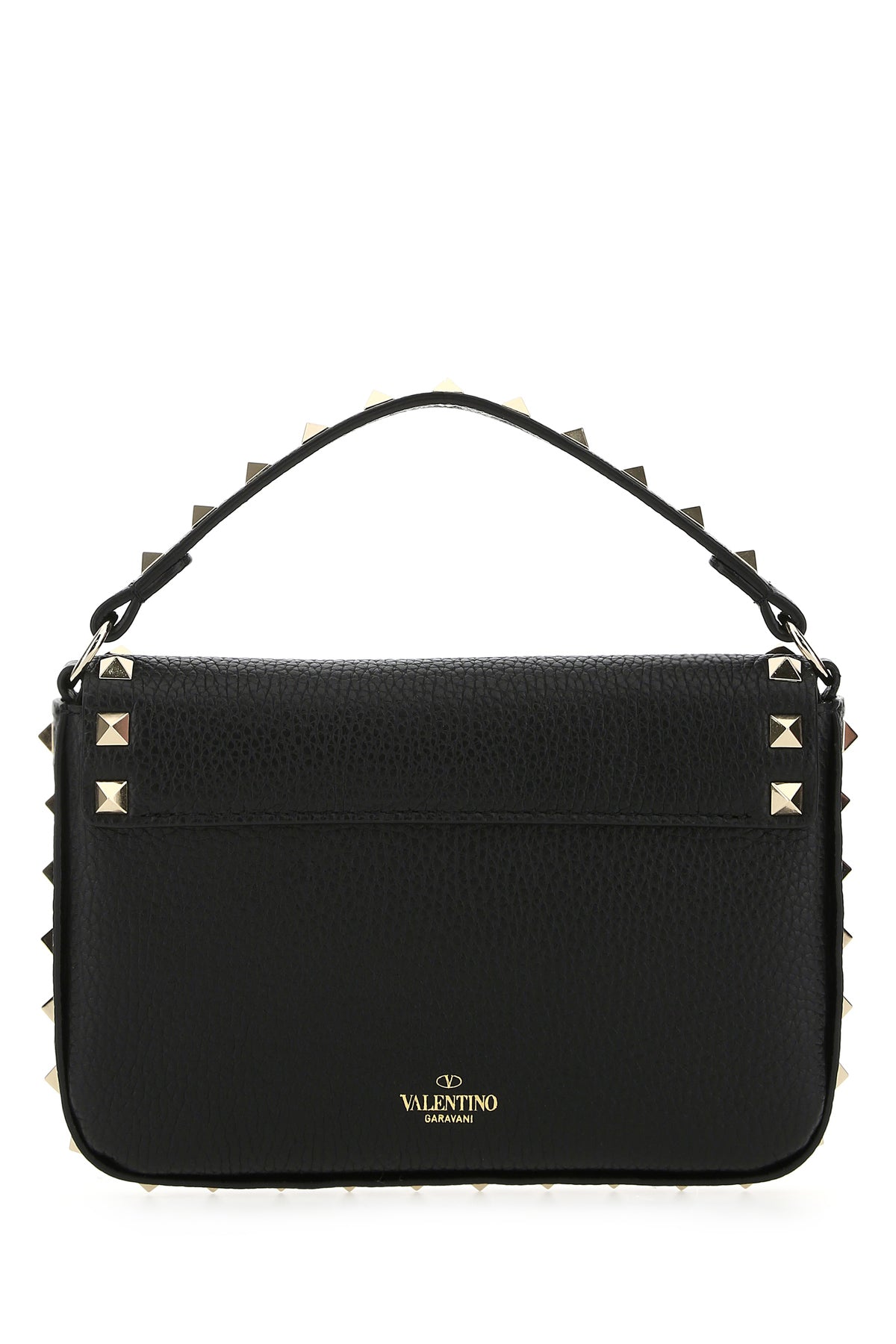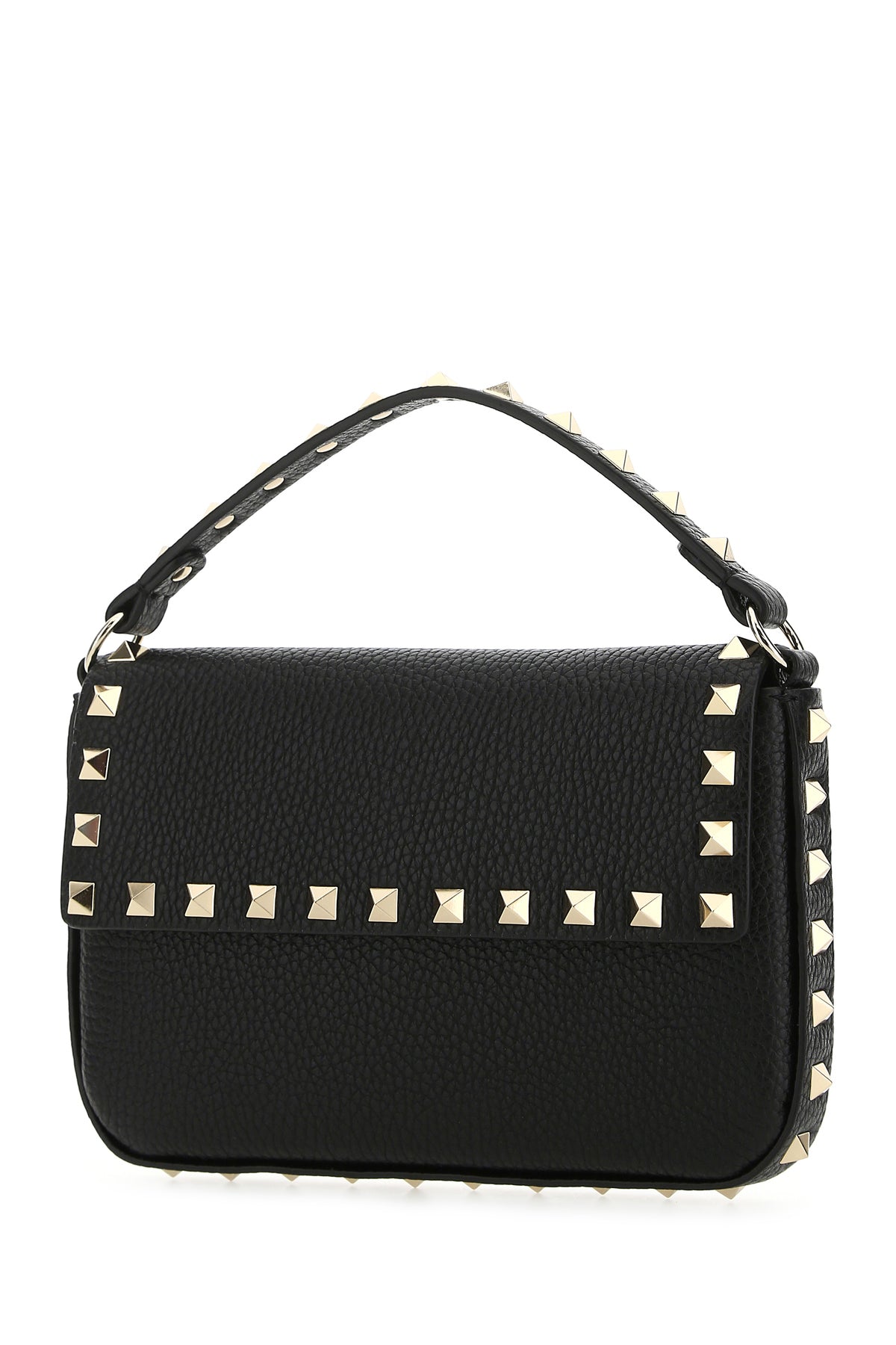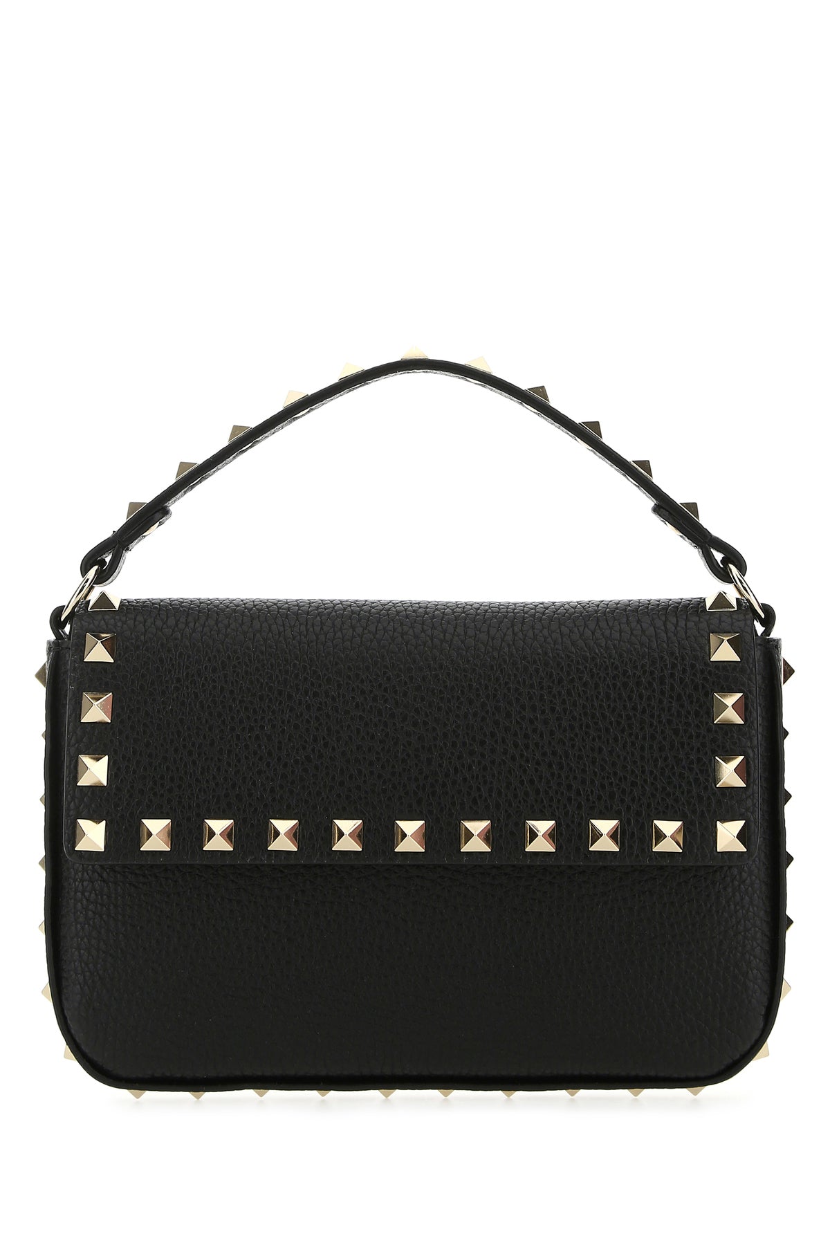 Handbag realized in grained calf leather characterized by printed logo at the back enriched by metal studs on the trimmings.