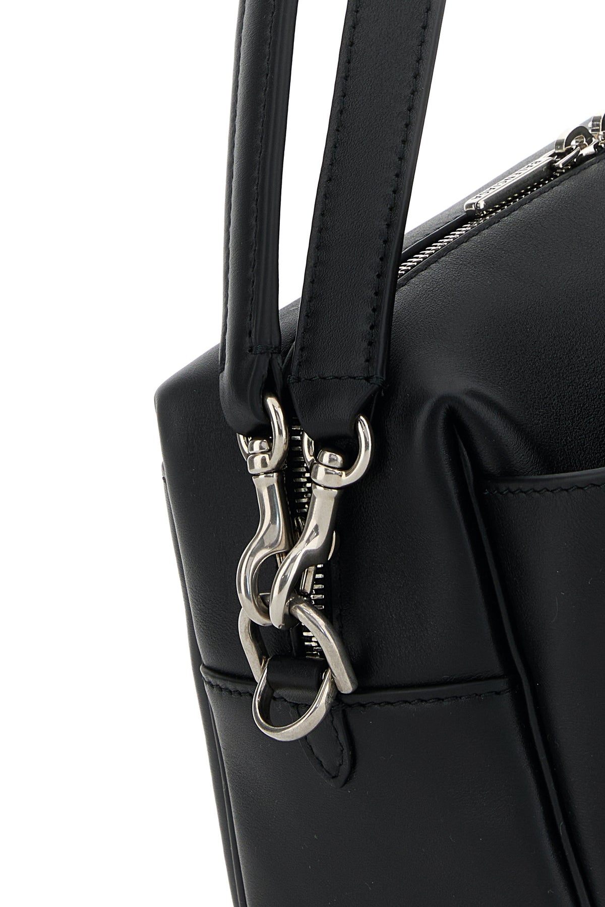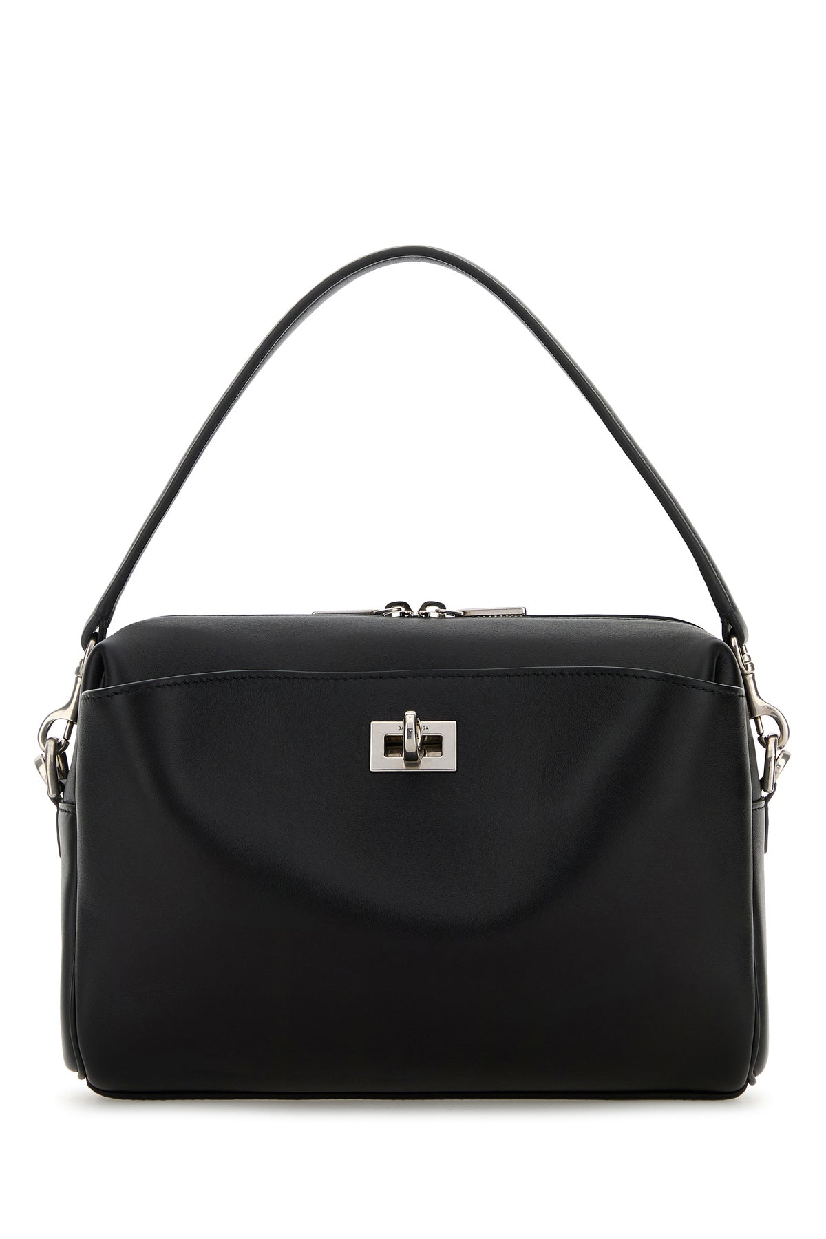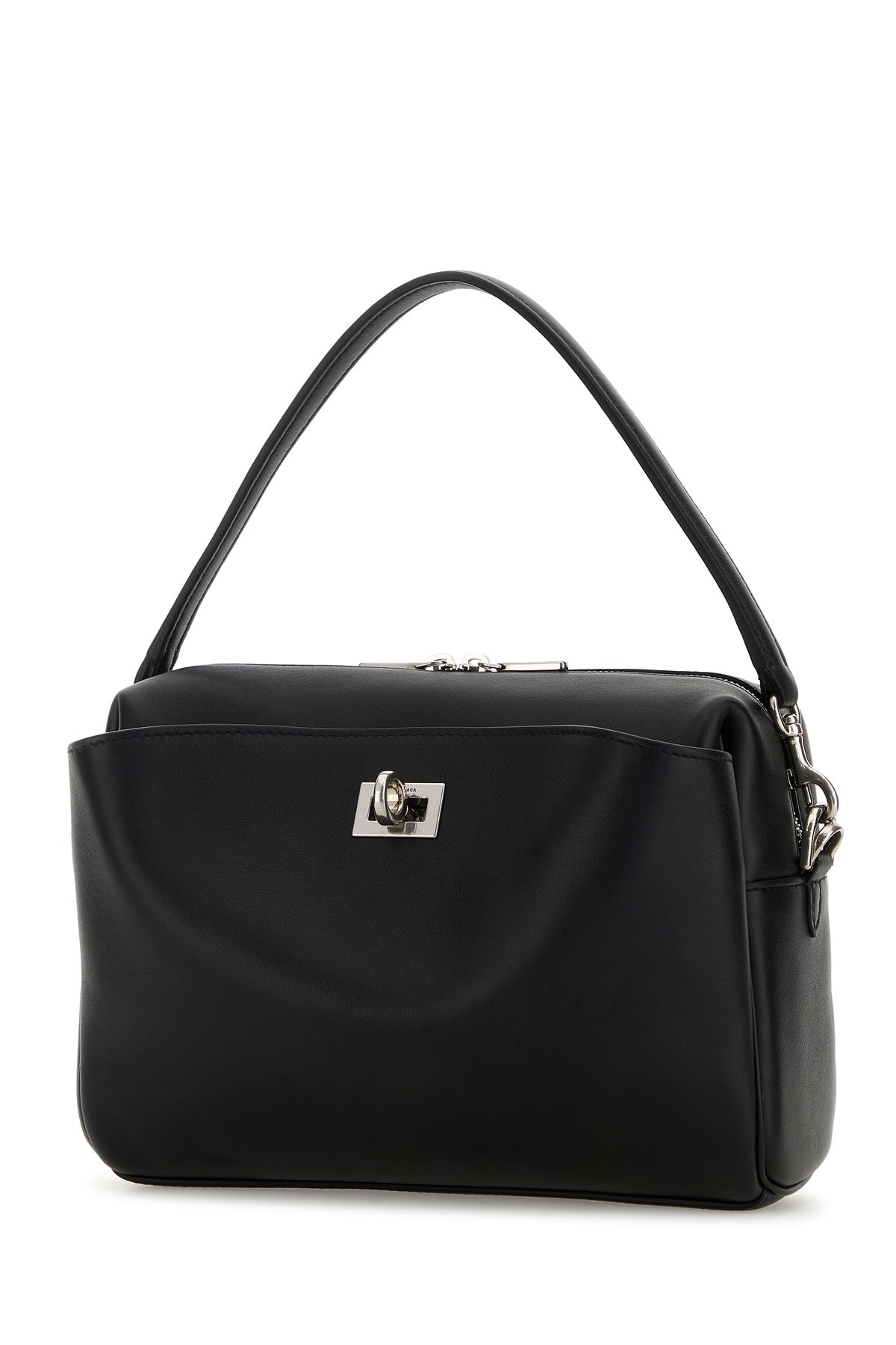Handbag realized in calf leather characterized by embossed logo on the turn-lock closure.