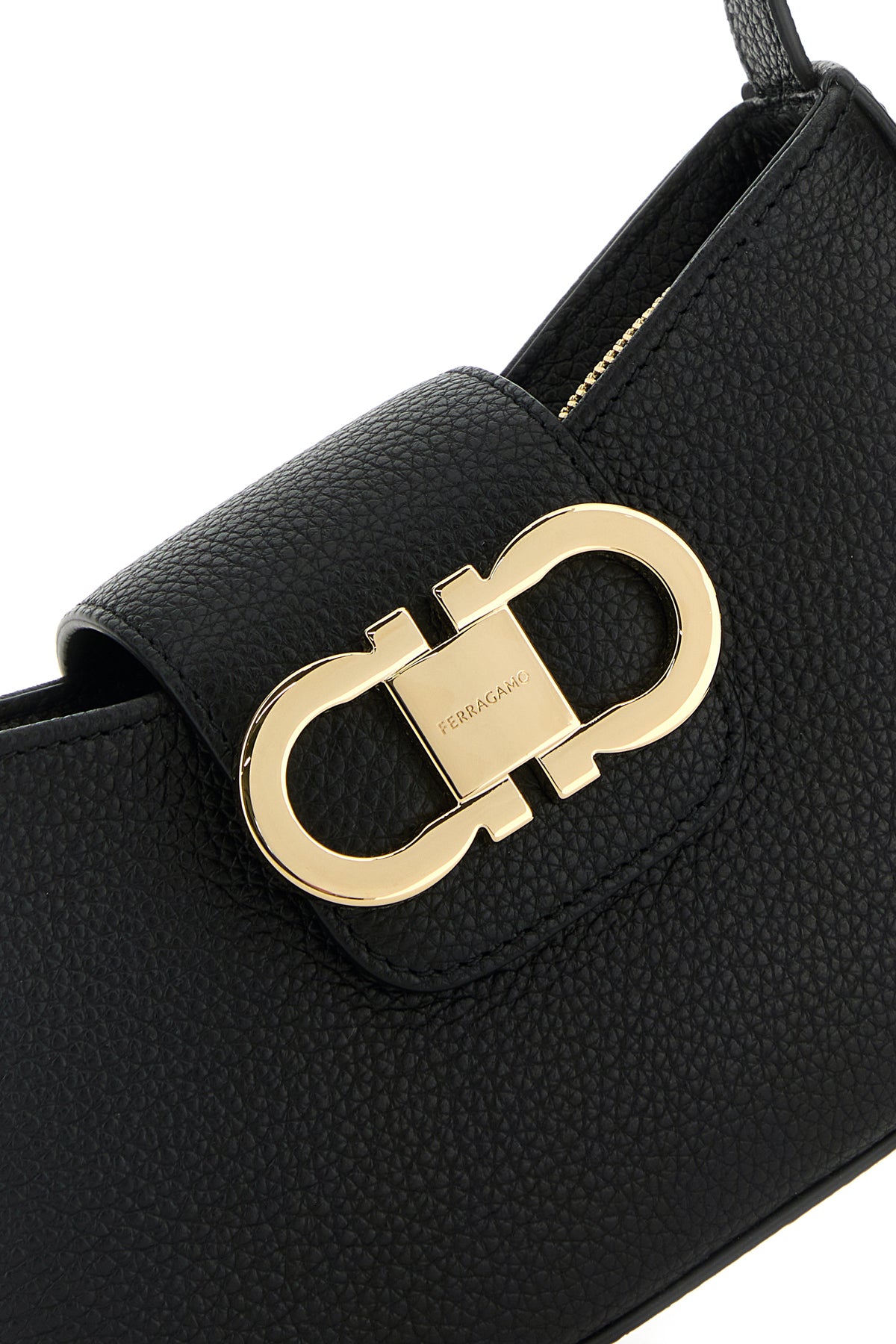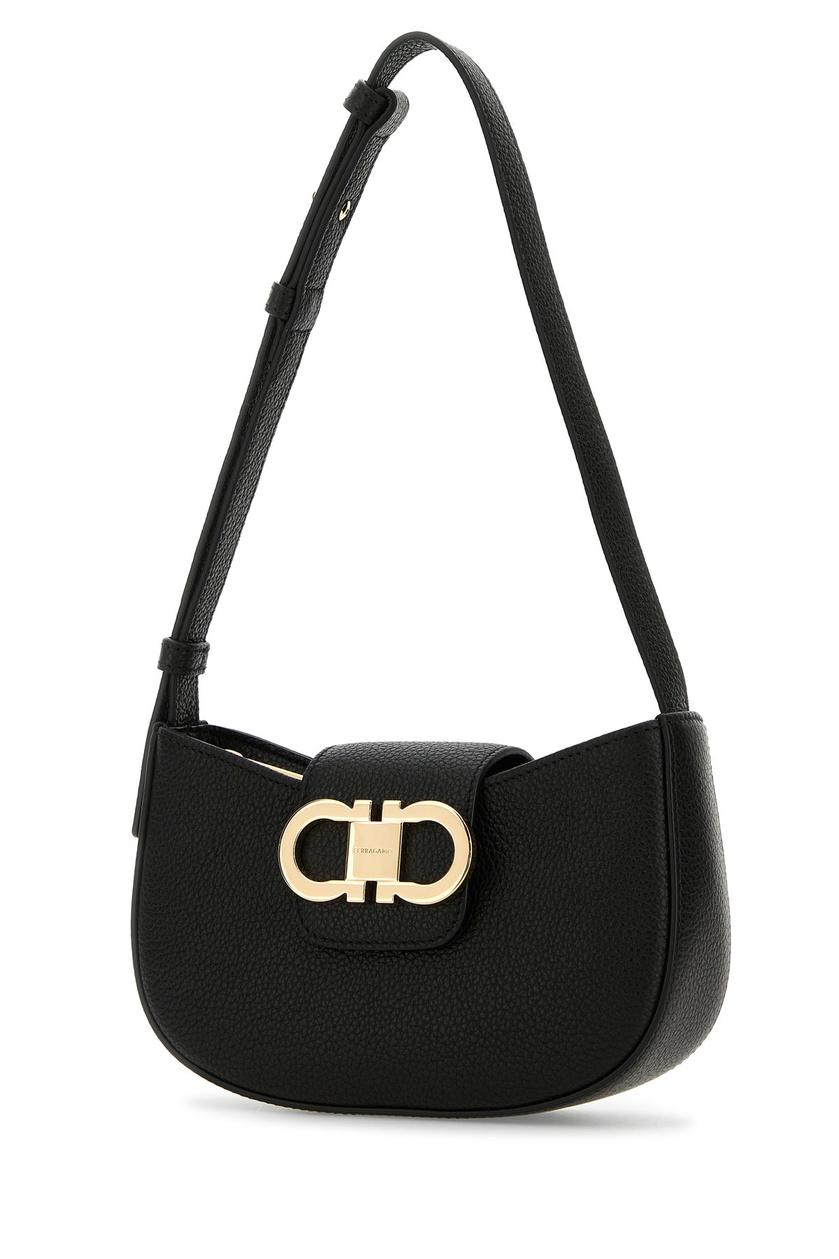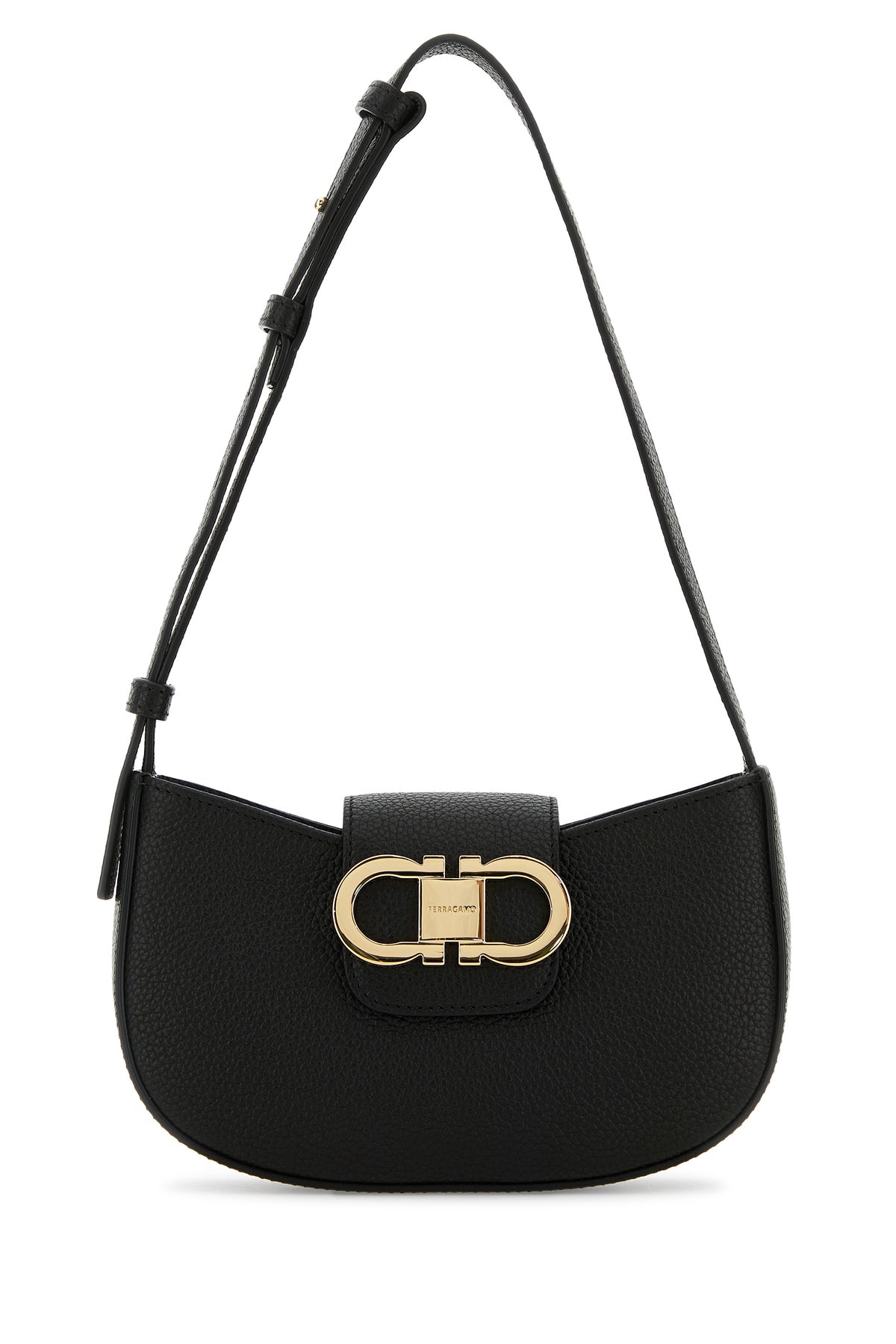 Shoulder bag realized in pebble leather enriched by Gancini metal detail at the front.