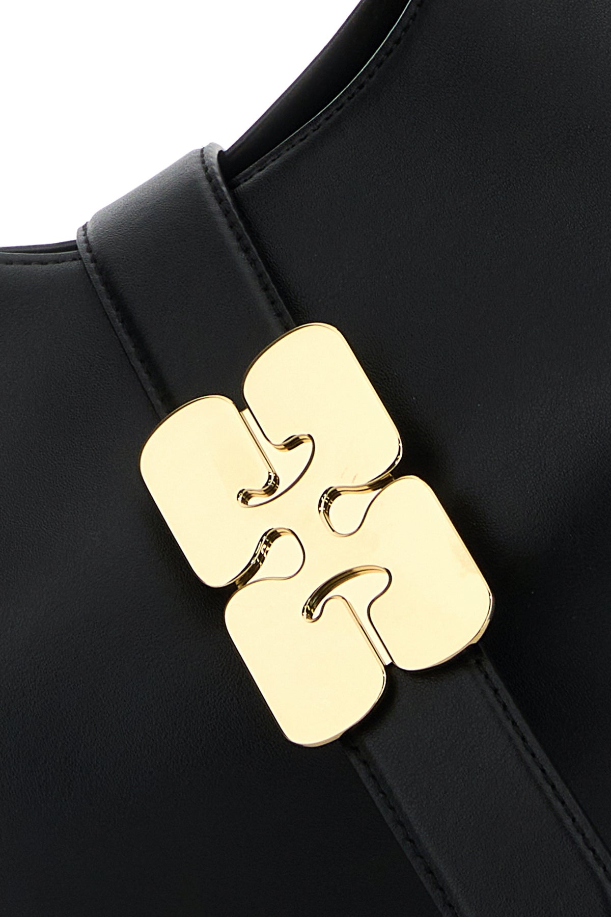 Shoulder bag realized in smooth leather enriched by logoed metal detail at the front.