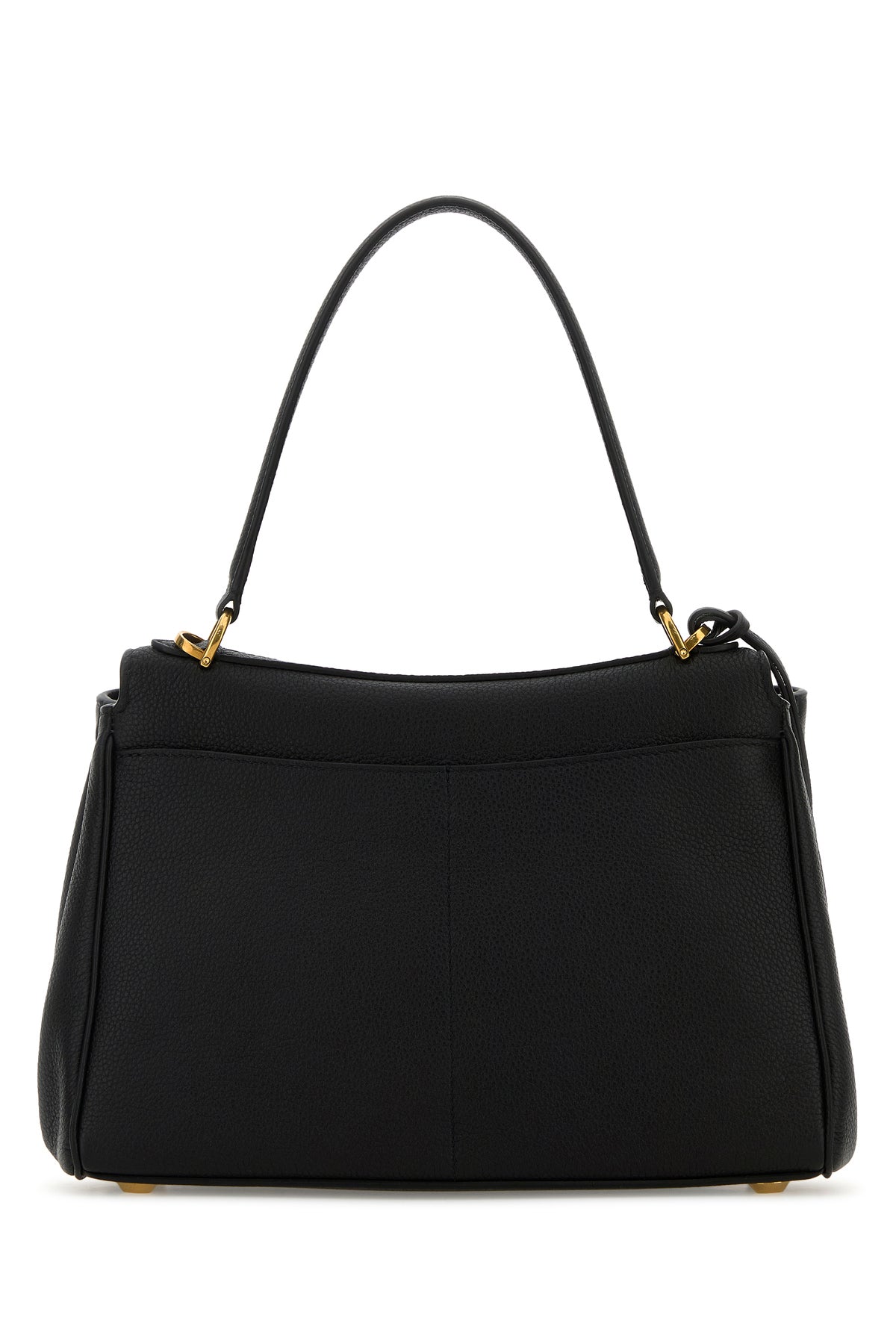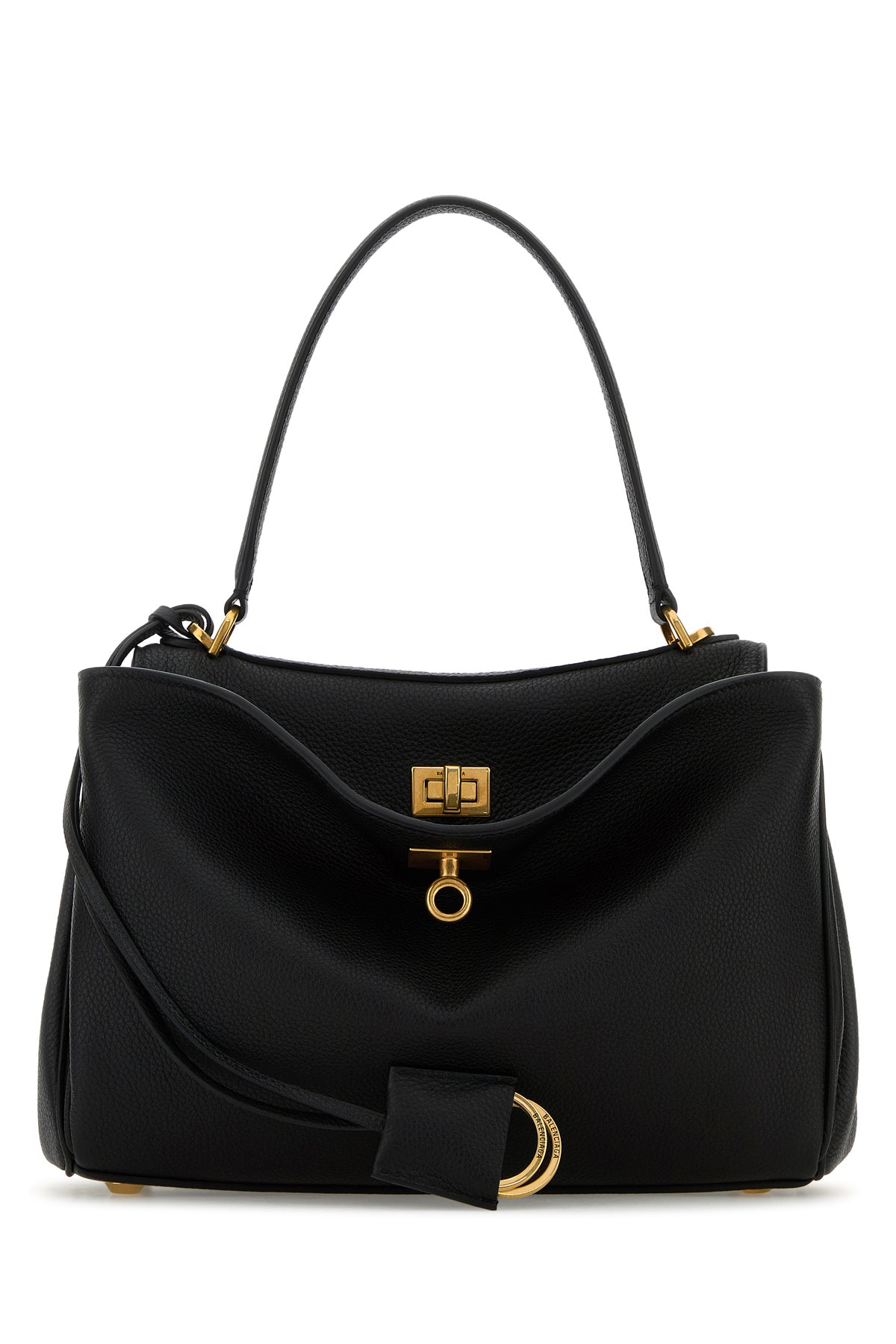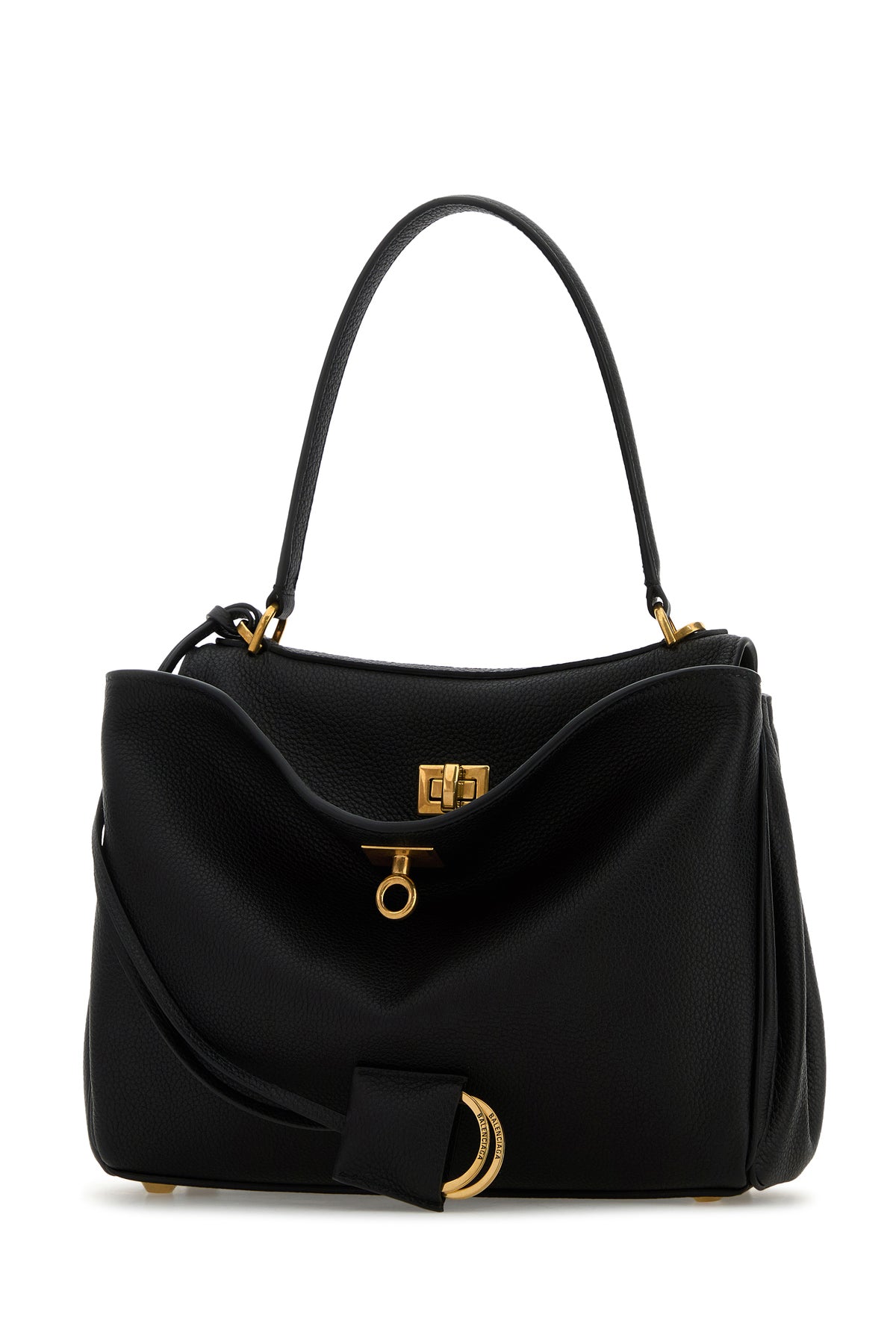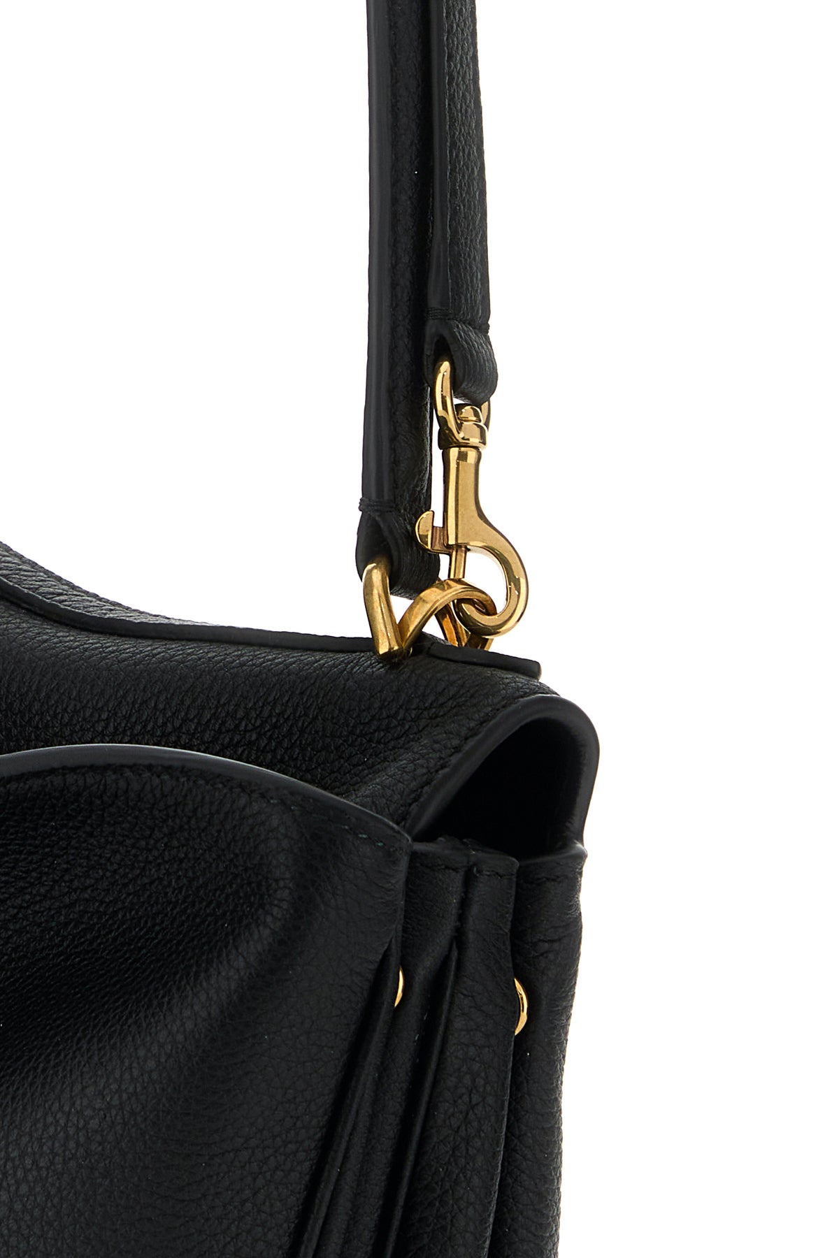 Handbag realized in smooth calf leather enriched by detachable tonal leather accessory with metal rings.