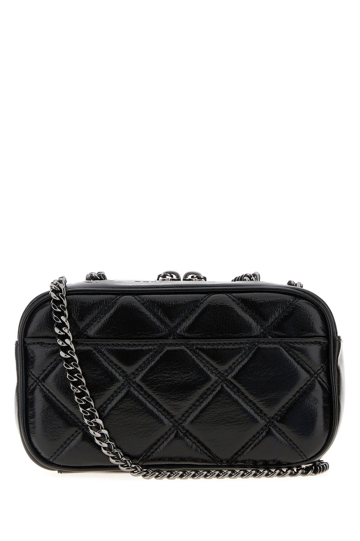 Shoulder bag realized in quilted leather characterized by embossed logo at the top enriched by metal logoed detail at the front.