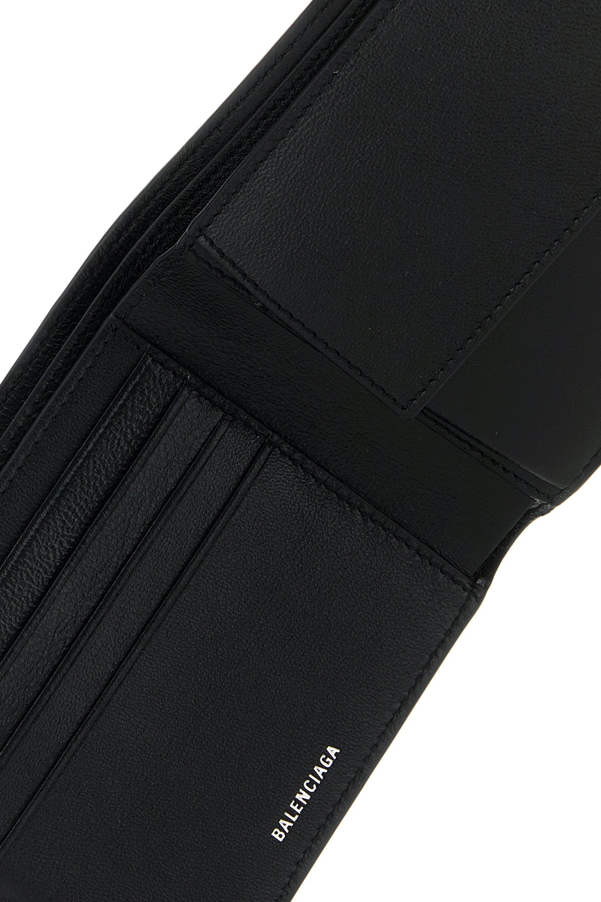 Wallet realized in pebble calf healthier characterized by laminated printed logo at the front.