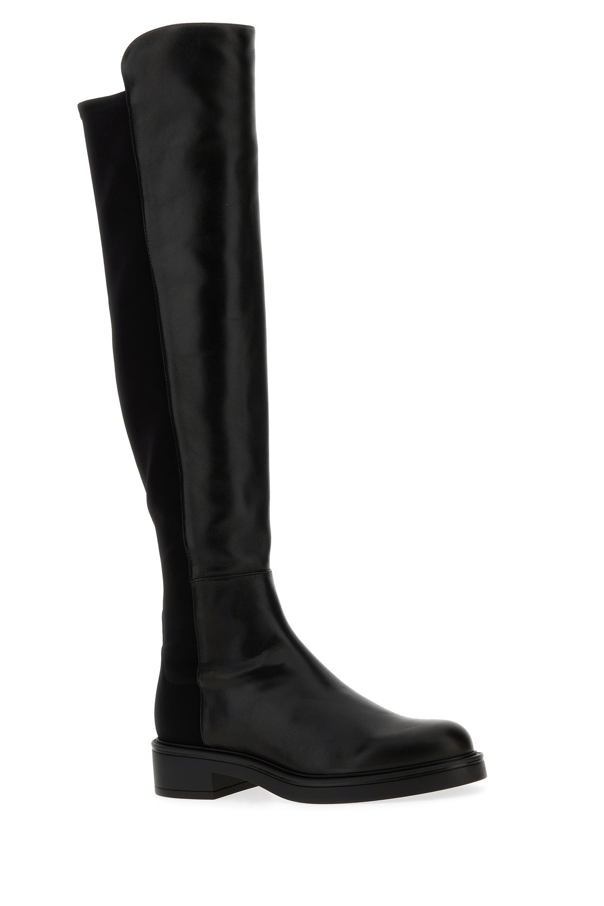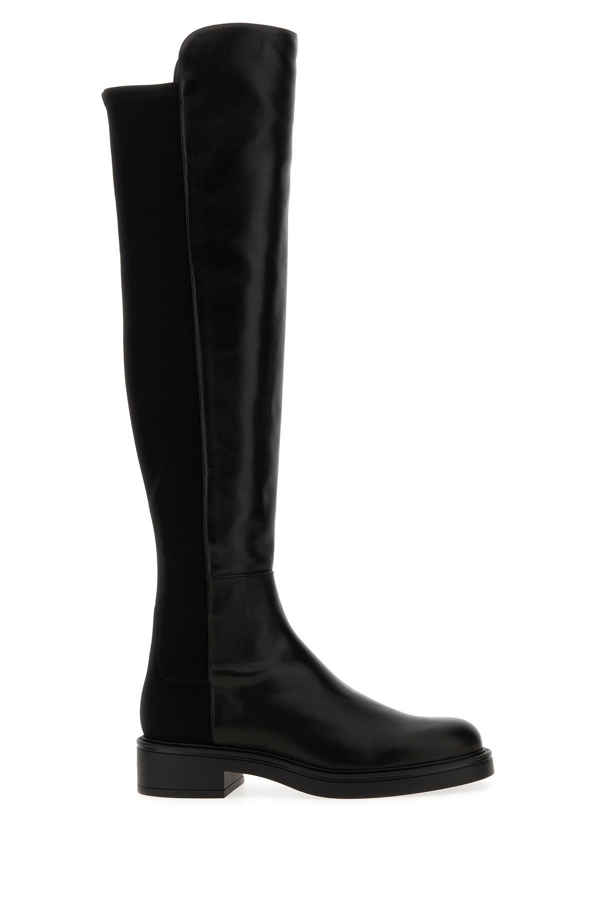 Over-the-knee boots realized in nappa leather and elastic fabric.