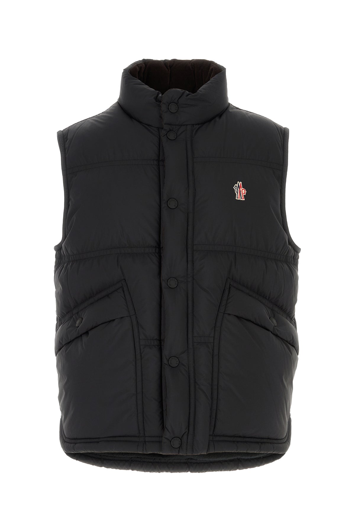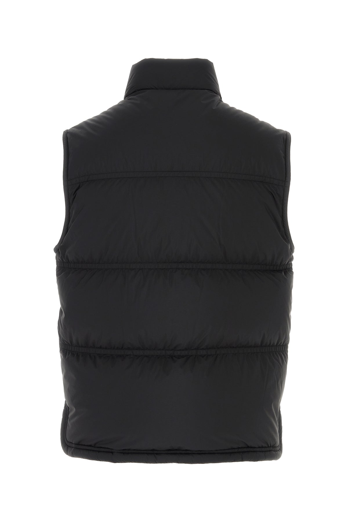 Sleeveless down jacket realized in nylon enriched by contrasting logoed patch on the sleeve.