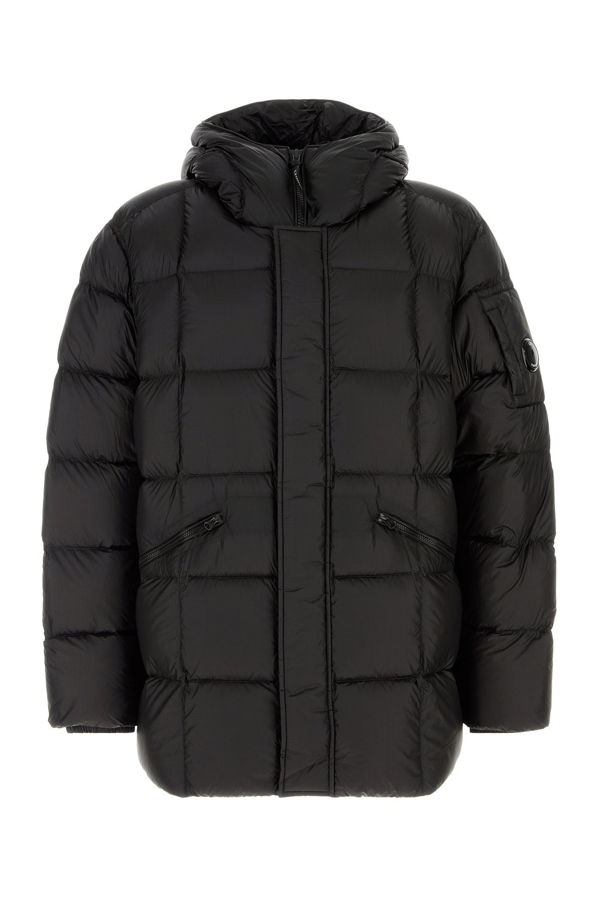 Down jacket realized in quilted nylon enriched by logoed patch on the sleeve.