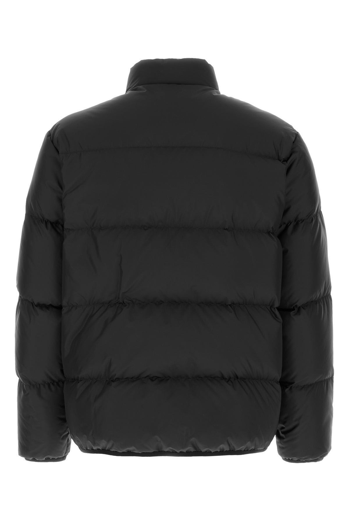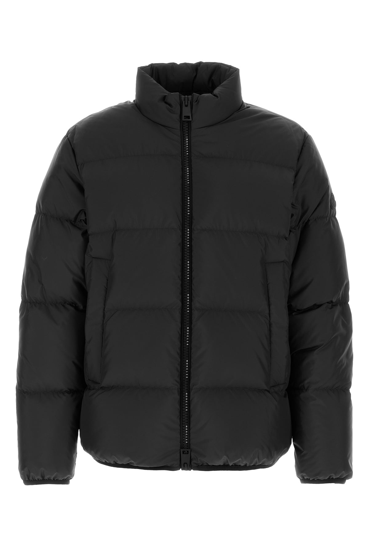 Down jacket realized in quilted nylon enriched by rubberized logoed patch on the sleeve.