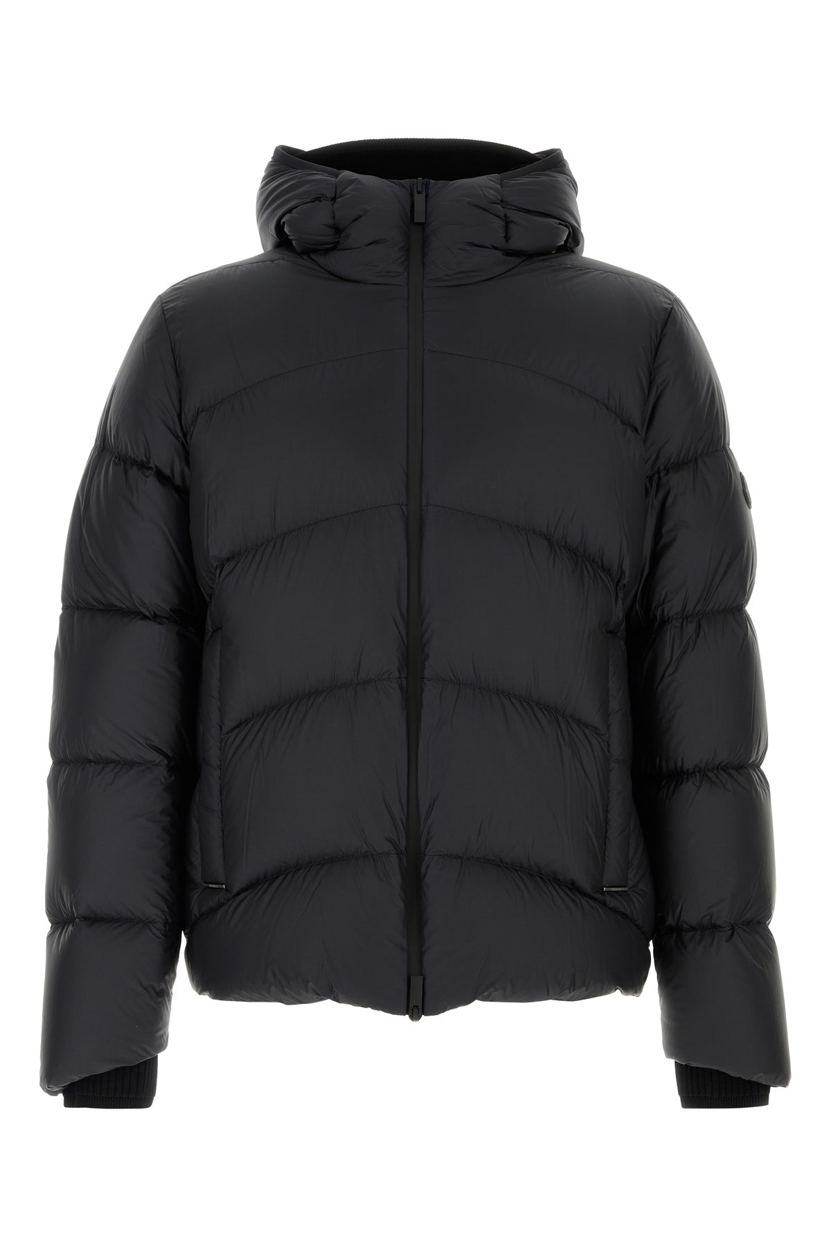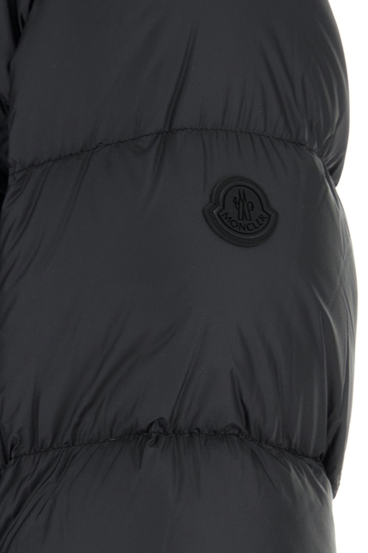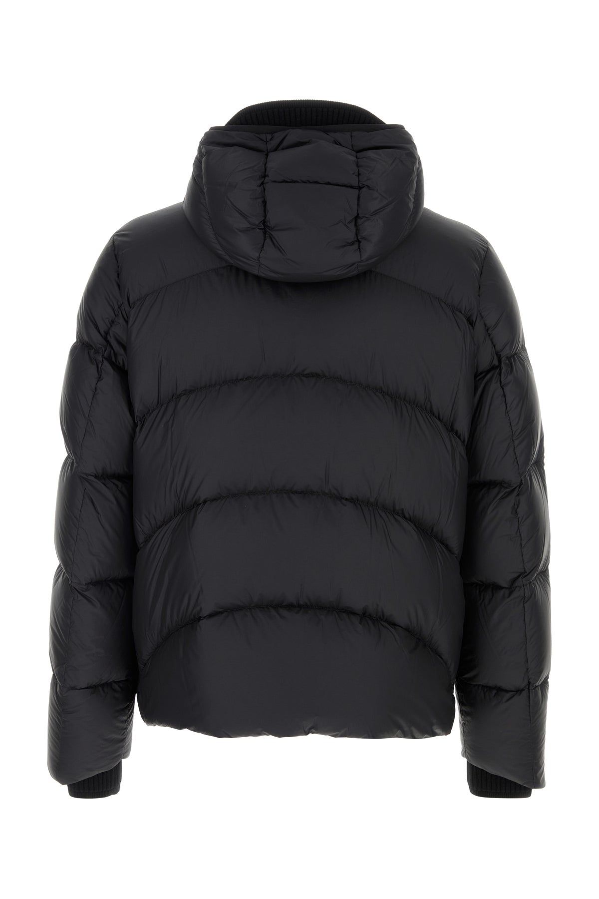 Down jacket realized in quilted nylon enriched by tonal logoed patch on the sleeve.