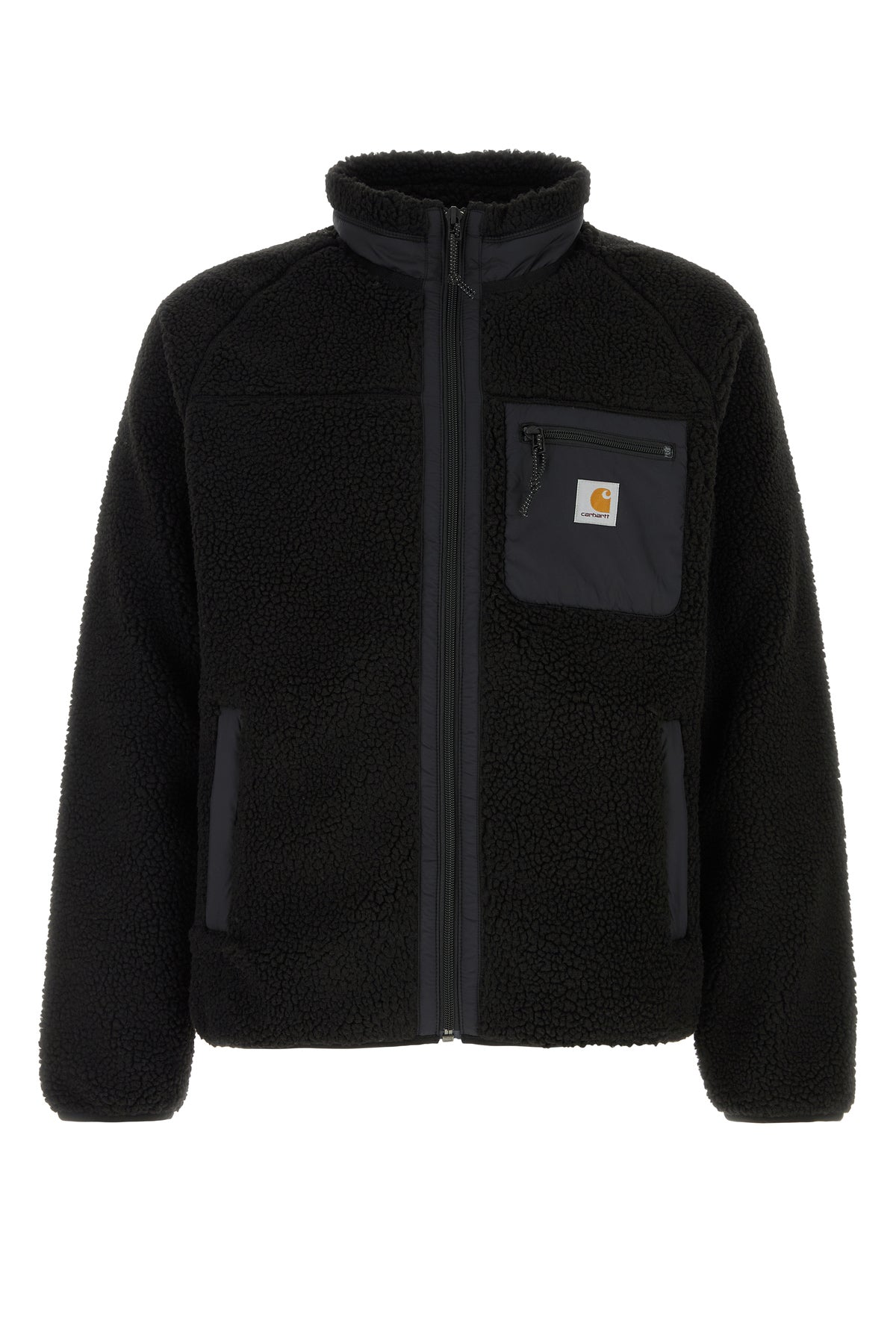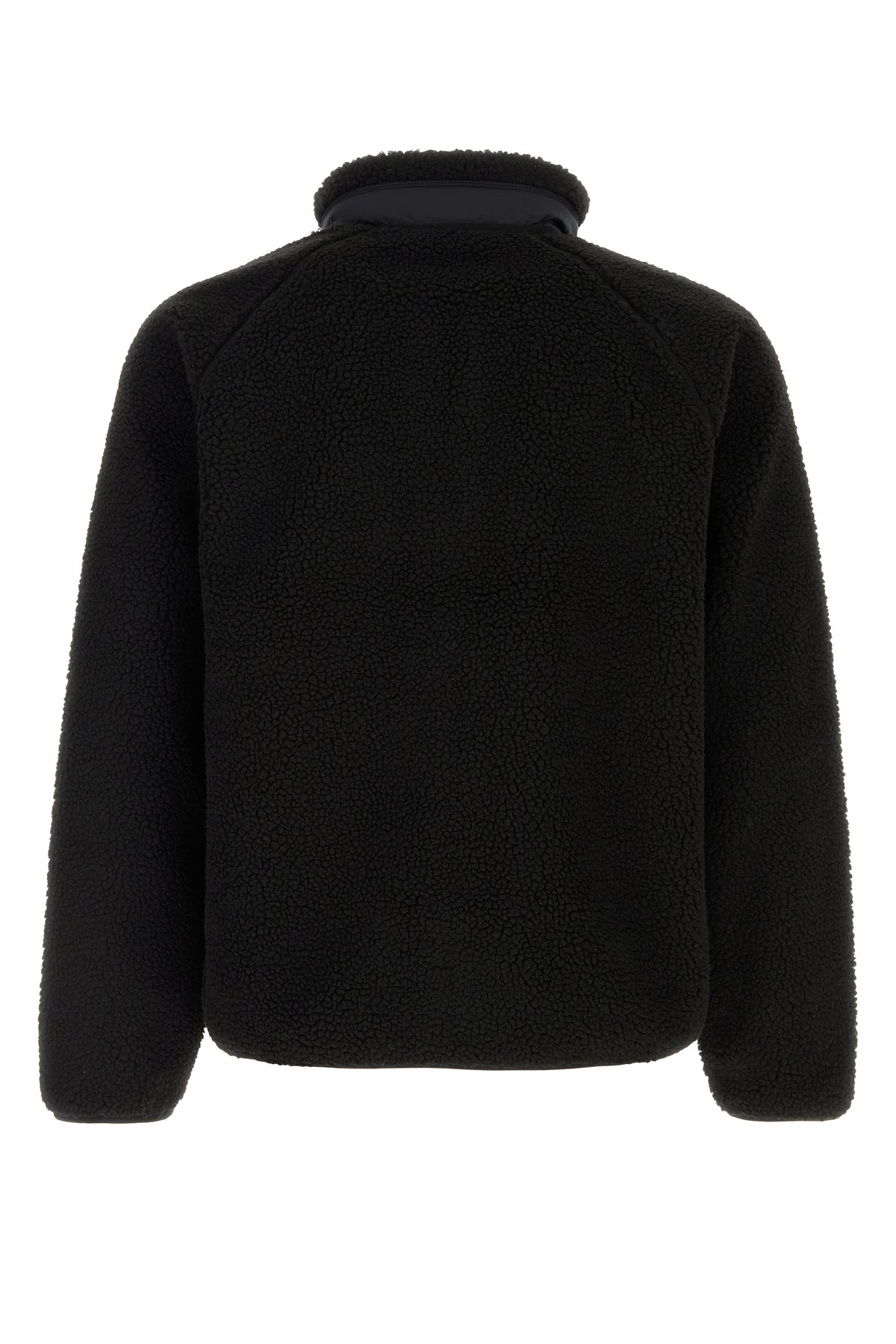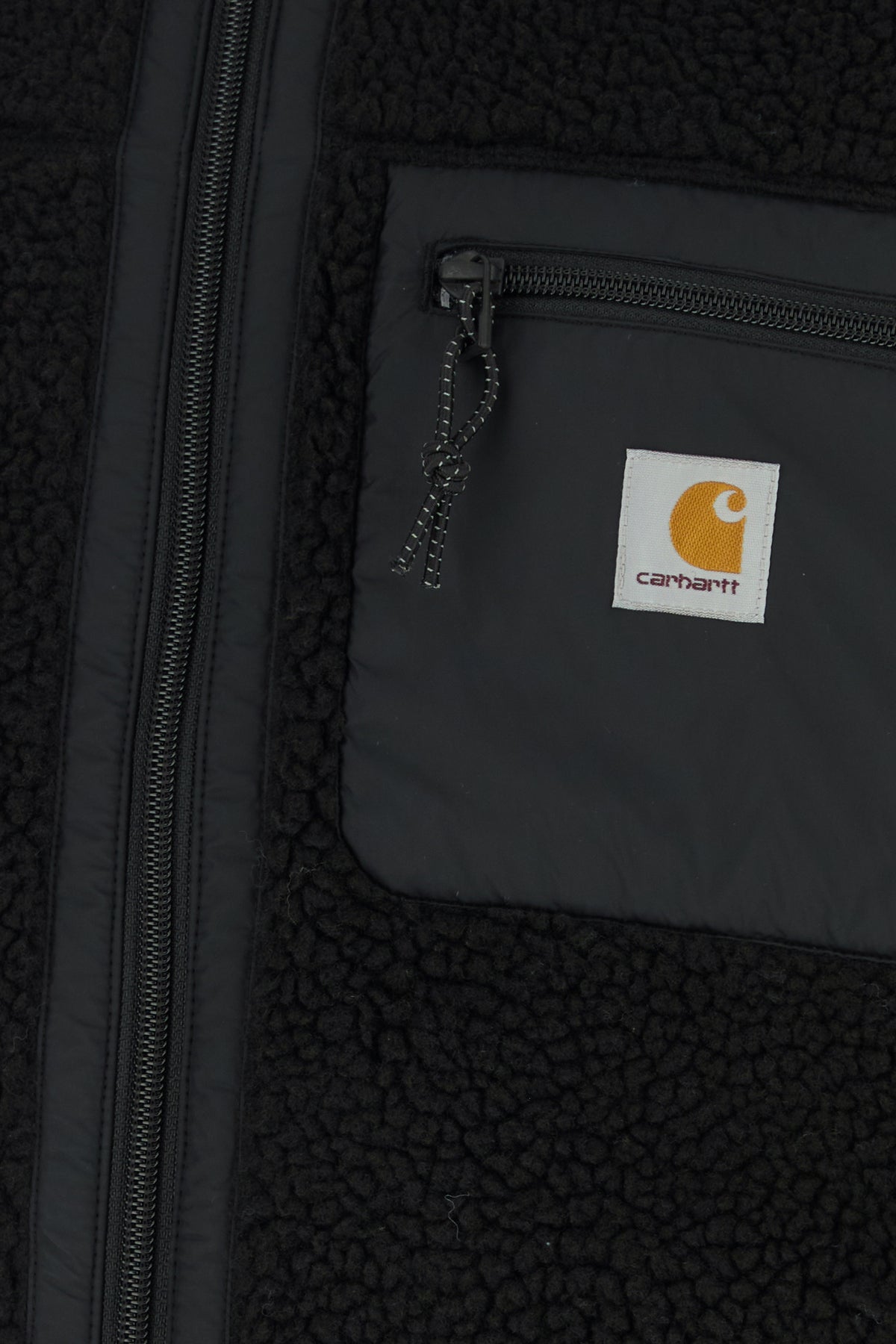 Jacket realized in pile enriched by contrasting logoed label on the chest.
