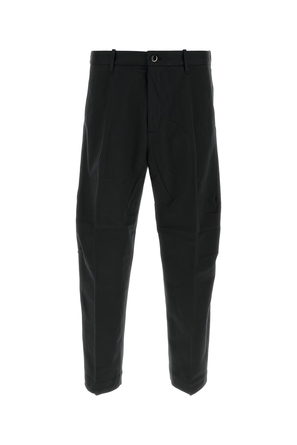 Pant realized in stretch cotton enriched by contrasting logoed label at the back.