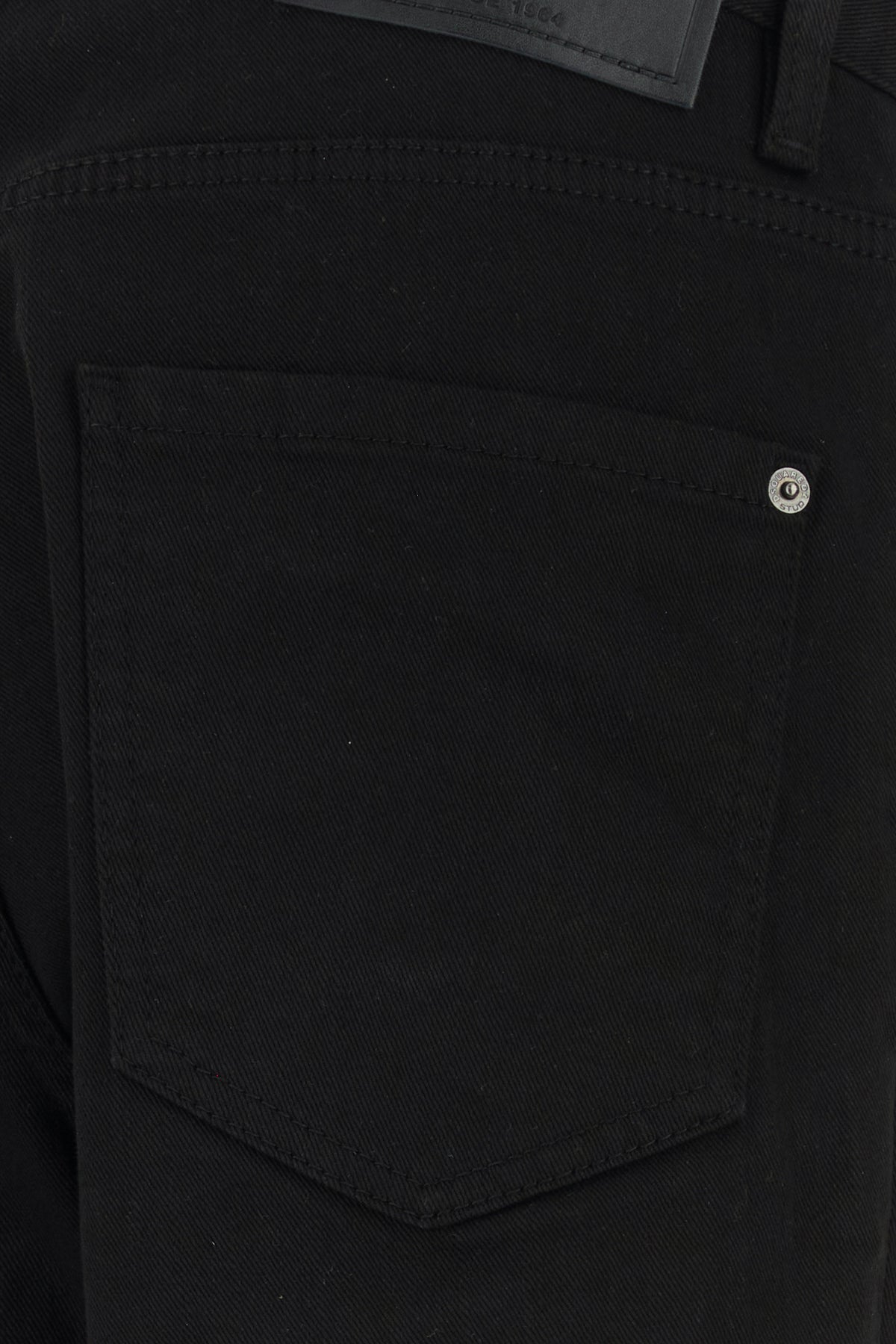 Jeans realized in stretch cotton denim enriched by tonal logoed label at the back.