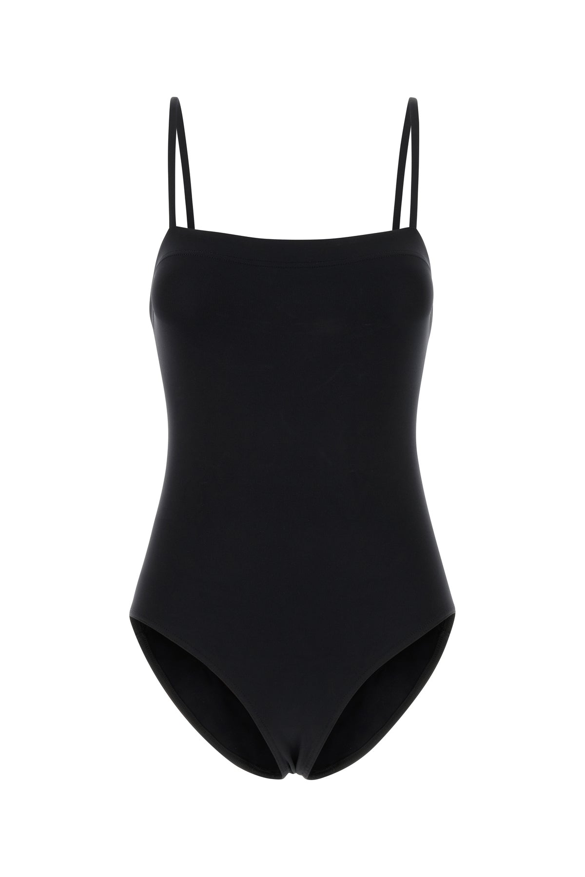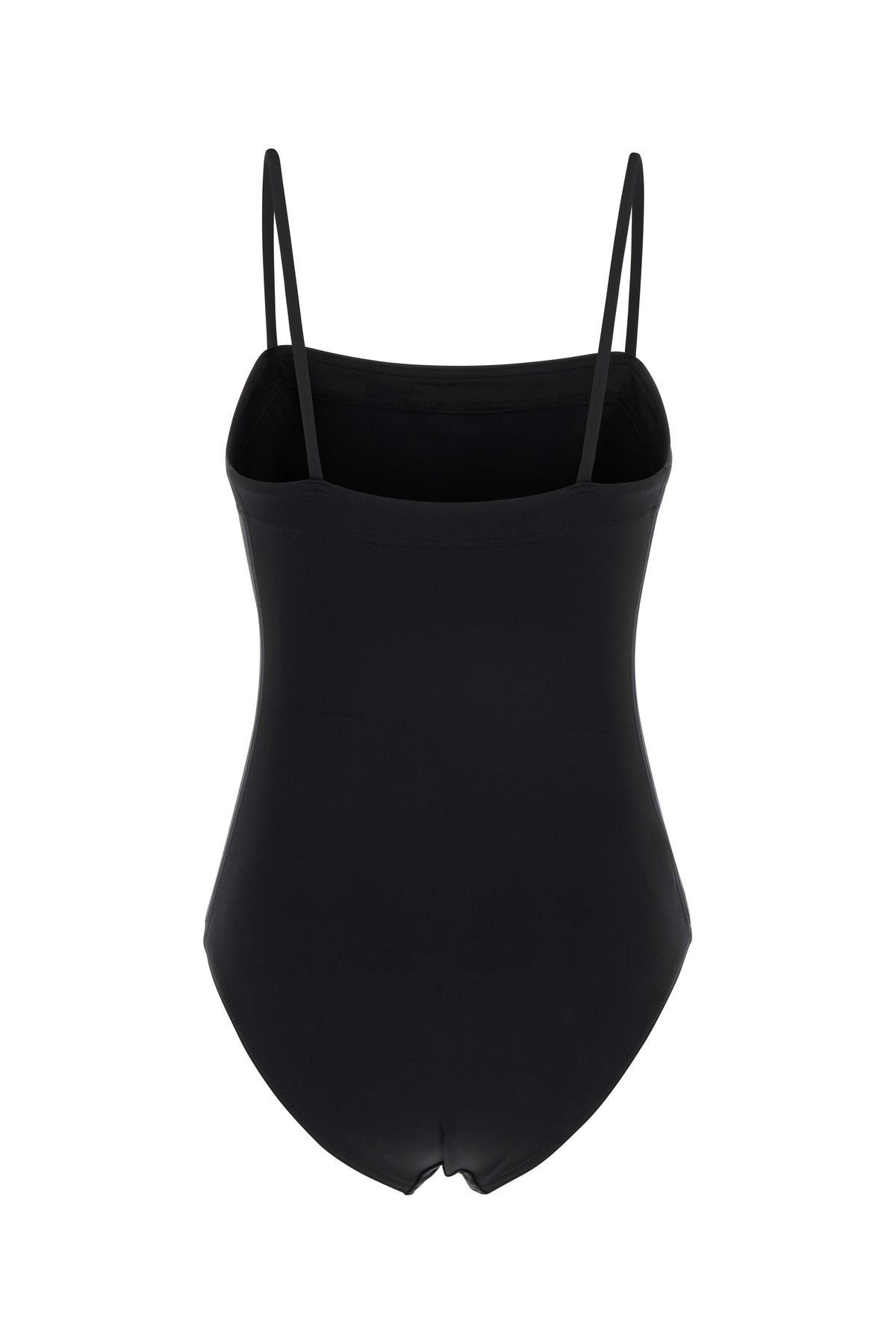 Swimsuit realized in stretch nylon characterized by peculiar neckline.