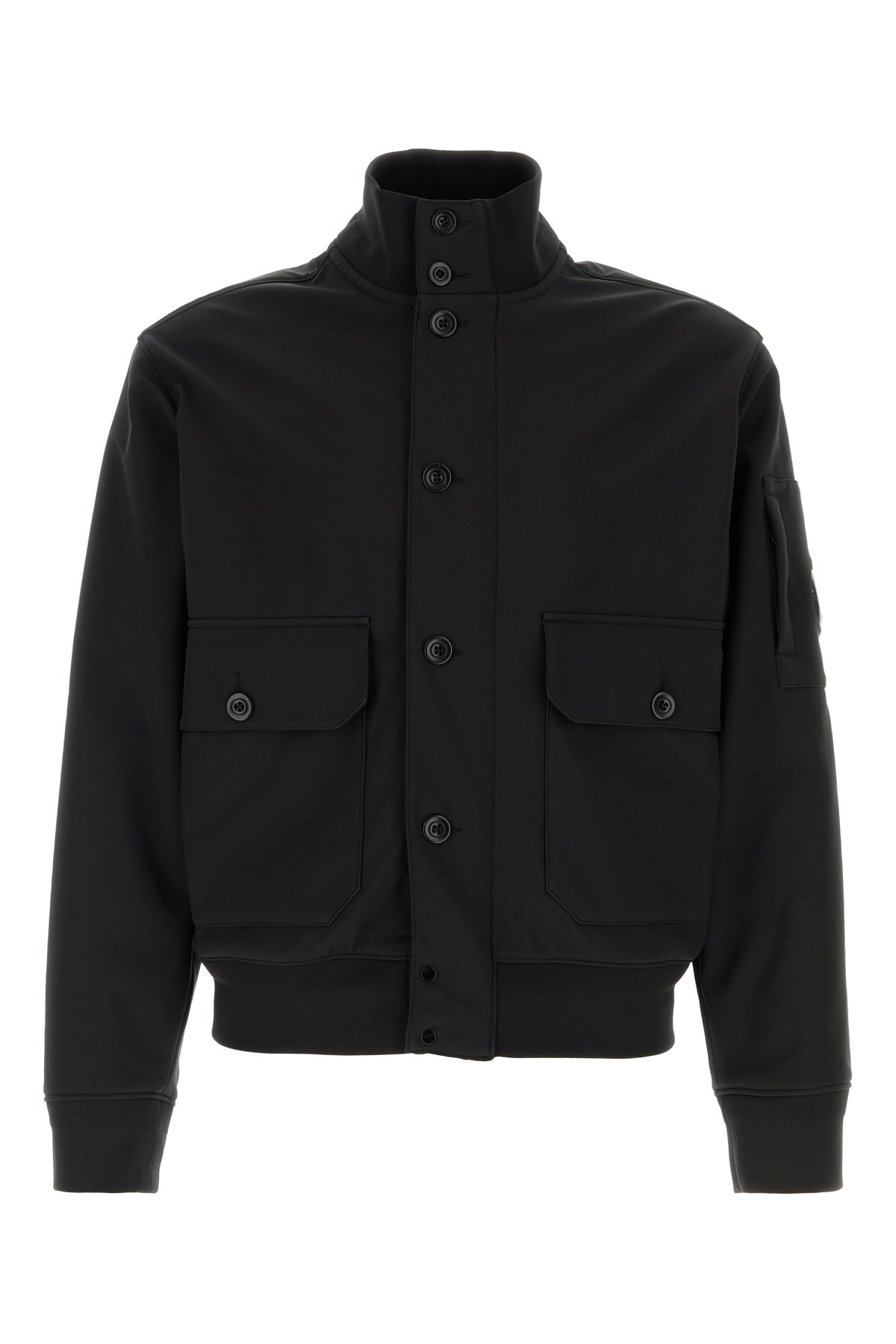 Jacket realized in stretch polyester enriched by tonal logoed detail on the sleeve.