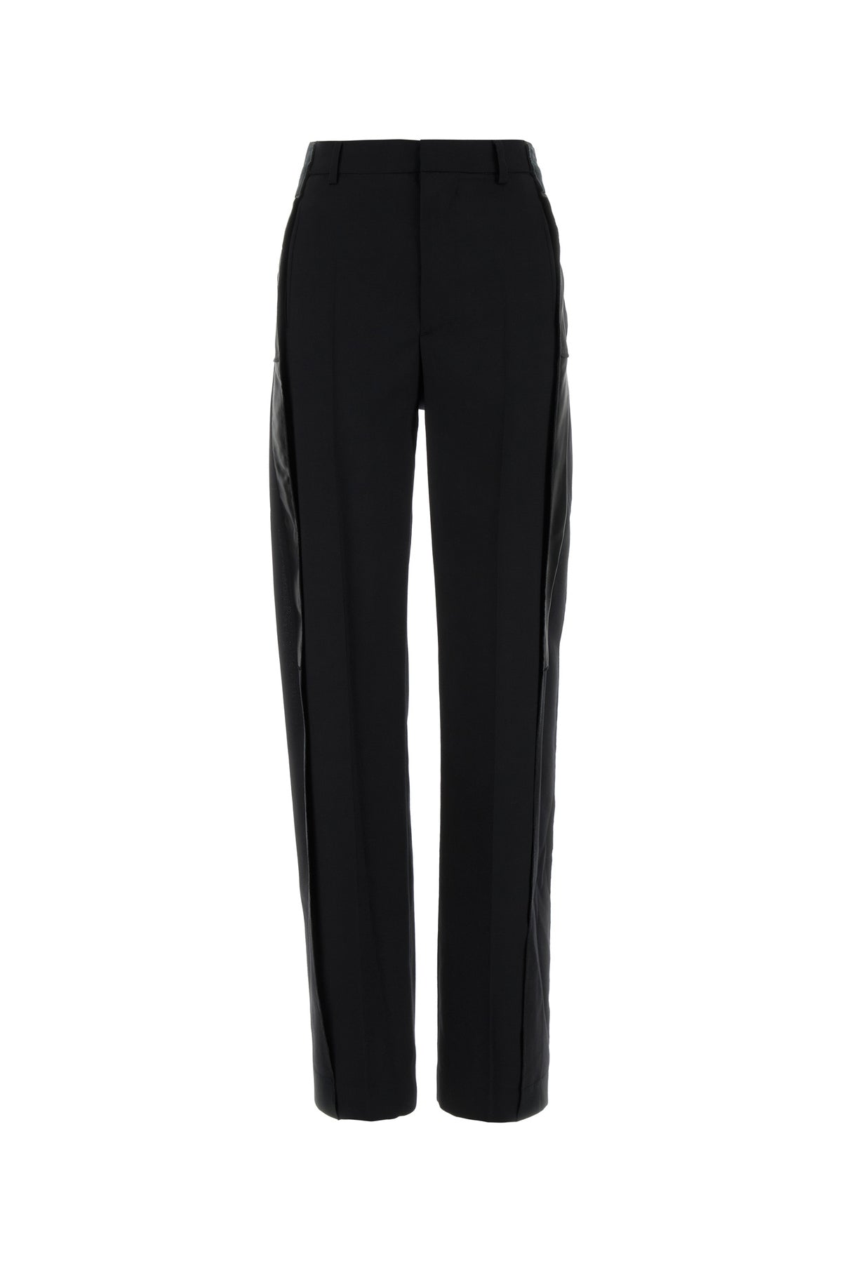 Pant realized in stretch virgin wool enriched by satin inserts on the sides.