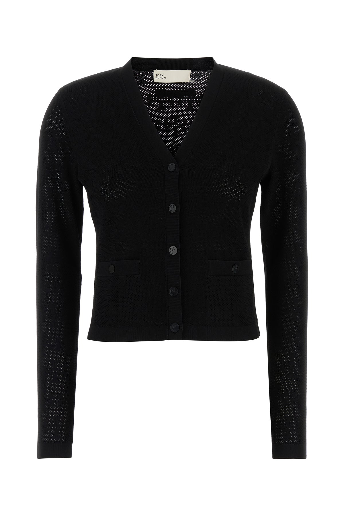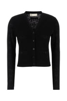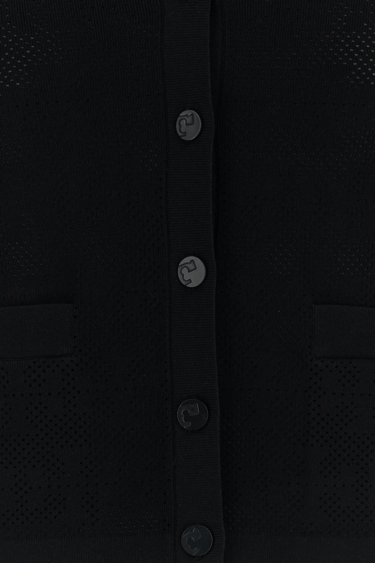 Cardigan realized in viscose blend characterized by tonal embroidered logo on the entire surface.