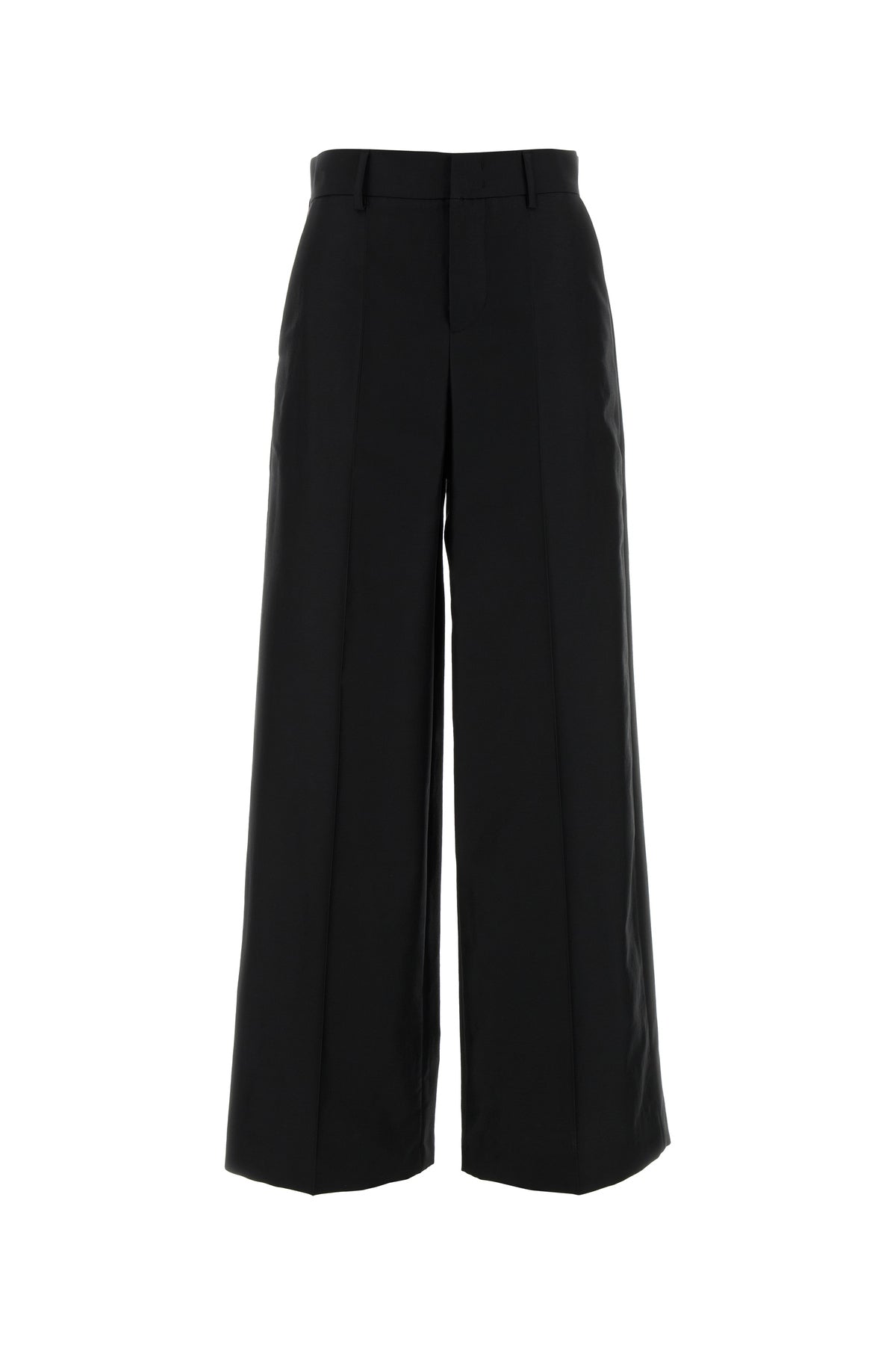 Wide-leg pant realized in virgin wool and silk characterized by central ironed pleats.