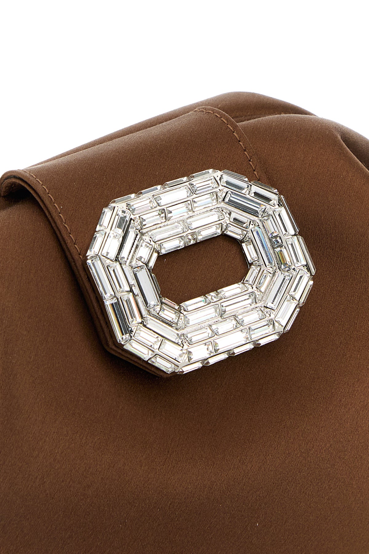 Clutch realized in satin enriched by jewel embellishment at the front.