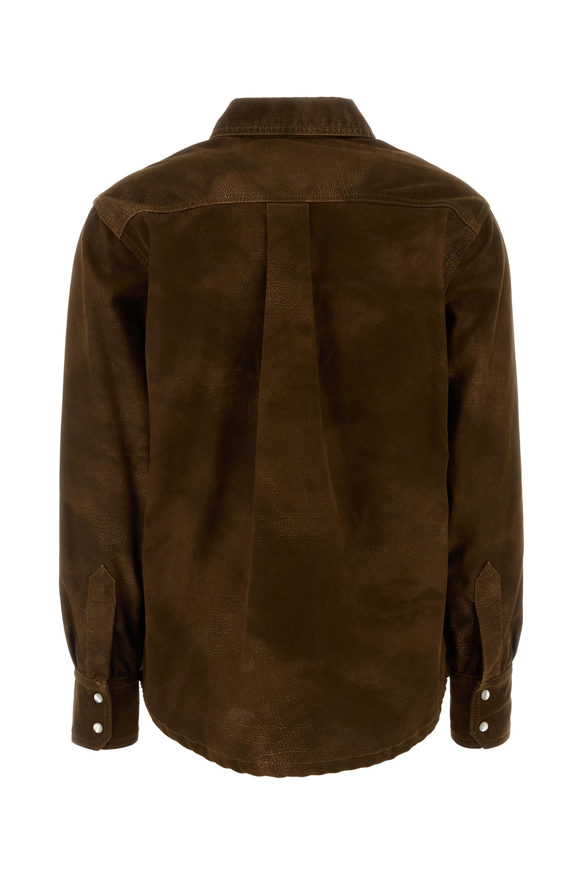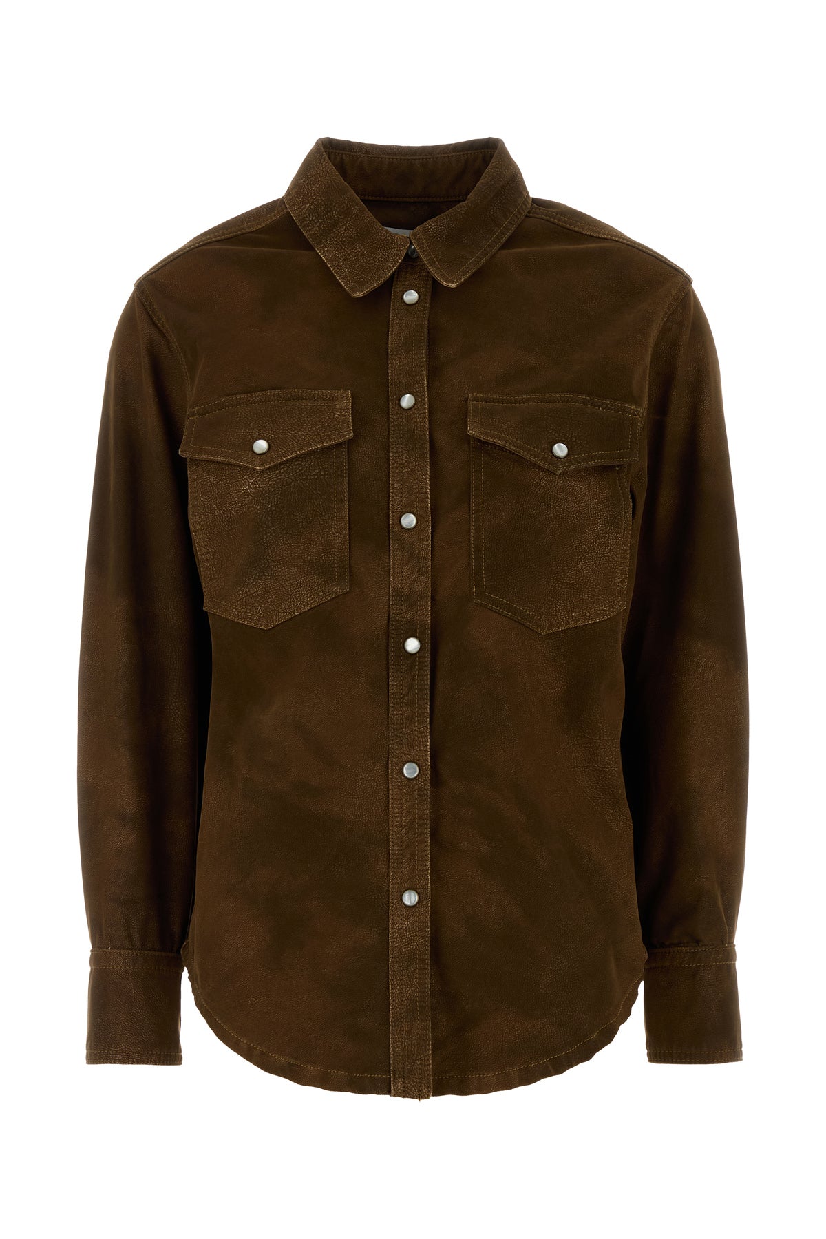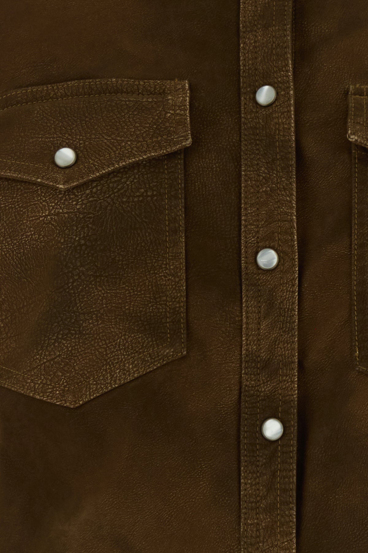 Shirt realized in stonewashed effect synthetic leather charactered by short-pointed collar.