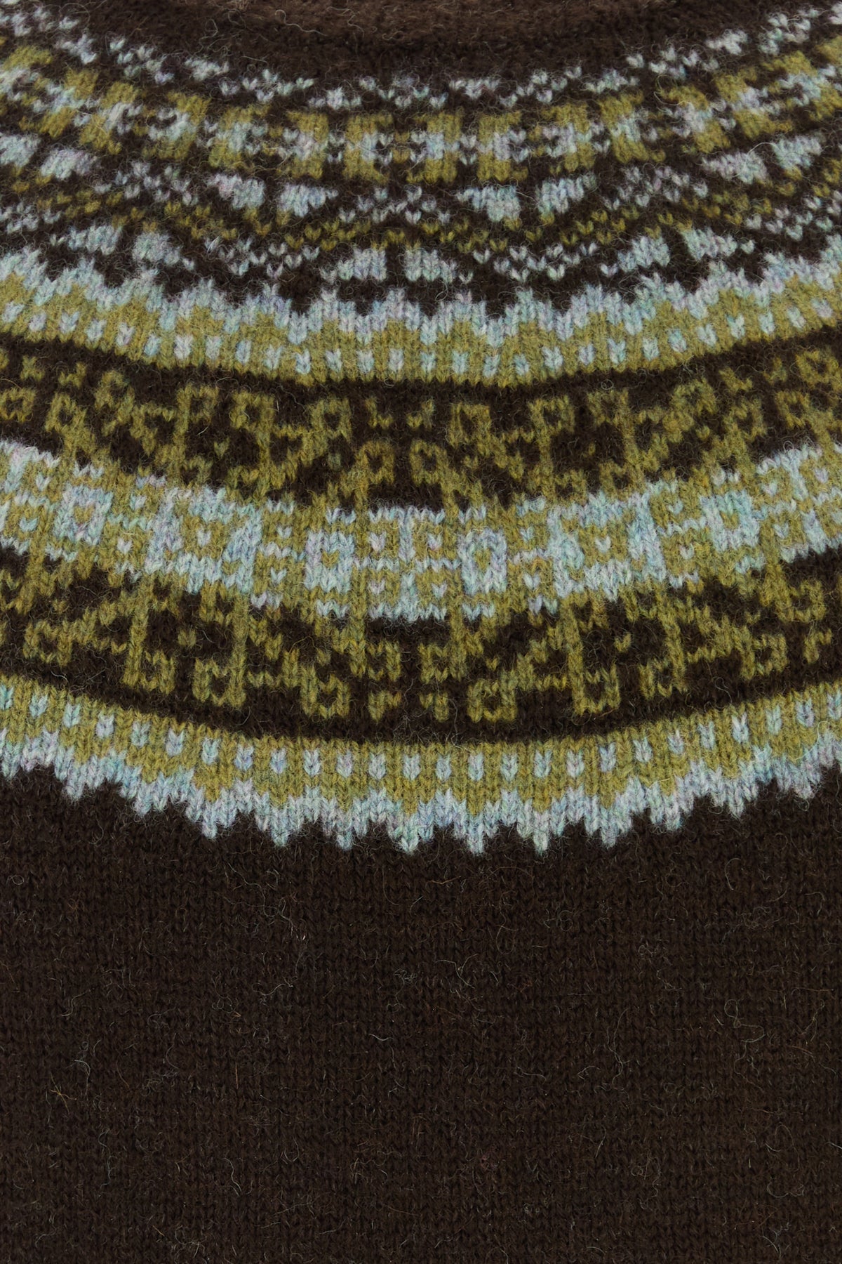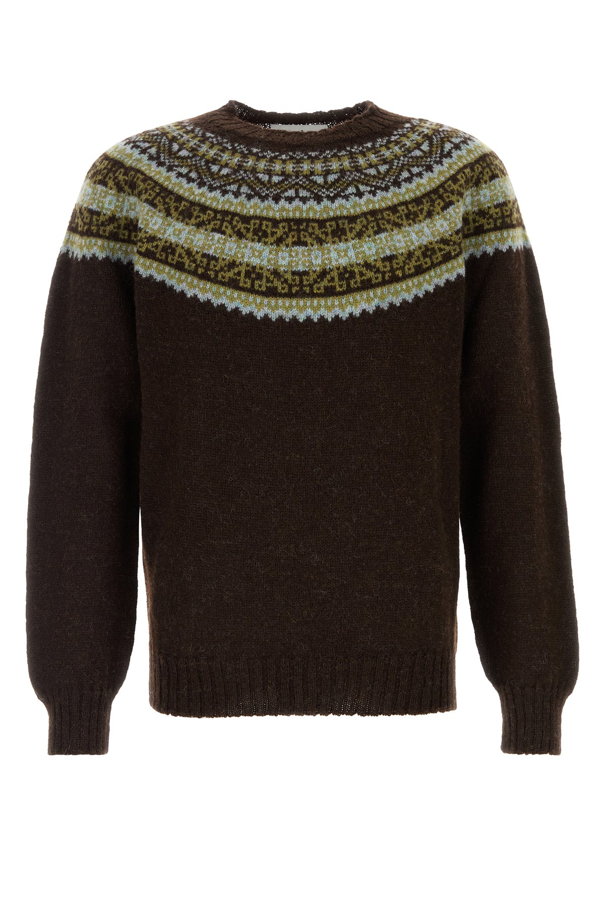Sweater realized in pure wool characterized by peculiar embroidery at the top.