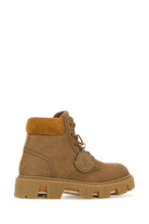 Ankle boots realized in suede characterized by logo in relief on the sole enriched by detachable logoed patch.
