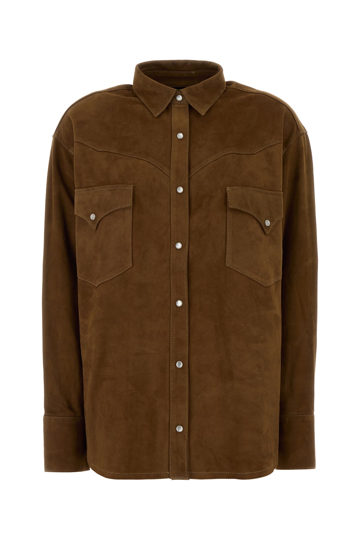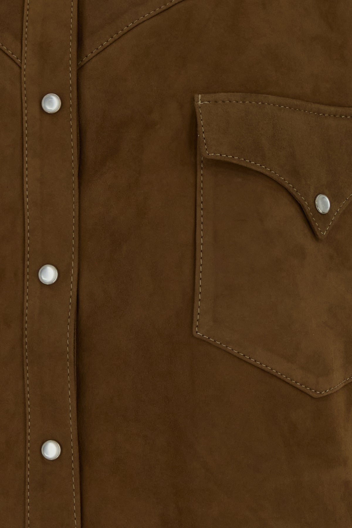 Shirt realized in suede enriched by logoed patch on the angle cuffs with buttons.