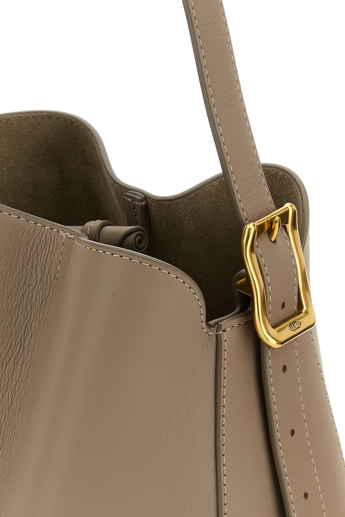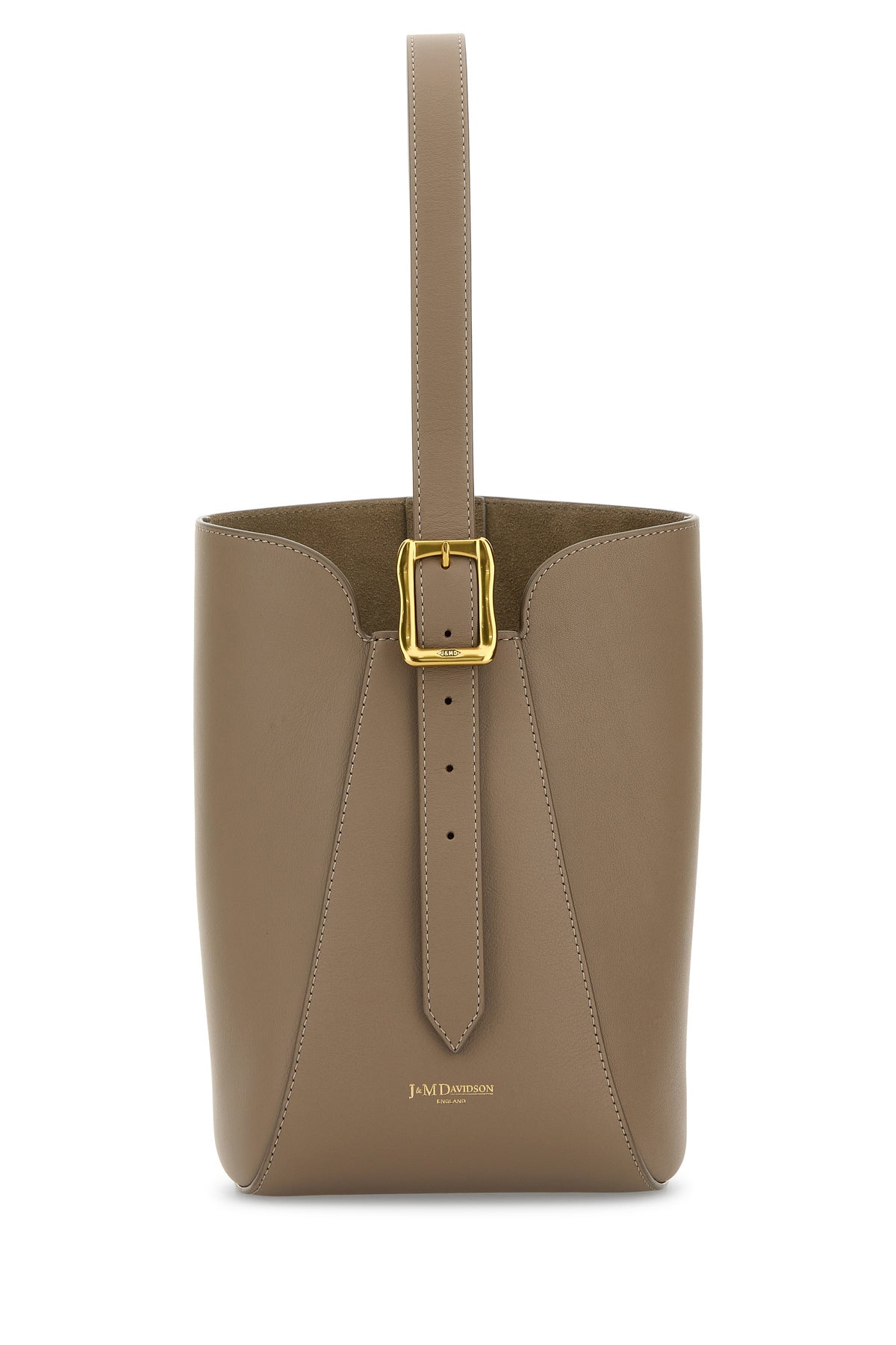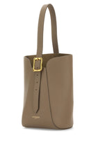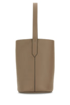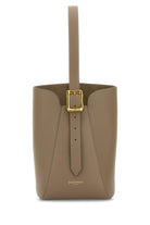 Bucket bag realized in smooth calf leather characterized by contrasting printed logo at the front.