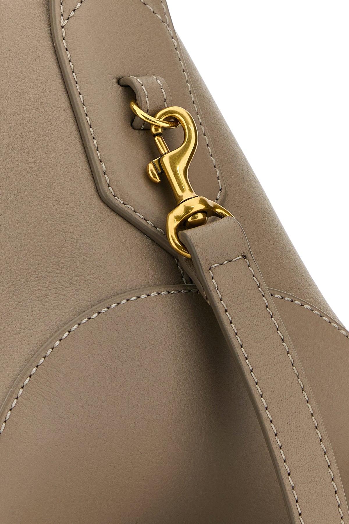 Handbag realized in pebble bovine leather characterized by laminated printed logo on the side.