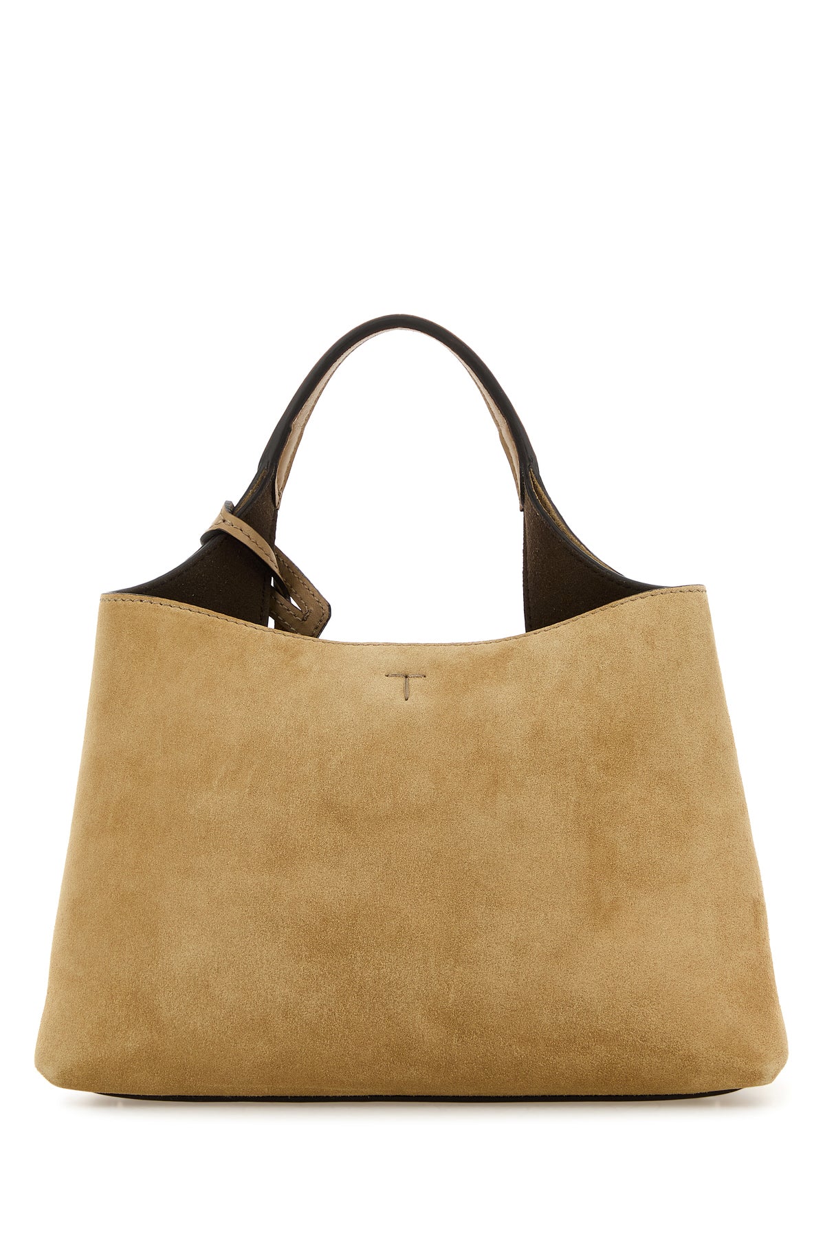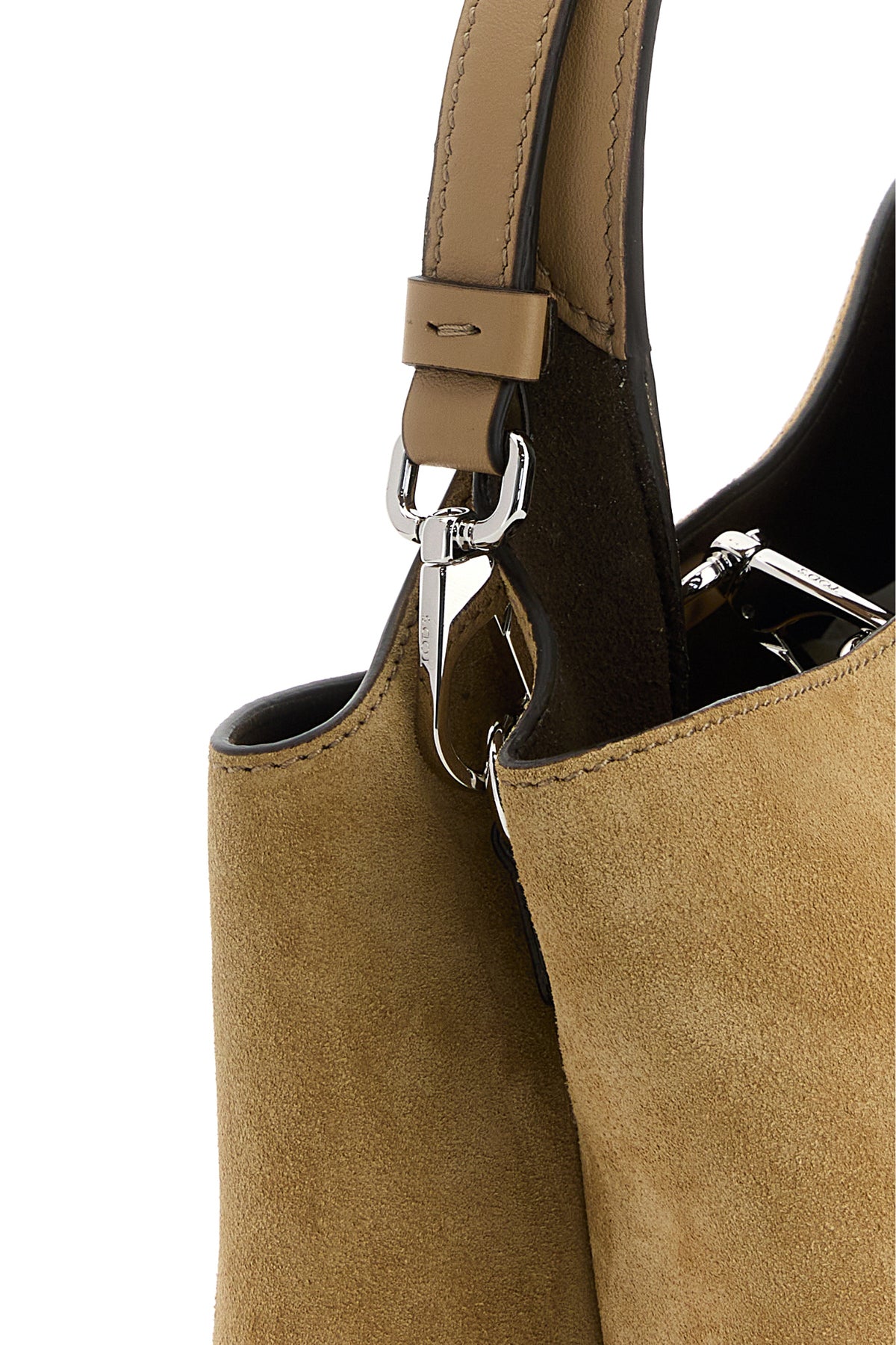 Handbag realized in suede characterized by embossed logo and contrasting logoed stitching at the front enriched by detachable tonal leather and metal T Timeless accessory.
