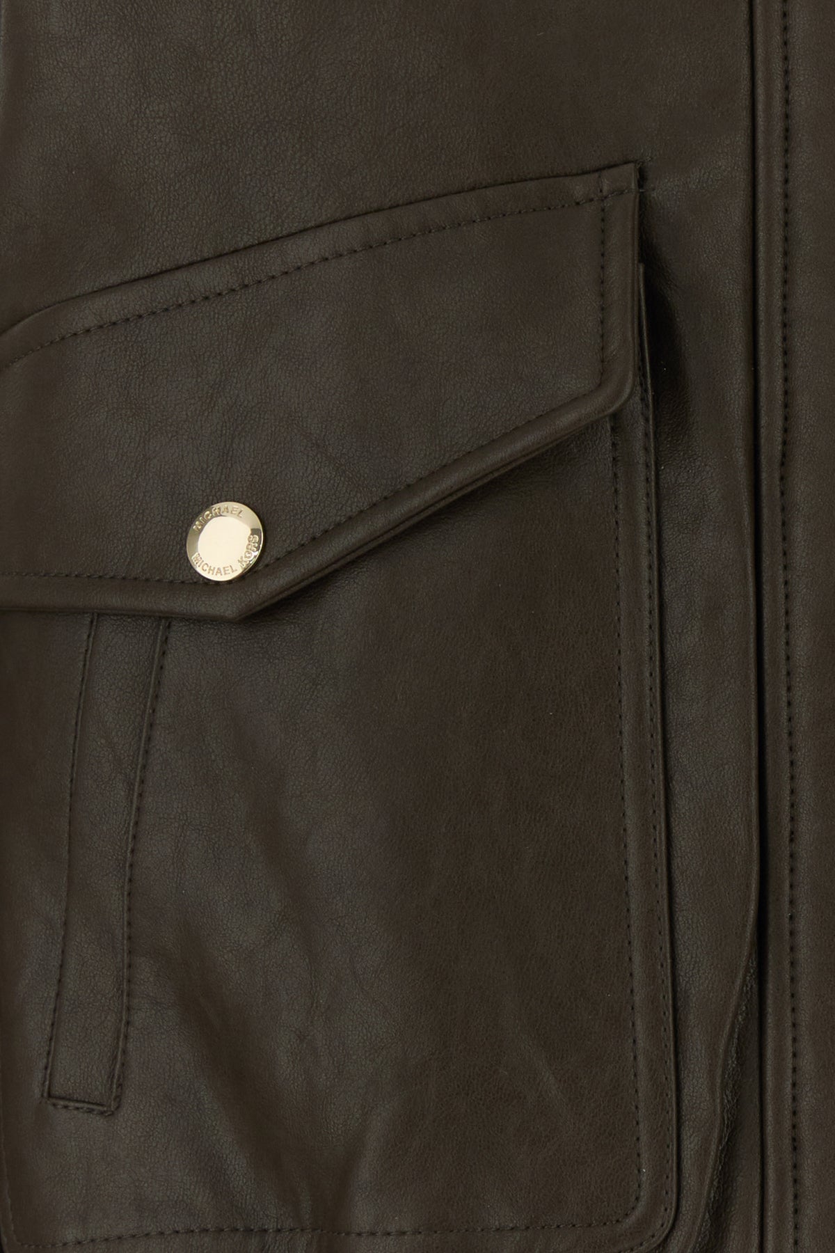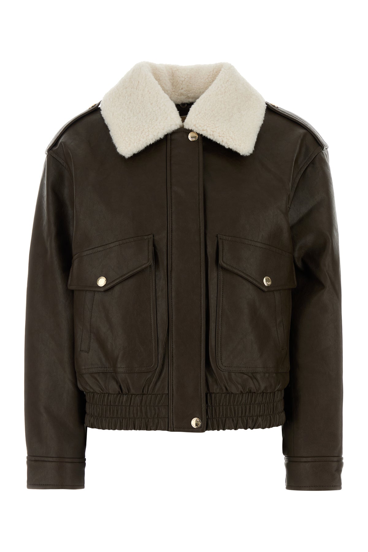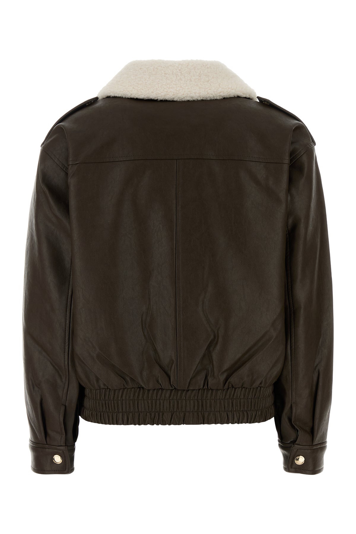 Jacket realized in synthetic leather characterized by eco fur collar.