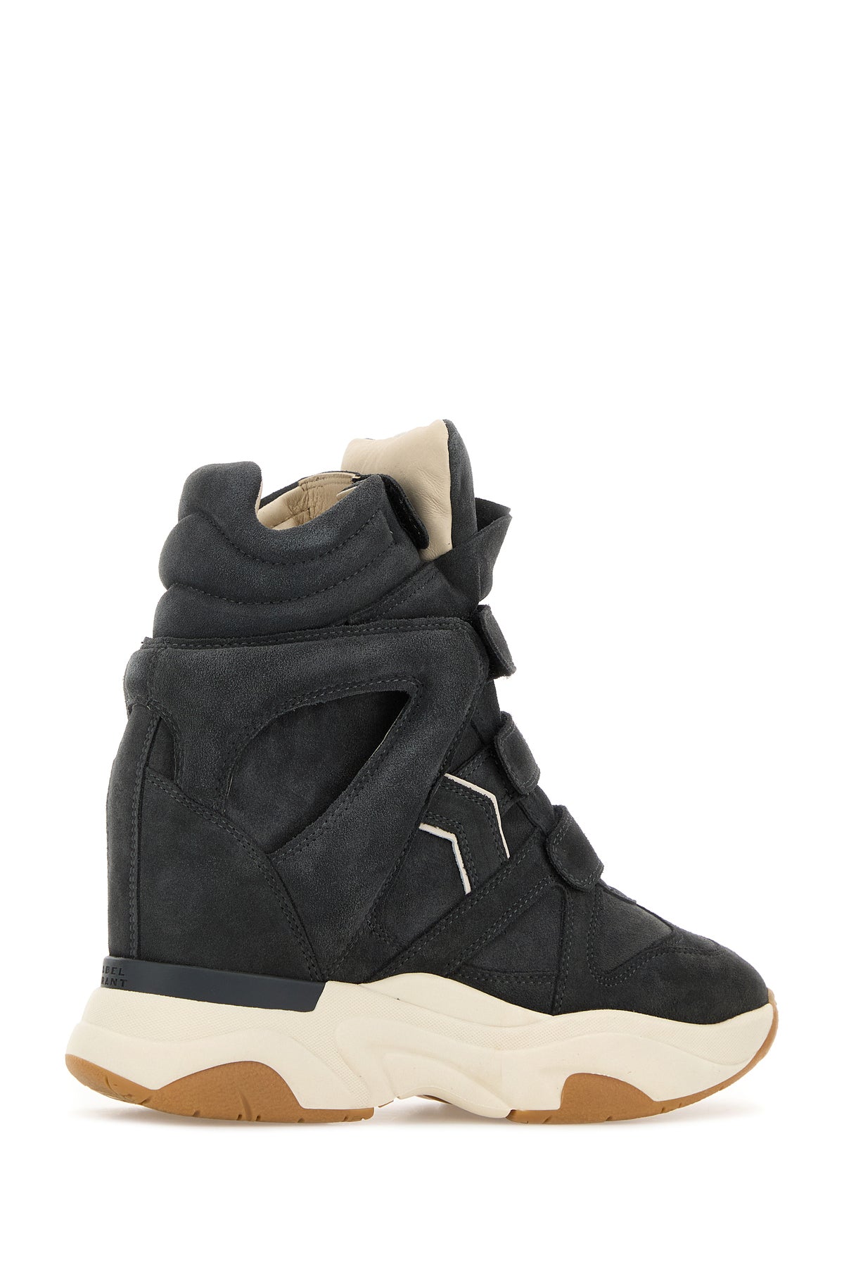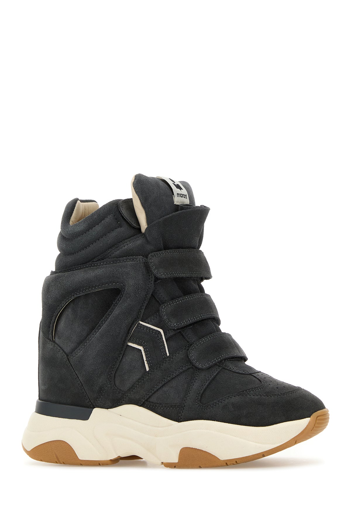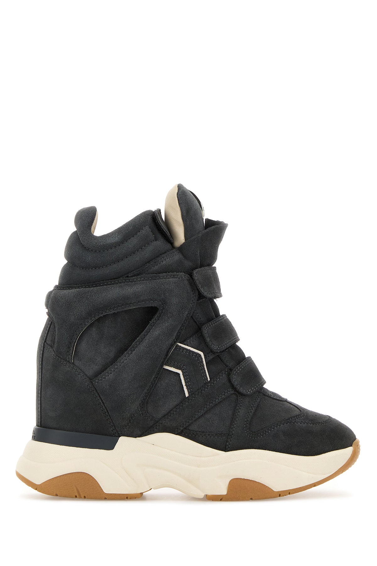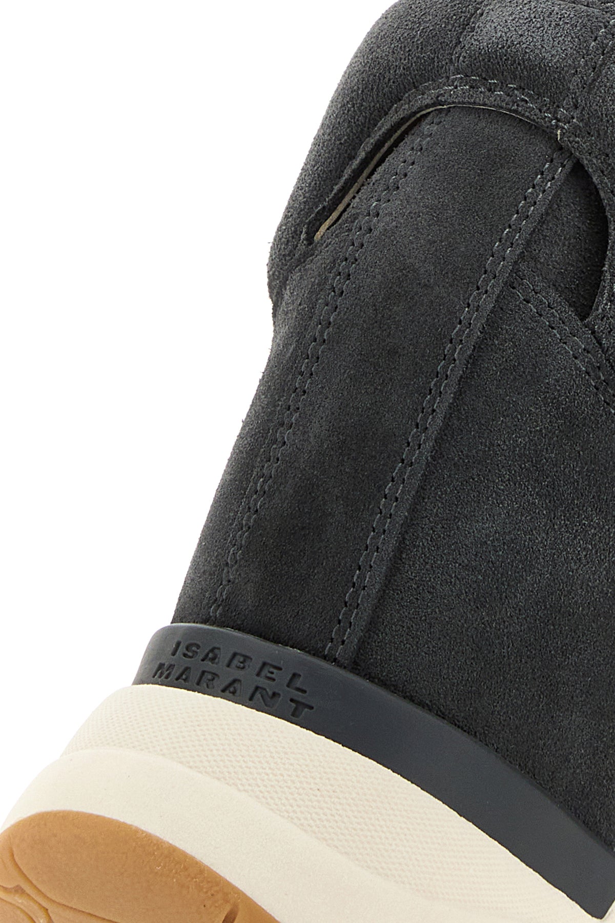 High sneakers realized in calf suede characterized by embossed logo at the back enriched by contrasting leather inserts on the sides.