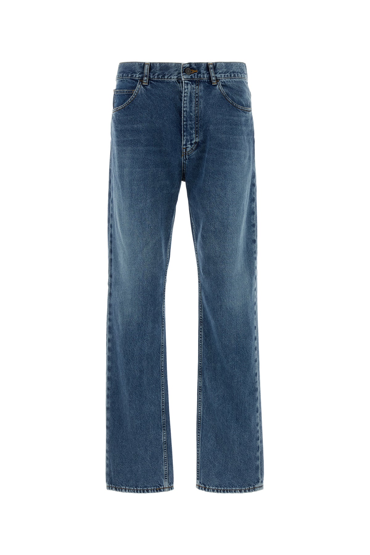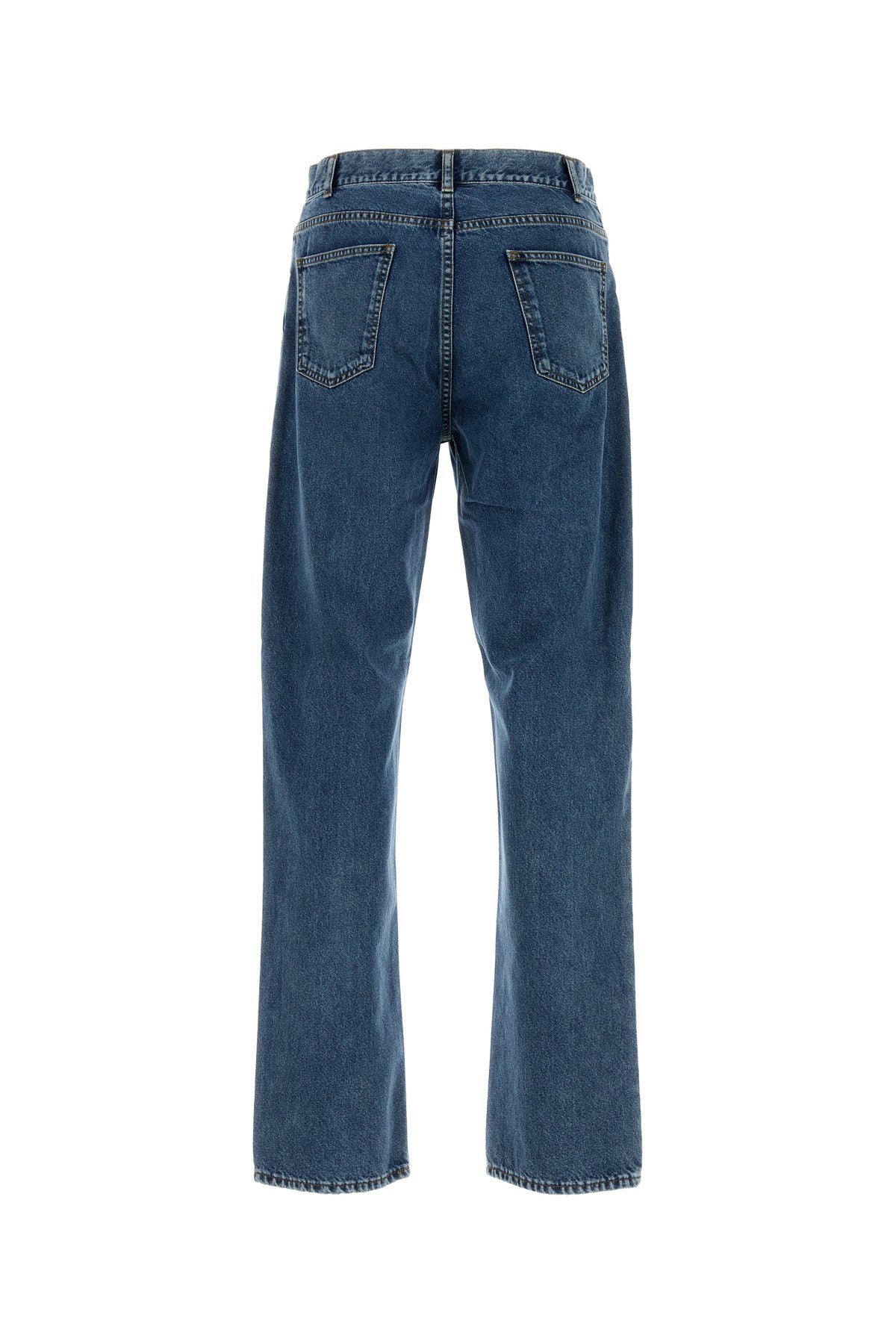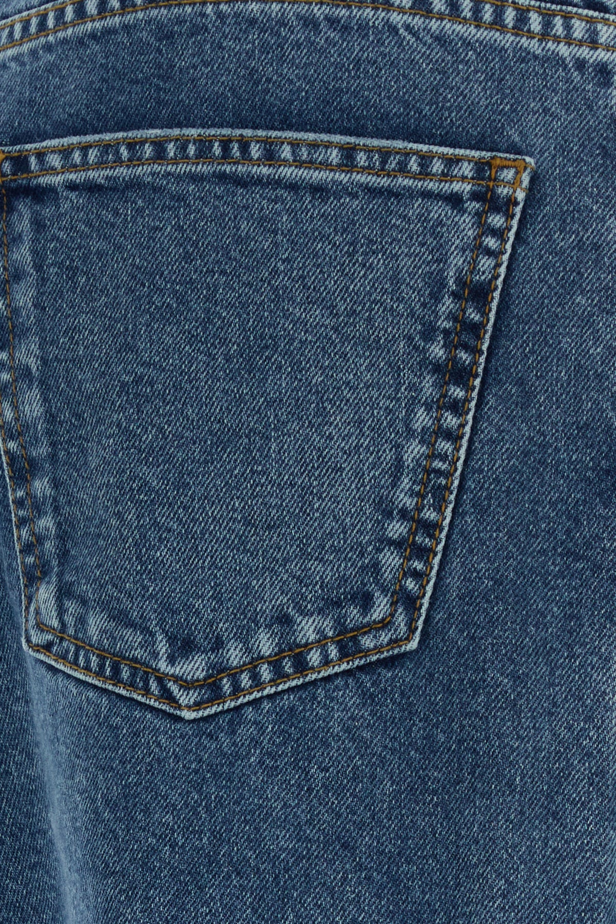 Jeans realized in stonewashed and slightly distressed pure cotton denim characterized by contrasting stitchings.
