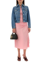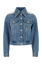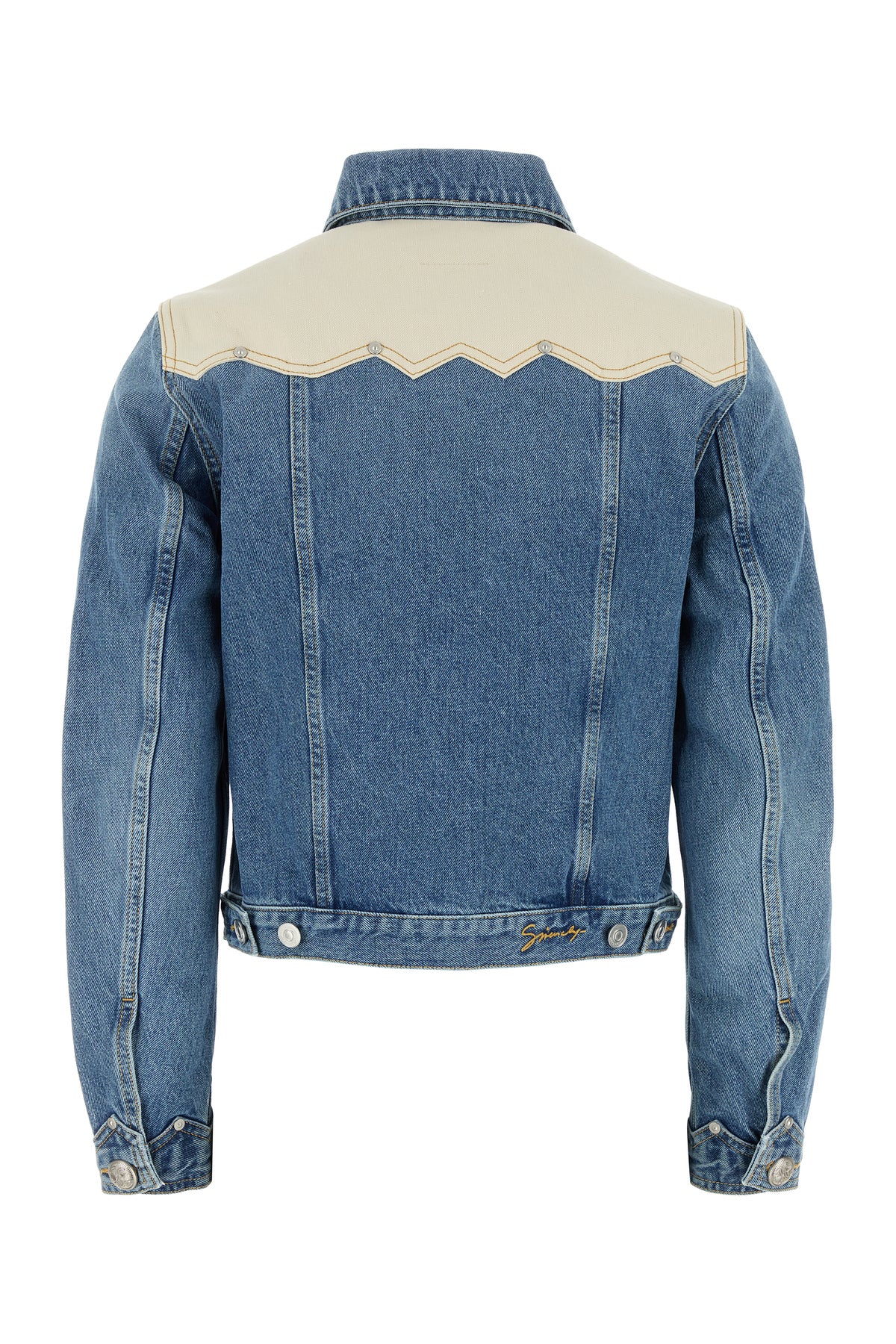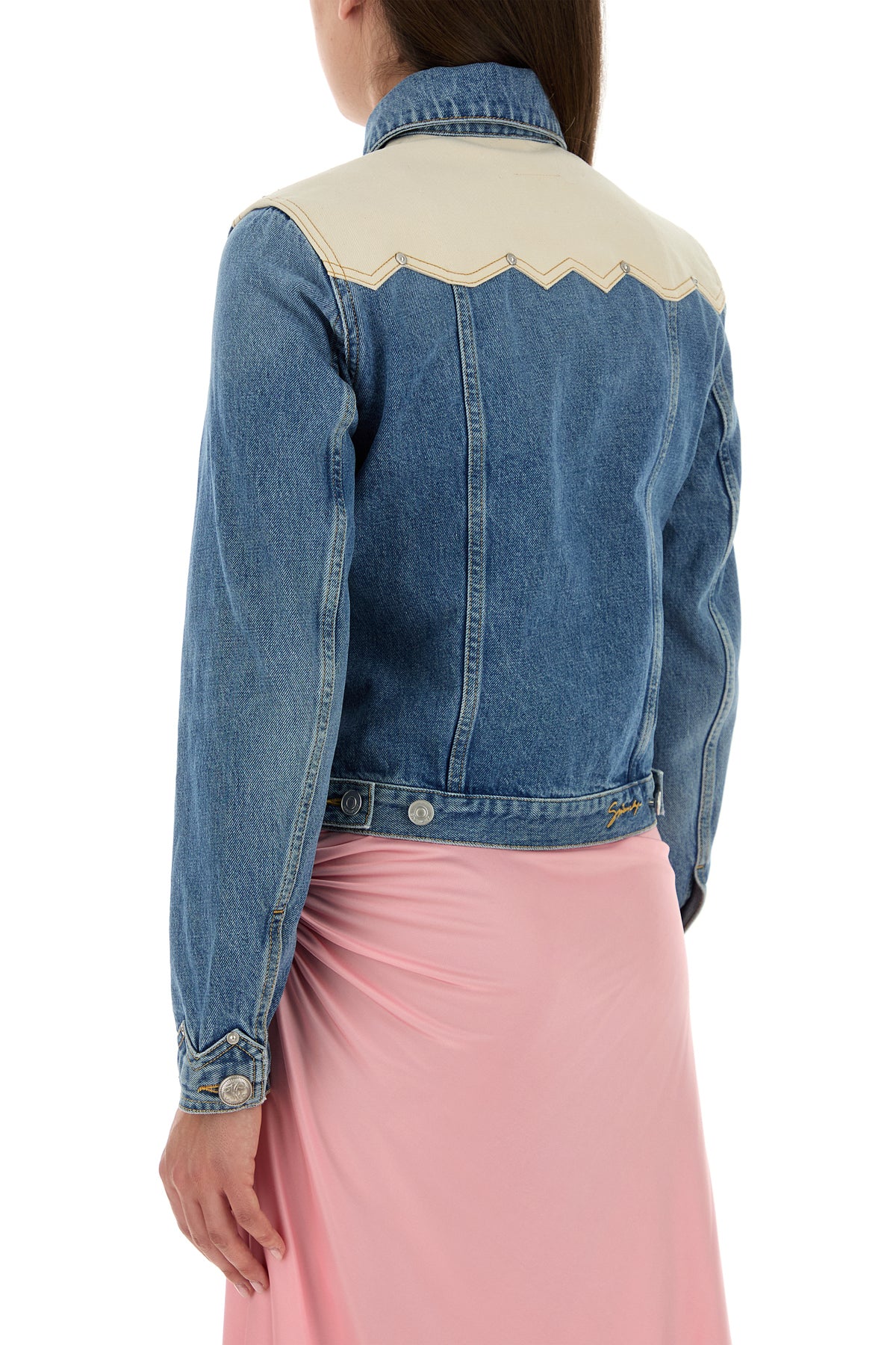 Jacket realized in pure cotton denim with contrasting insert at the top characterized by contrasting printed logo at the back.
