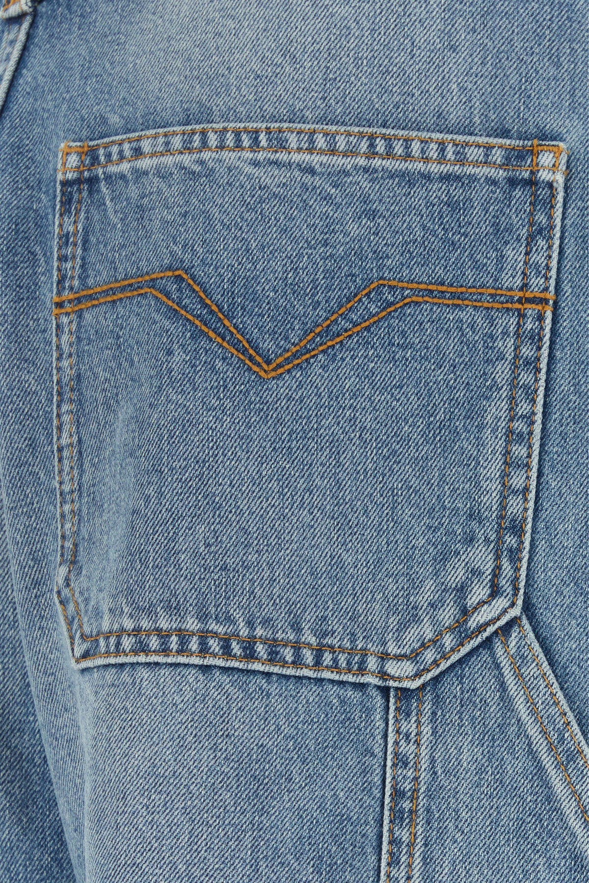 Jeans realized in stonewashed pure cotton denim enriched by metal Medusa Biggie detail at the back.