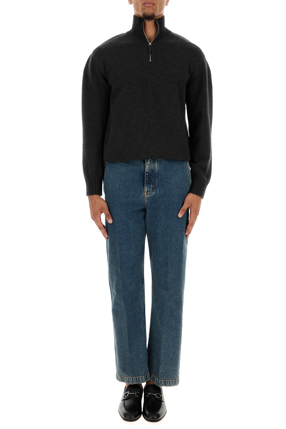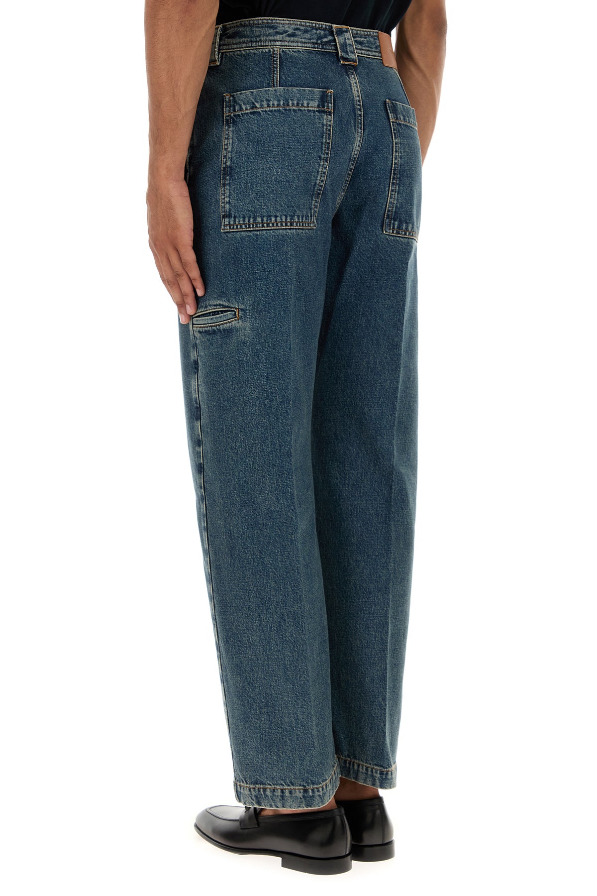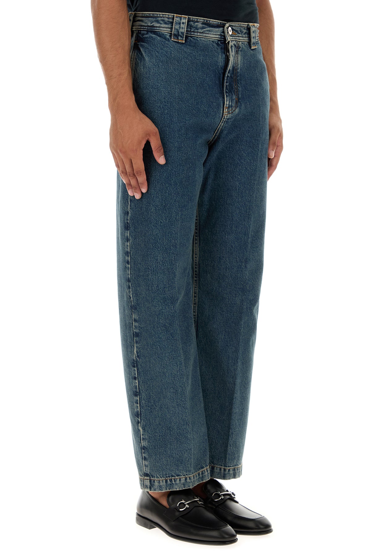 Jeans realized in stonewashed pure cotton denim enriched by leather logoed label at the back.