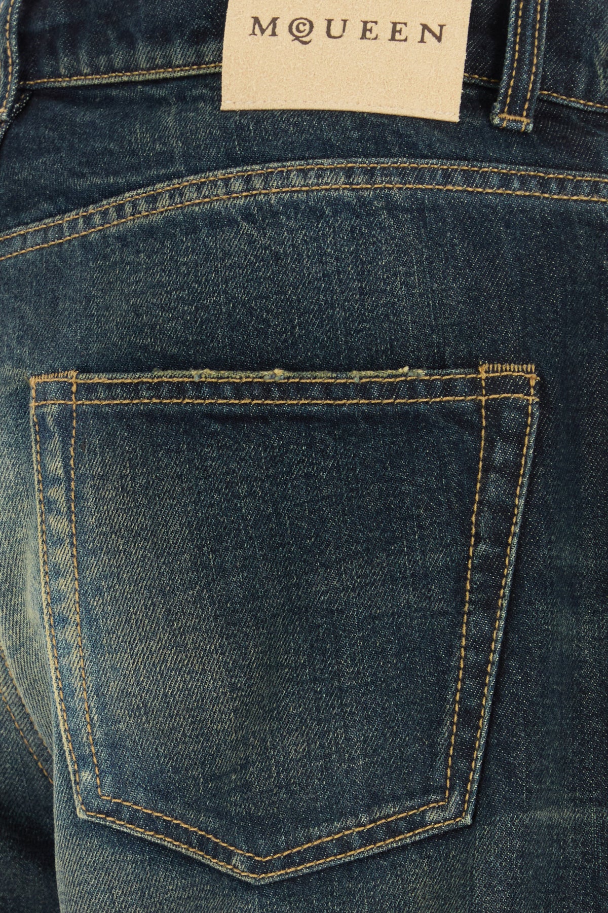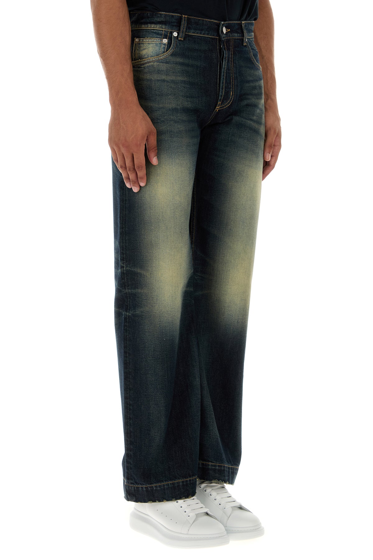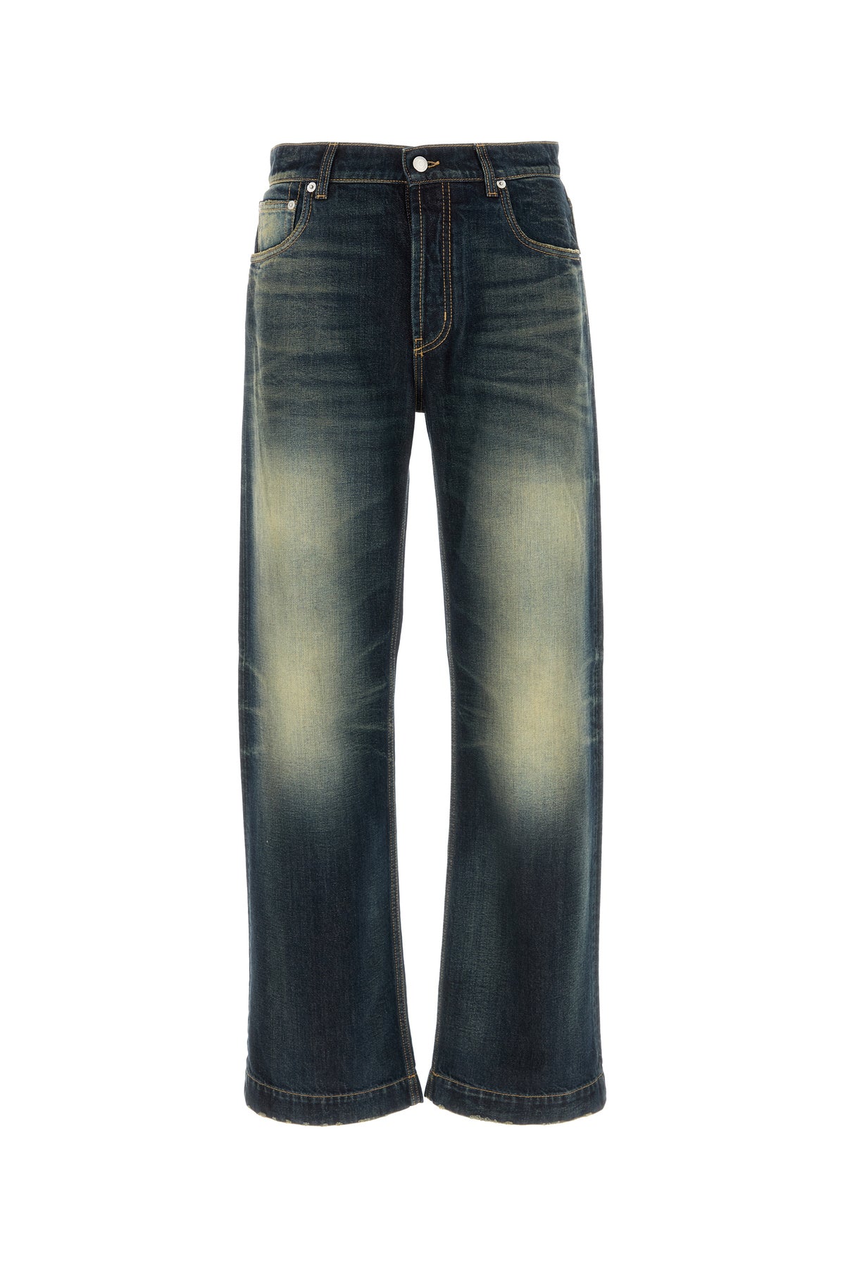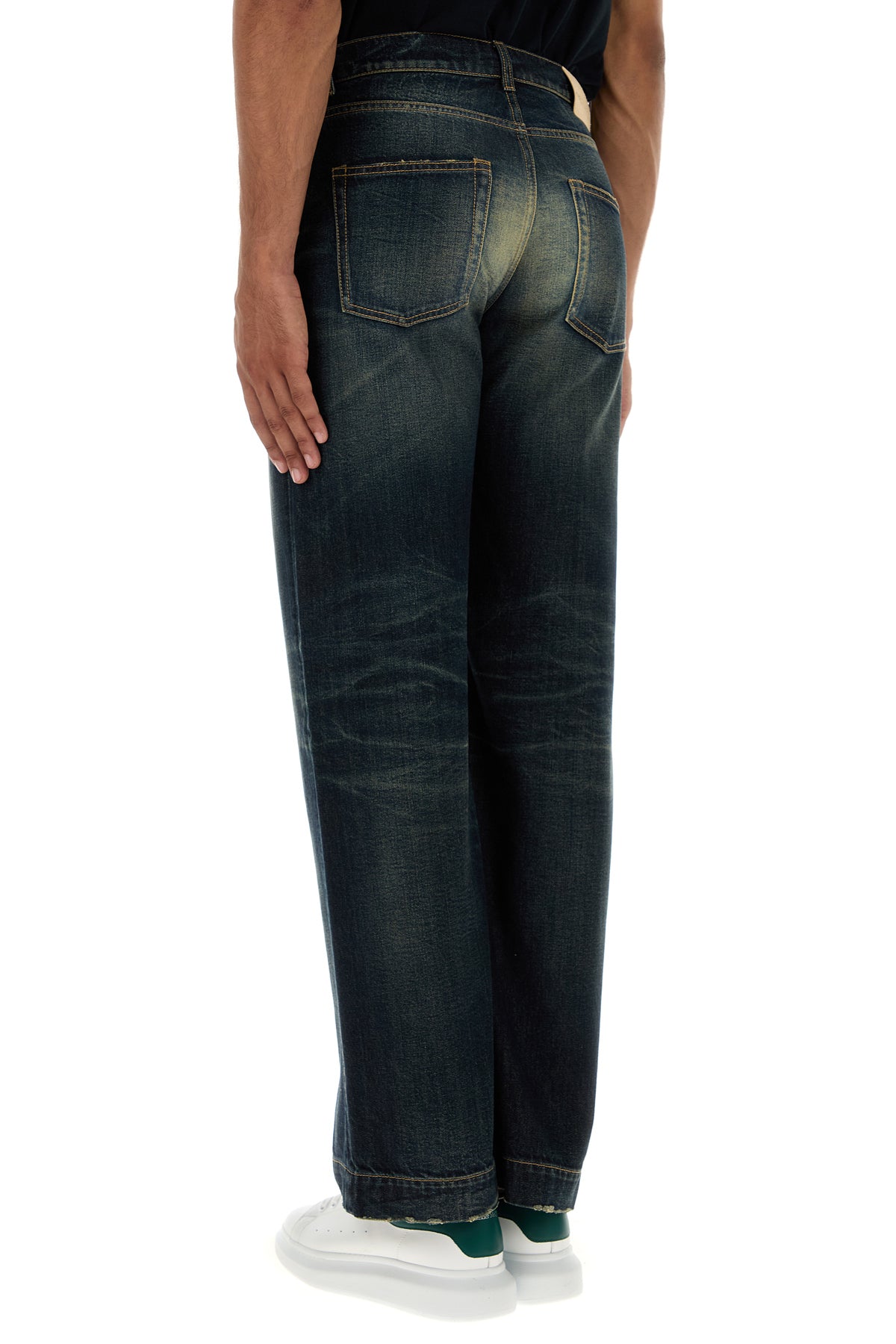 Jeans realized in vintage-effect pure cotton denim enriched by logoed label at the back.