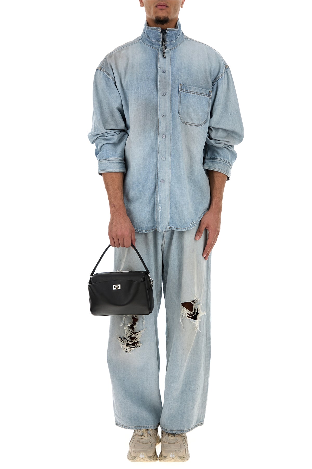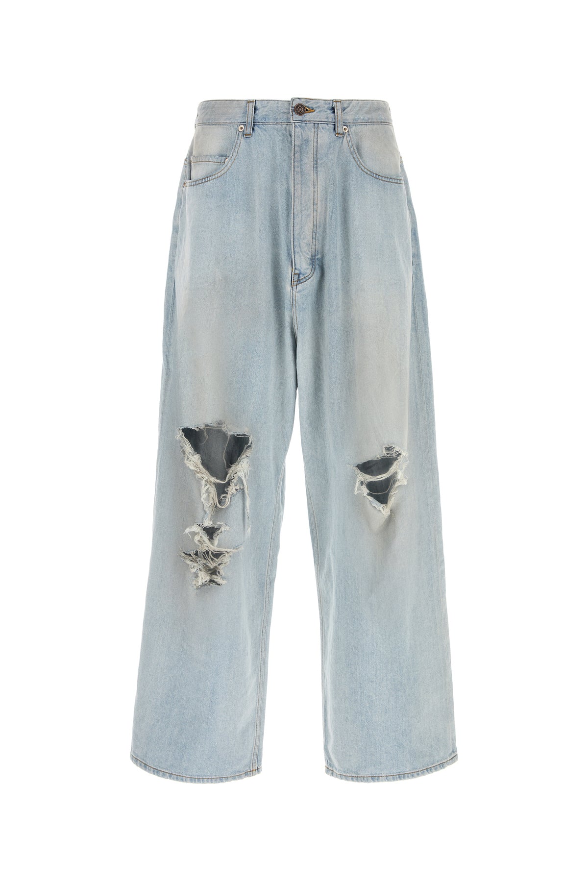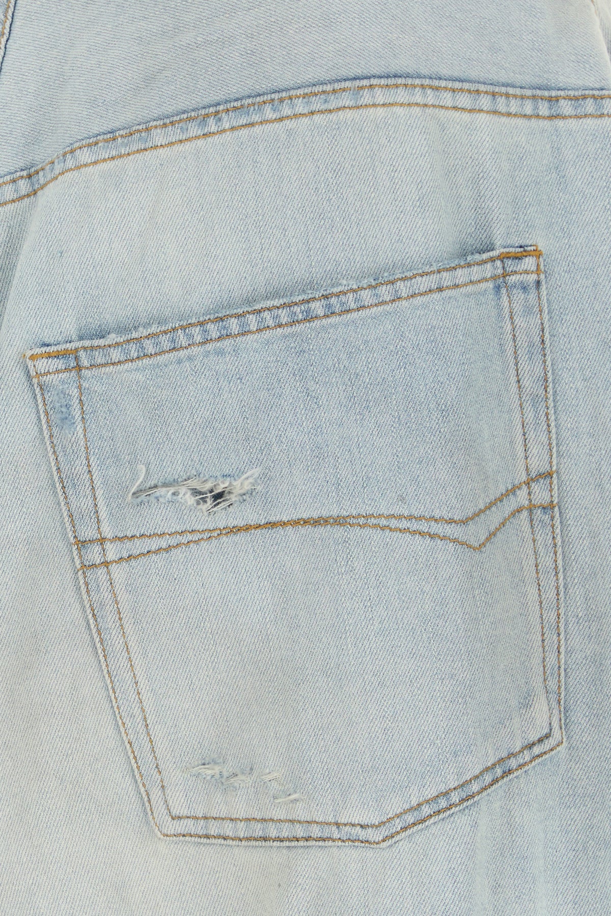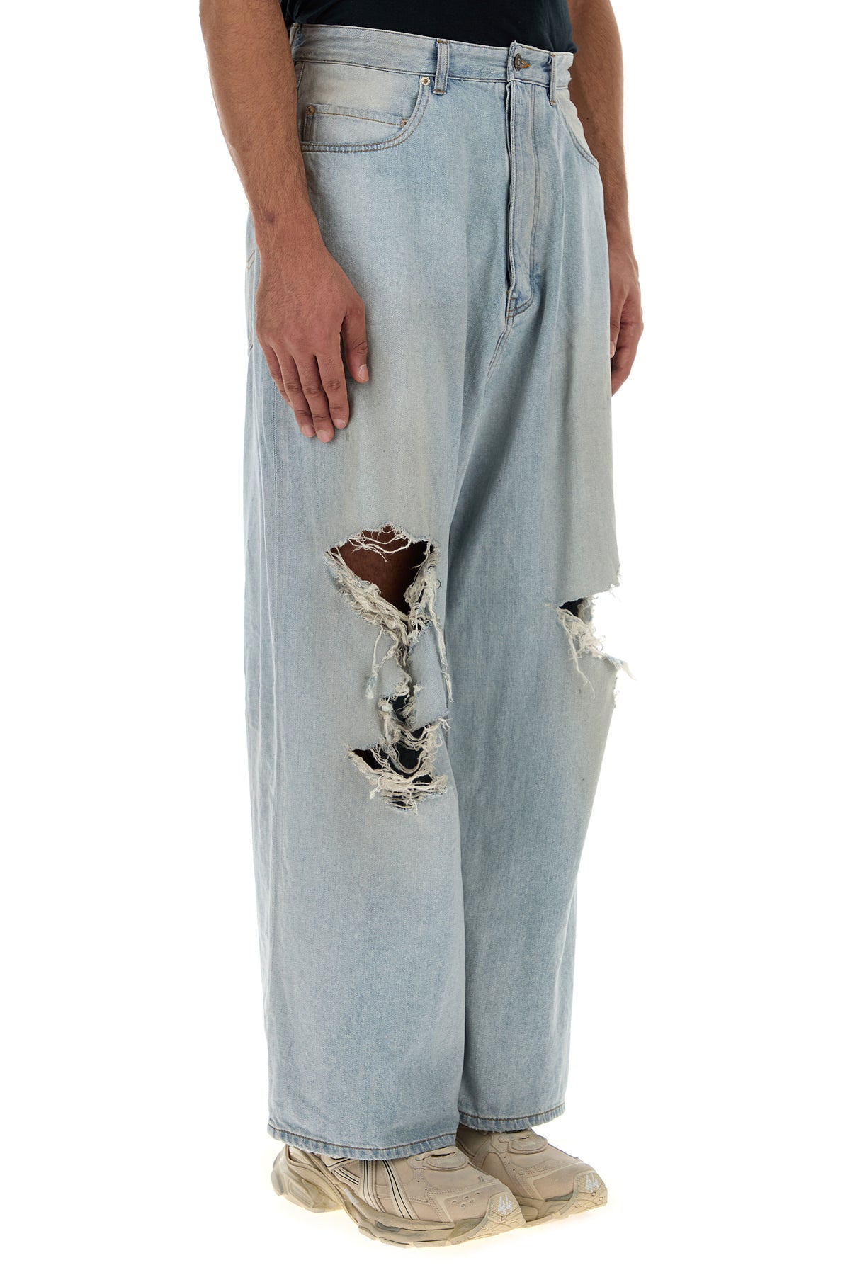 Jeans realized in stonewashed pure cotton denim characterized by intentional rips enriched by logoed label at the back.