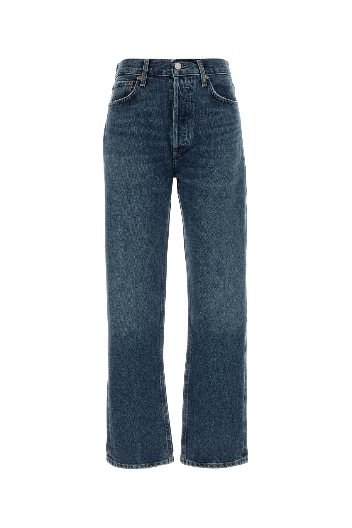 Jeans realized in stonewashed and slightly distressed pure cotton denim.