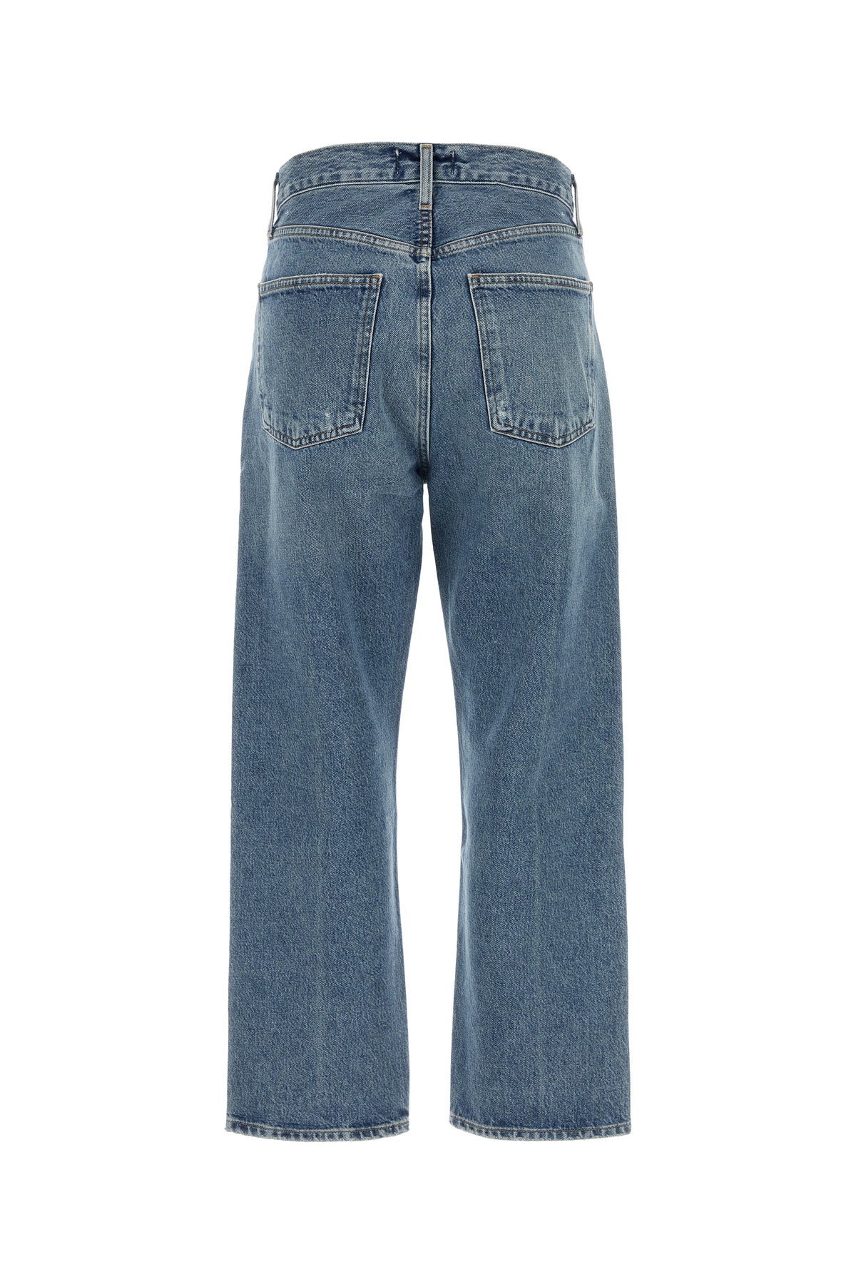 Jeans realized in stonewashed and slightly distressed pure cotton denim.